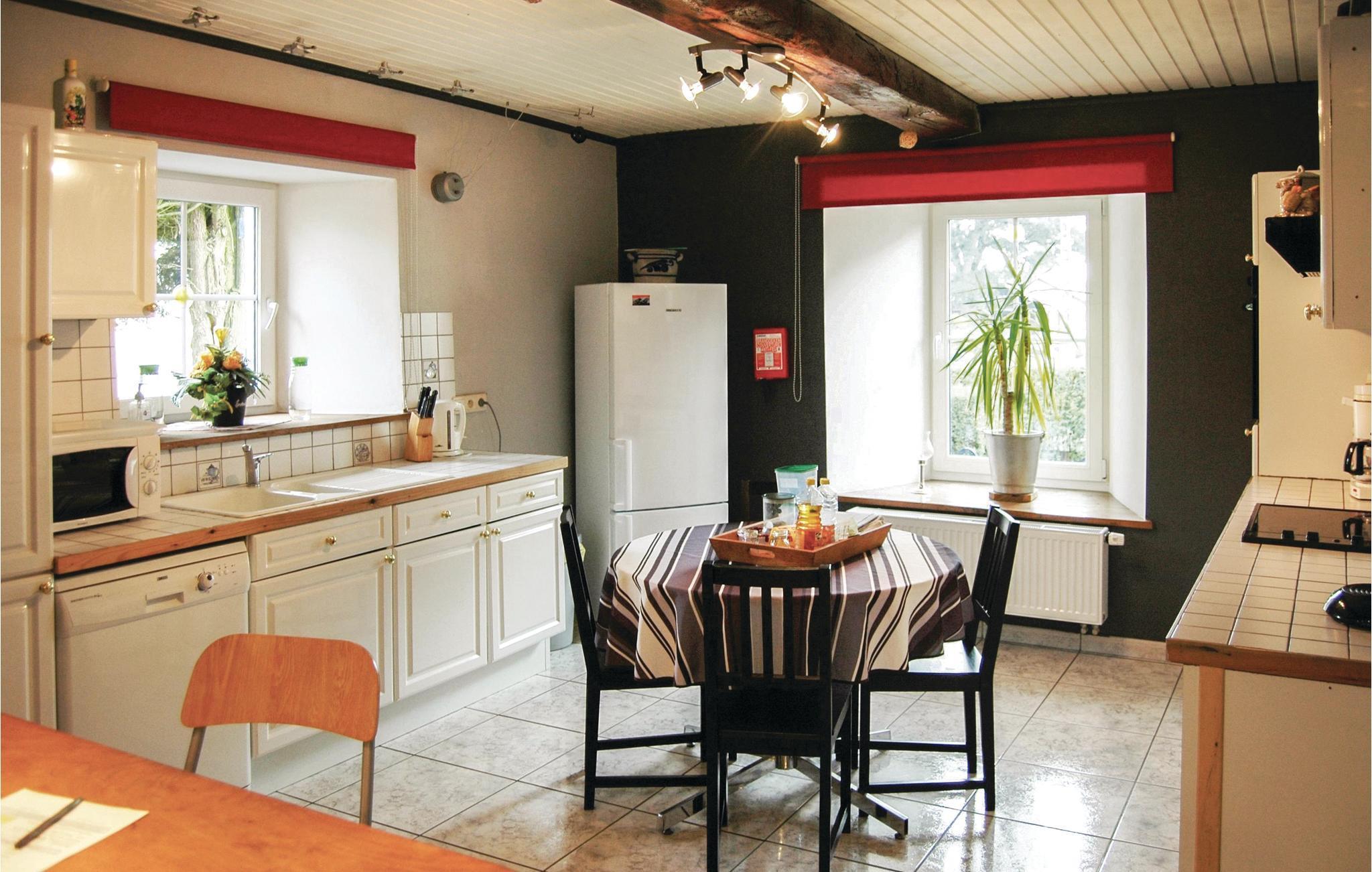 I Nadrin, den største landsby i kommunen Houffalize, ligger dette feriehus på grunden af en renoveret bondegård med egen have på 3000 m². Slap af under frugttræerne i liggestolene. På den beskyttede sydterrasse kan I nyde solen fra begyndelsen af foråret indtil sensommeren. I stueetagen ligger stuen med flere siddemuligheder, et halvåbent, komplet udstyret køkken og en særskilt stue med skydedøre til terrassen. Der er et bryggers med vaskemaskine, tørretumbler og gæstetoilet. På første sal er der fire rummelige og komfortable soveværelser med en køjeseng i det mindste, samt to badeværelser. Der er også tænkt på jeres komfort, hvis I tager små børn med på ferie. Der er tre babysenge, legetøj og haven er komplet indhegnet. Også havelågens gitter er meget tæt. I kan benytte jer af den oppustelige whirlpool i haven mod forespørgsel og gebyr. Igen for de mindste gæsters skyld er den overdækket og sikret med lynlås. Større børn kan spille fodbold og boltre sig af hjertets lyst på den rigelige plads. Der er også en god, trådløs internetforbindelse. I alt er huset en glimrende bolig til en familieferie med børn.