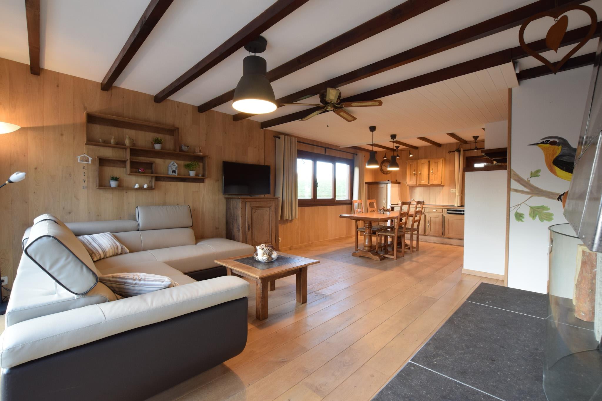 Denne charmerende villa i Sur-Chanty, Nassogne, tilbyder et fredeligt tilflugtssted i hjertet af Ardennerne. Ideel til par eller små familier, kun 2 km fra Forrières og omgivet af frodigt grønt. Regionen er rig på kulturarv og natur med nærliggende attraktioner som Château de Mirwart, de forhistoriske Grottes de Han og det interaktive Euro Space Center. Besøgende kan også udforske det naturskønne La Roche-en-Ardenne og nyde vandre- eller cykelture gennem skovstier. Villaen har to komfortable soveværelser, en hyggelig stue/spisestue med pejs og gaskomfur samt et fuldt udstyret åbent køkken med moderne apparater, herunder kaffemaskine, ovn og opvaskemaskine. Badeværelset har bruser, toilet og hårtørrer, mens yderligere faciliteter som fryser, barneseng, højstol og elektrisk opvarmning sikrer et behageligt ophold. Udendørs kan gæsterne slappe af på terrassen, nyde måltider i haven og benytte grillen og havemøblerne. Spisemuligheder i nærheden omfatter Le Barathym for belgisk og fransk køkken, Le Jardin des Senteurs for moderne smagsoplevelser og Brasserie Saint-Monon for rustikke lokale retter.