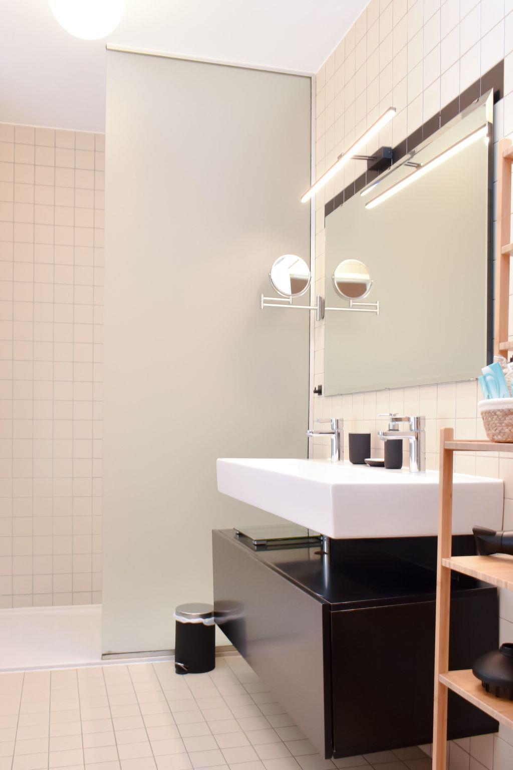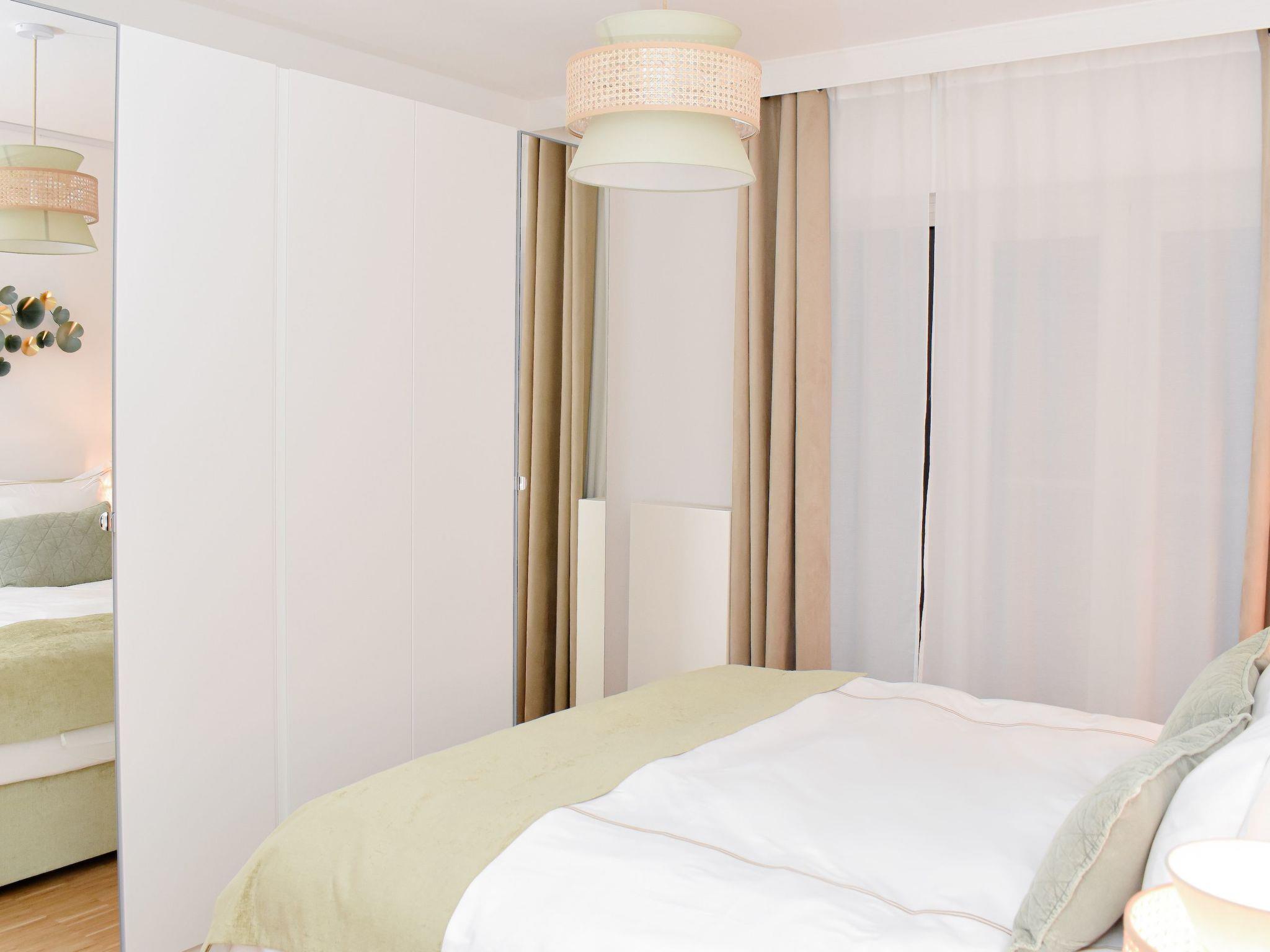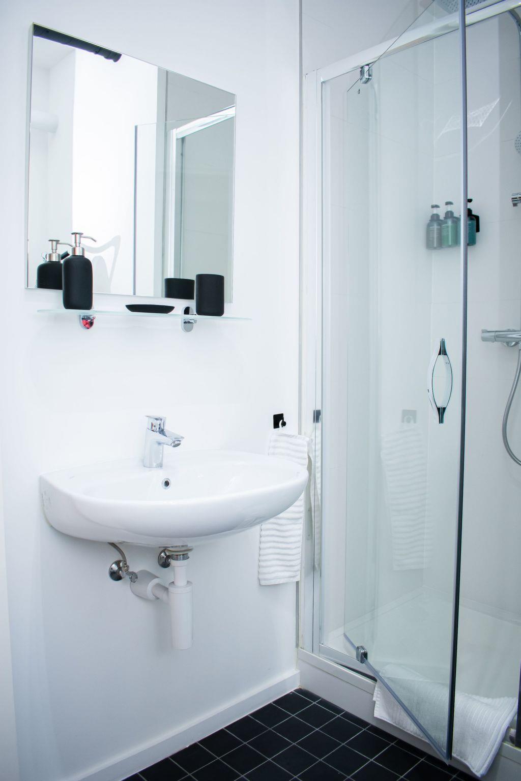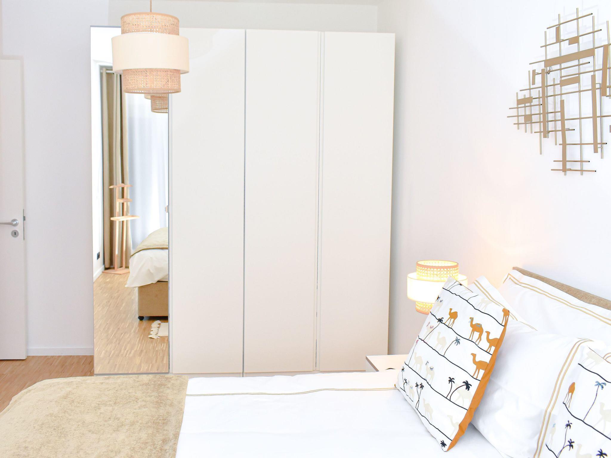 Within the apartment, two bathrooms are thoughtfully placed to provide ease and convenience. The larger bathroom features both a bathtub and a walk-in shower, catering to your relaxation needs, while the second bathroom is equipped with a shower cabin, washbasin, and toilet. Additionally, a separate guest toilet with a wash basin ensures the comfort and convenience of all guests, making every aspect of your stay as pleasant and effortless as possible.