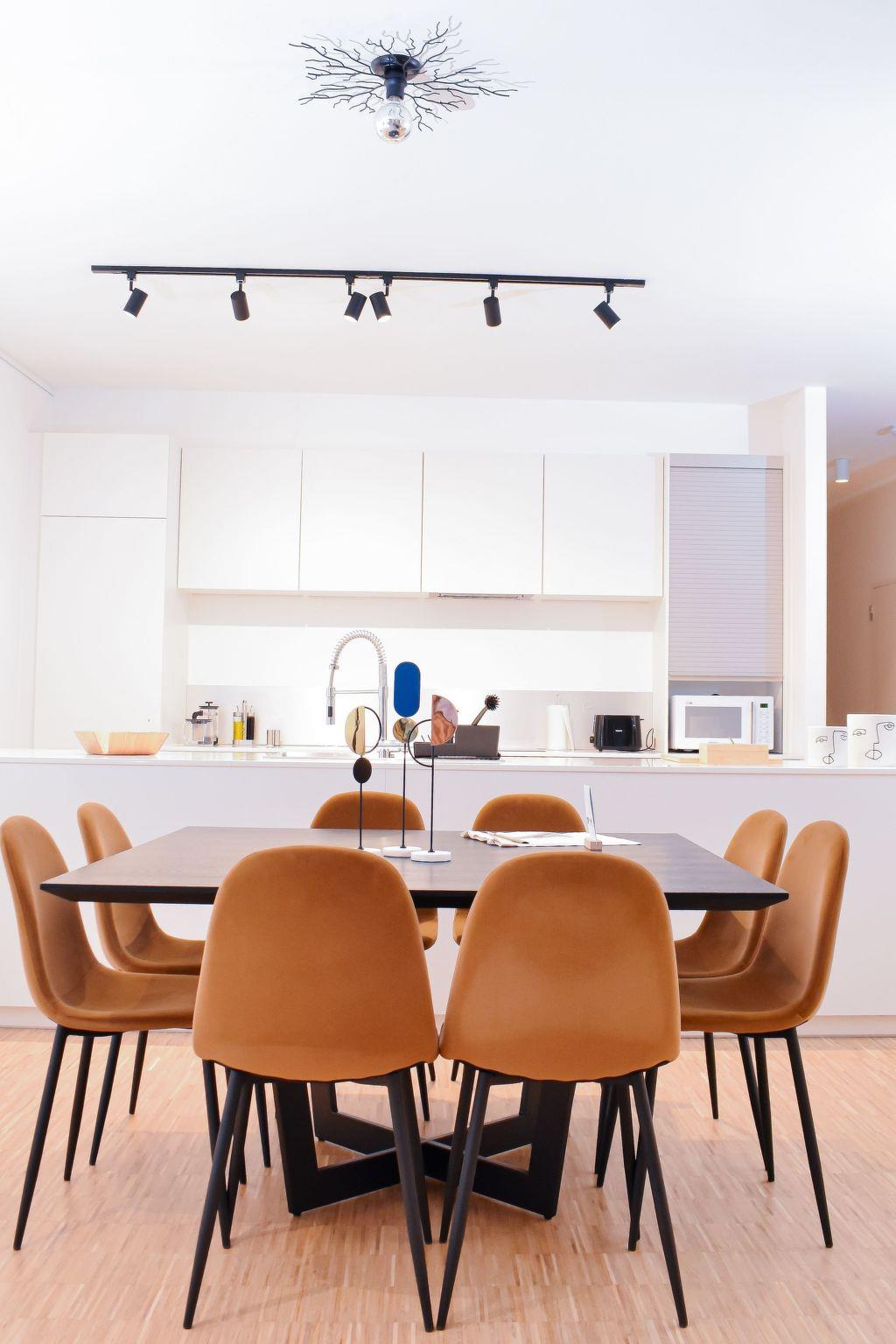 The heart of this beautiful retreat is its spacious kitchen, equipped with a grand counter that provides ample space for culinary adventures, alongside a beautifully appointed day area where functionality harmonizes with aesthetics. A laidback seating area equipped with a smart TV sets the perfect ambience for entertainment or serene relaxation. Completing this space is an extra-large multifunctional dining table, surrounded by efficient lighting, ensuring every meal feels special.