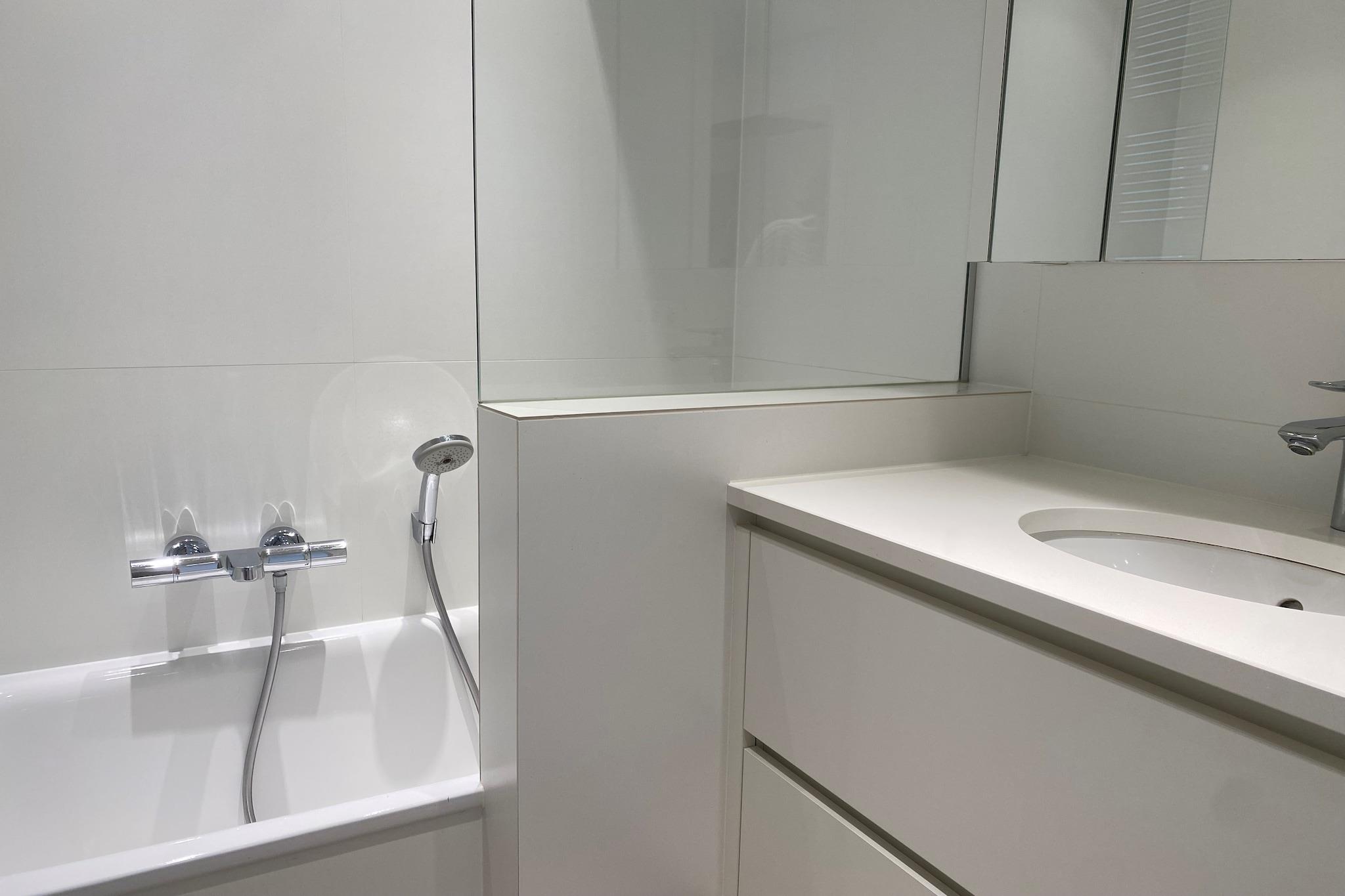 På 7. etage: (Køkken(kogeplade(elektrisk), kaffemaskine, combi-mikroovn, opvaskemaskine , køle-fryseskab), stue / spisestue(Fjernsyn, spisebord, sofahjørne), soveværelse(dobbeltseng(dobbelt dynebetræk, 160 x 200 cm)), Soveværelse med badeværelse(dobbeltseng(dobbelt dynebetræk, 160 x 200 cm), bruser), badeværelse(badekar med bruser, håndvask), toilet(toilet)) tørretumbler, vaskemaskine, terrasse, cykelopbevaring, elevator, strygejern