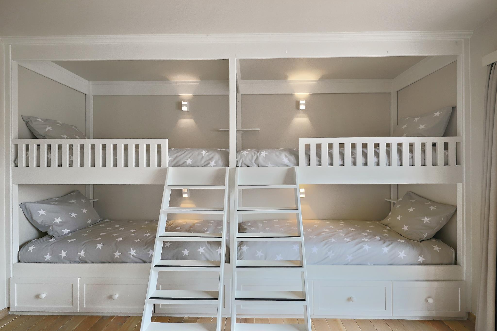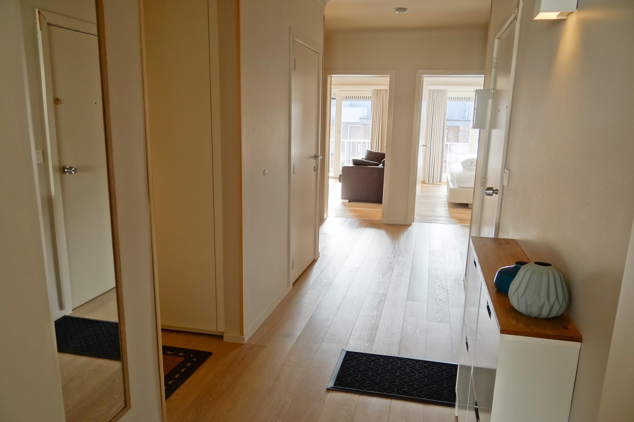 På 4. etage: (Køkken(kogeplade(induktion), kaffemaskine, combi-mikroovn, opvaskemaskine , køle-fryseskab), stue / spisestue(Fjernsyn, spisebord, sofahjørne), soveværelse(køjeseng(dynebetræk), køjeseng(dynebetræk)), soveværelse(dobbeltseng(dobbelt dynebetræk, 180 x 200 cm)), badeværelse(bruser, håndvask), badeværelse(badekar, håndvask, toilet), toilet(toilet), pulterkammer) vaskemaskine, terrasse, cykelopbevaring, elevator, barnestol, strygebræt, strygejern, baby crib(free)