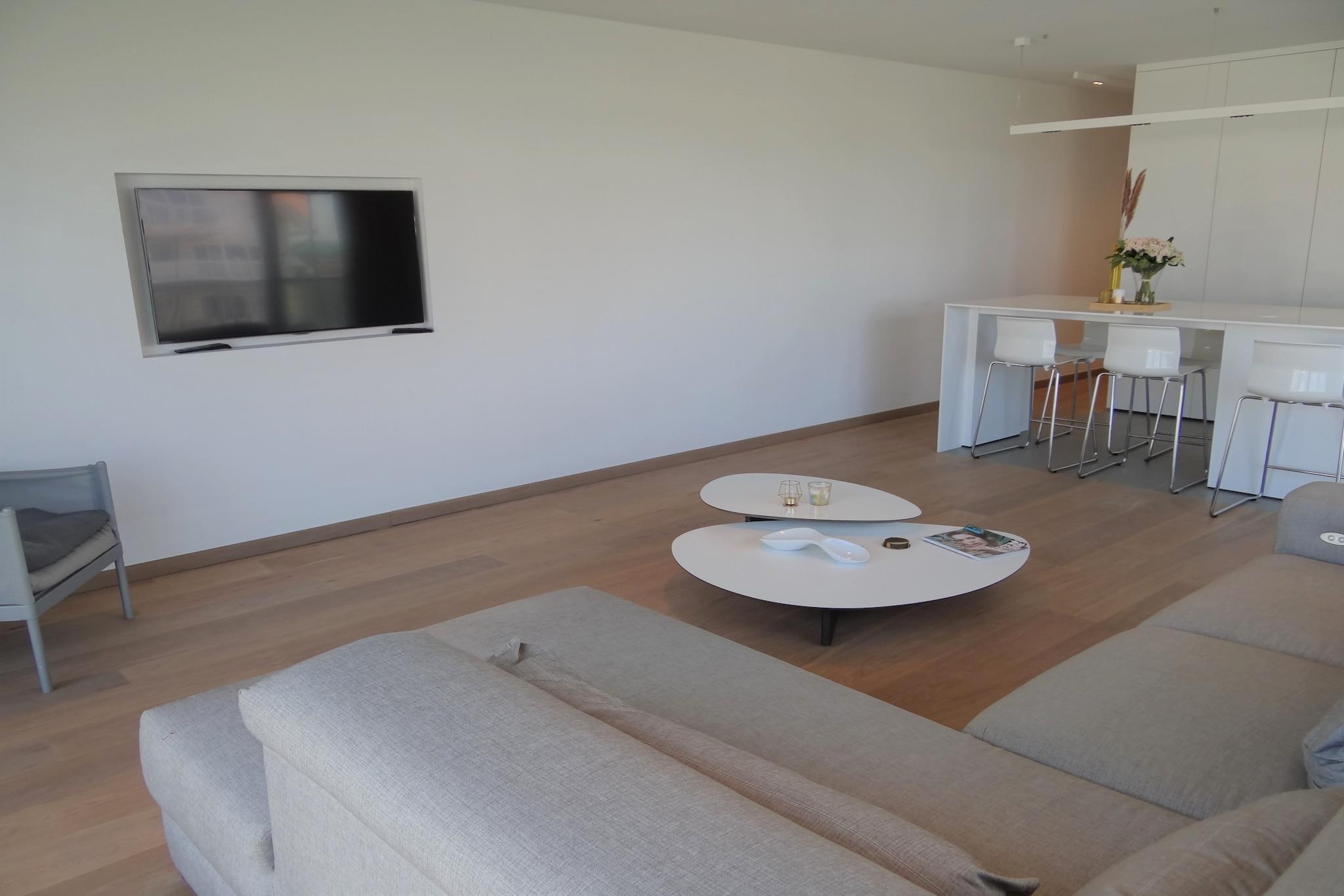 På 3. etage: (åbent køkken(komfur(elektrisk), kaffemaskine(kaffepude), combi-mikroovn, opvaskemaskine , køleskab(+ fryser)), stue / spisestue(Fjernsyn(digital), spisebord, sofahjørne), soveværelse(dobbeltseng(dobbeltdyne, dun, 160 x 200 cm)), soveværelse(dobbeltseng(dobbeltdyne, dun, 160 x 200 cm)), badeværelse(bruser, håndvask), toilet(toilet)) garage(på stedet), terrasse, havemøbler, elevator