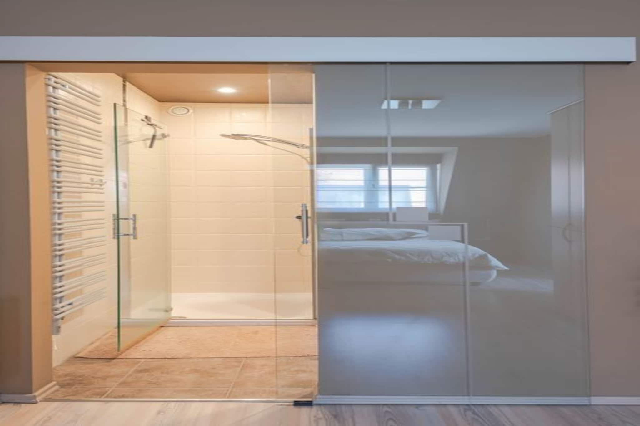 På 5. etage: (åbent køkken(kogeplade(elektrisk), kaffemaskine(kopper, kaffetragt, kaffepude), combi-mikroovn, opvaskemaskine , køle-fryseskab), stue / spisestue(Fjernsyn(digital), spisebord(4 personer), sofahjørne), Soveværelse med badeværelse(dobbeltseng(dobbelt dynebetræk, 160 x 200 cm), badekar med bruser, håndvask), Soveværelse med badeværelse(dobbeltseng(dobbelt dynebetræk), bruser, håndvask), toilet(toilet)) tørretumbler, vaskemaskine, patio, terrasse(balkon eller terrasse), cykelopbevaring(Parkering), elevator, strygebræt, strygejern