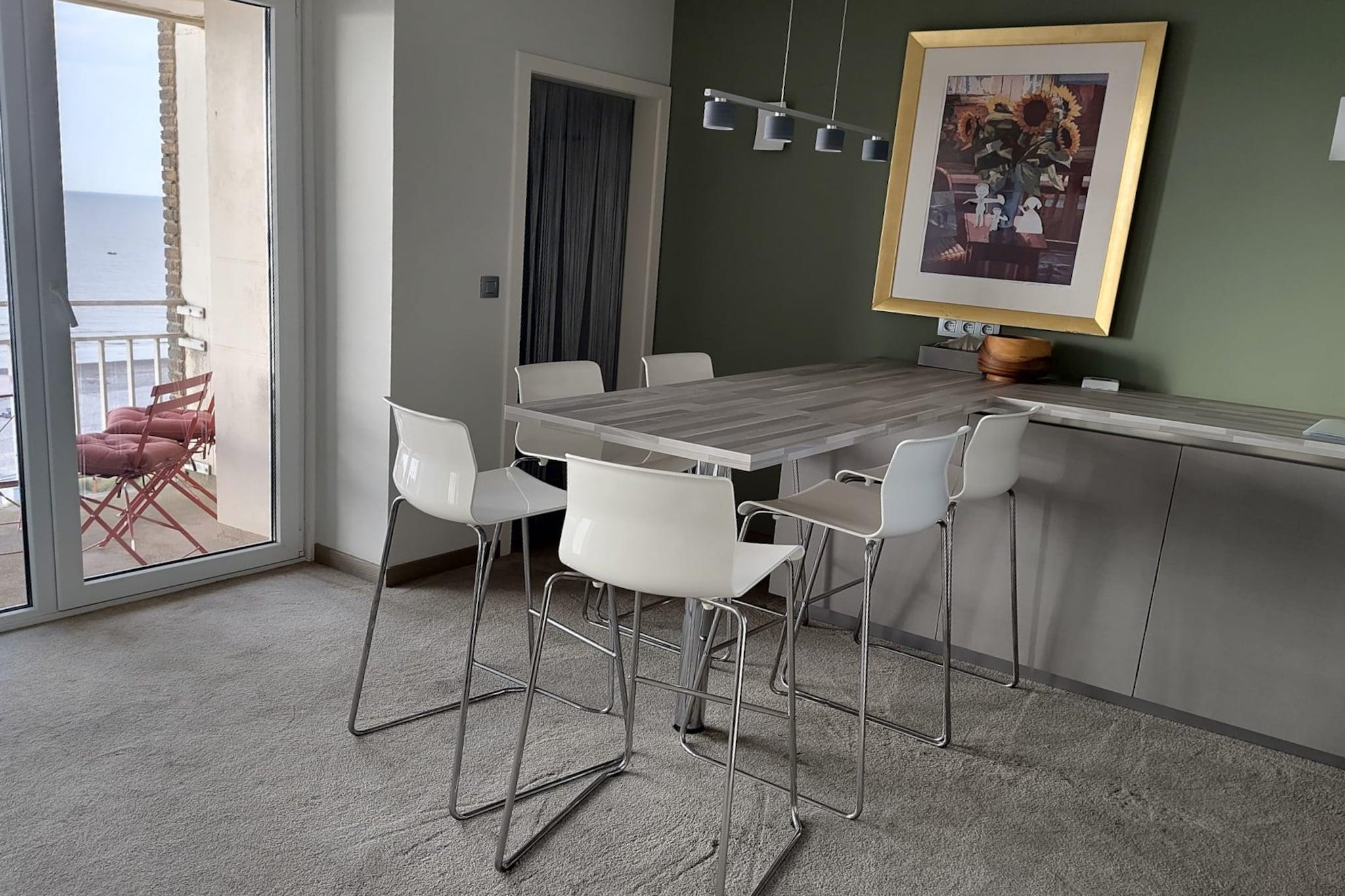 Oplev din ubekymrede ferieparadis på den belgiske kyst i denne rummelige og lyse lejlighed i Nieuwpoort-Bad, der tilbyder en betagende udsigt over havet. Dette indbydende tilflugtssted, perfekt til familier eller par, der søger rigelig plads og komfort, er en dejlig base for at opleve kystens charme. Træd indenfor i en generøs opholdsstue, der er blødgjort af hyggelige tæpper, hvilket skaber en varm og hjemlig atmosfære. Lejligheden har tre komfortable soveværelser, der tilbyder fleksible sovemuligheder. Mens det ene soveværelse har et privat fristed med en dobbeltseng, tilbyder to yderligere soveværelser køjesenge, ideelle til børn eller dem, der sætter pris på en åben, fælles atmosfære. Du finder to praktiske brusere, hvoraf det ene er omhyggeligt placeret i nærheden af det kompakte, udstyrede køkken, hvilket sikrer praktisk anvendelighed under dit ophold. Selvom der ikke er en opvaskemaskine, er der en vaskemaskine og tørretumbler til rådighed for din komfort. Nyd kystbrisen fra både for- og bagterrassen, så du kan sole dig når som helst på dagen. Den private garage giver uvurderlig bekvemmelighed, især i højsæsonen. Beliggende i en førsteklasses beliggenhed kun få øjeblikke fra Nieuwpoort-Bads pulserende shoppinggade, finder du alle nødvendige butikker, dejlige restauranter og lokale faciliteter inden for gåafstand. Denne kombination af plads, komfort og en uovertruffen havudsigt gør denne lejlighed til et ideelt valg for en virkelig afslappende kystferie.