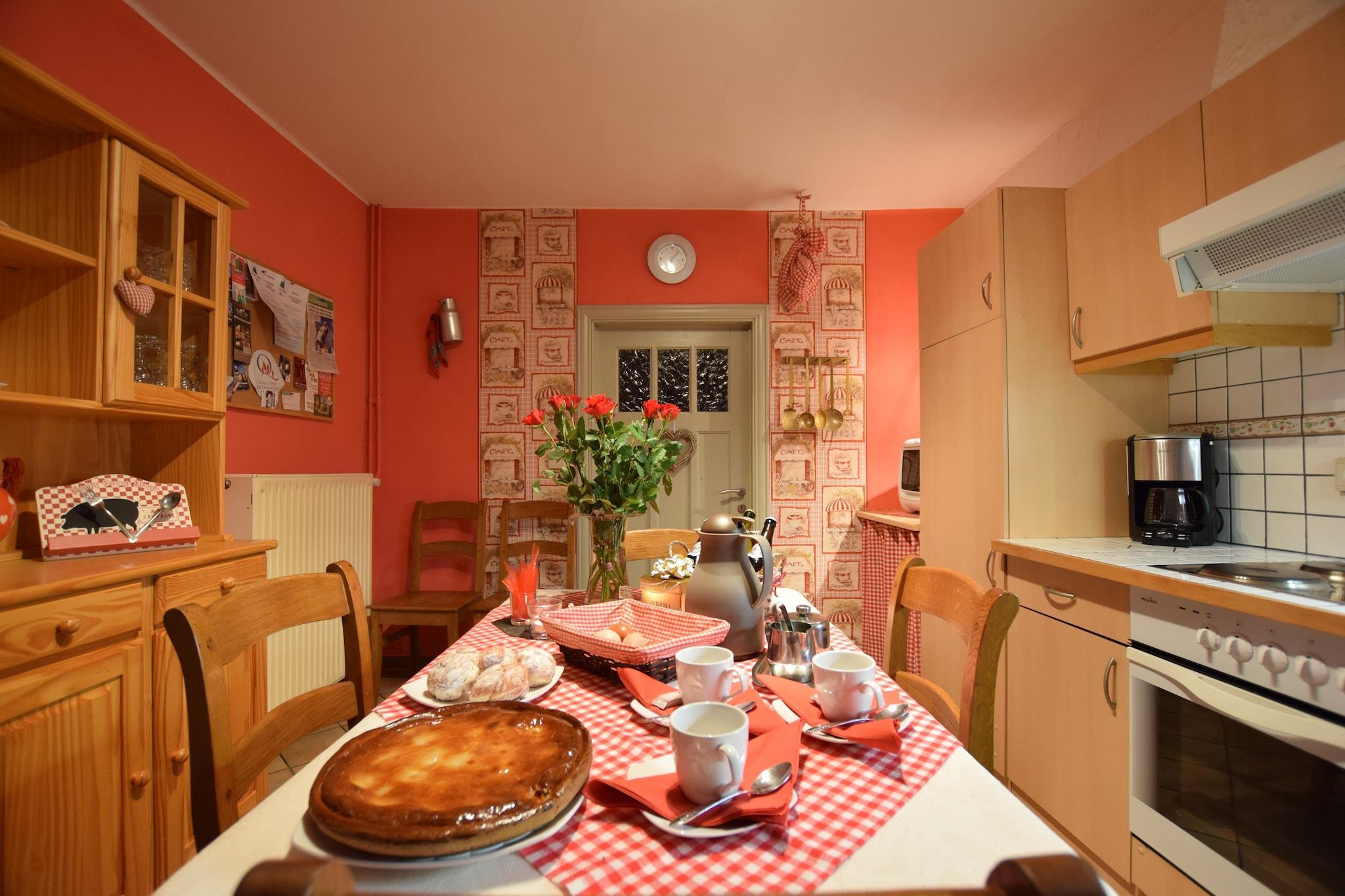 Dette hyggelige 2-værelses feriehus i Rondu (Libramont) ligger i den naturskønne Ardennerne og er perfekt til en familie eller gruppe på 6. Tilbring fredelige aftener på den overdækkede terrasse, komplet med grill og dejlig udsigt. Hjemmet er en ideel base for at nyde naturen, tage på vandreture, cykle, stå på ski, jage eller sejle i kano i området. Det giver også nem adgang til charmerende byer som Arlon, Bouillon og Virton, hver med rig historie og lokal kultur. Indvendigt holder centralvarme boligen varm året rundt. Det veludstyrede køkken har filterkaffemaskine og ovn, så du nemt kan tilberede måltider. En privat indhegnet have med udendørs møbler inviterer dig til at spise udendørs i den friske luft. Familier med børn er velkomne, huset har en børneseng og høj stol. Et kæledyr er tilladt, så din lodne ledsager ikke behøver at gå glip af noget.