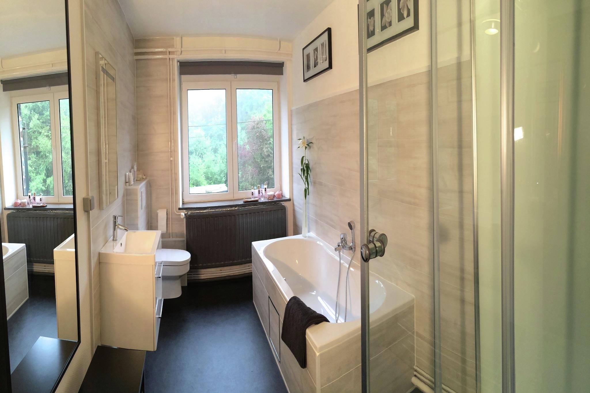 I Nisramont La Roche, en by i "Perle of the Ardennes", finder du dette smukke, nyrenoverede og smukt godt vedligeholdte hus på en privat ejendom på 80.000 m2 midt beskyttet område med plads til Max. 60 gæster! Ved sin meget rolige og komplette beliggenhed er denne unikke ejendom ideel til familiefester, bryllupper og jubilæer, sportslige weekendferier, corporate retreats, workshops og ferier! Det hyggelige og komfortabelt indrettede landsted tilbyder uovertruffen udsigt. Især fra det tilsvarende 30 meter høje observationstårn kan du nyde den bedste udsigt over Ardennerne! Catering er altid muligt, selvom det spektakulære 17m lange dørkøkken køkken inviterer dig til at nyde omfattende madlavning sammen! I parken til Mansion ved siden af terrasserne er der tre store faste BBQ'er til en dejlig grillfest! Både indendørs og udendørs er der masser af underholdning blandt andet med et bordtennisbord, en afslappende sauna med jacuzzi og et springvand bad, et volleyområde med lige og længere for alle har deres egen plads til egen aktivitet. Området byder på omfattende muligheder for alle udendørs aktiviteter.