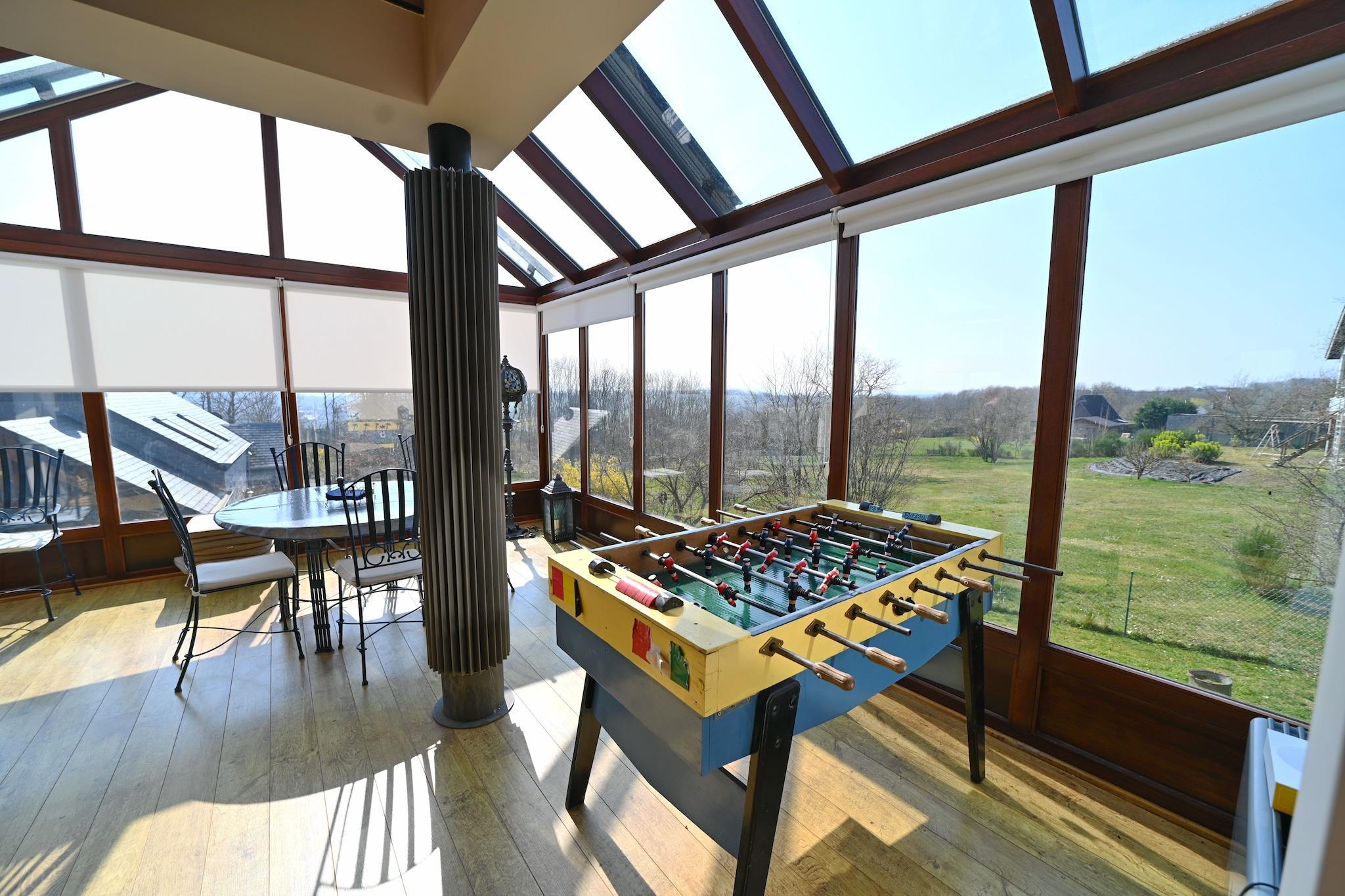 Stueetage: (Køkken(komfur(glaskeramisk), kaffemaskine(kaffepude), combi-mikroovn, opvaskemaskine , køle-fryseskab), stue / spisestue(Fjernsyn, spisebord, kakkelovn(træ), sofahjørne), soveværelse(dobbeltseng), soveværelse(dobbeltseng), soveværelse(dobbeltseng), badeværelse(bruser, 2x håndvask, toilet), badeværelse(bruser, 2x håndvask), åbent rum(dobbeltsovesofa, Fjernsyn, sofahjørne)) havestue(spisebord, bordfodbold), garage, varme(central), terrasse, have, havemøbler, grill, parkering