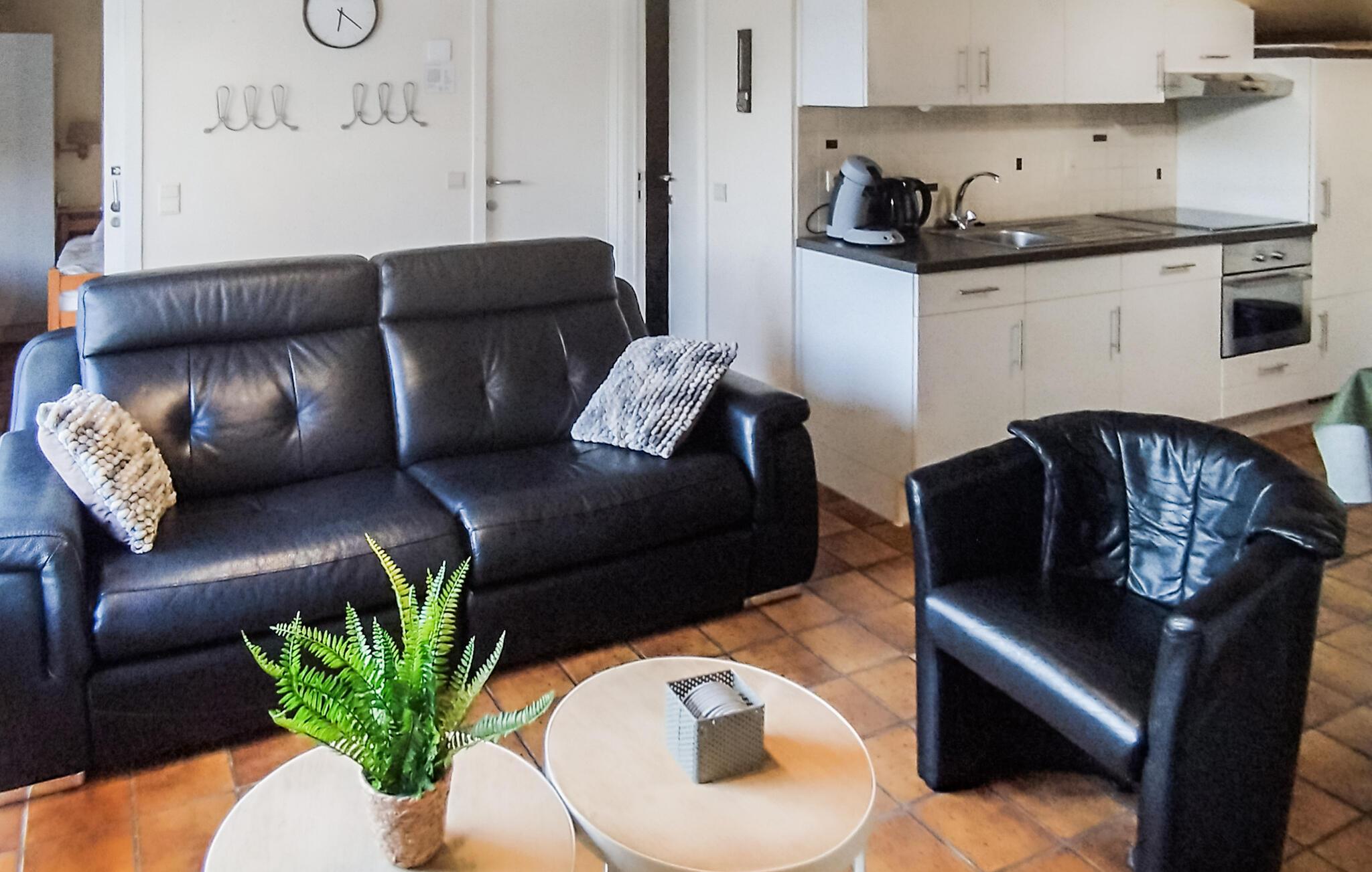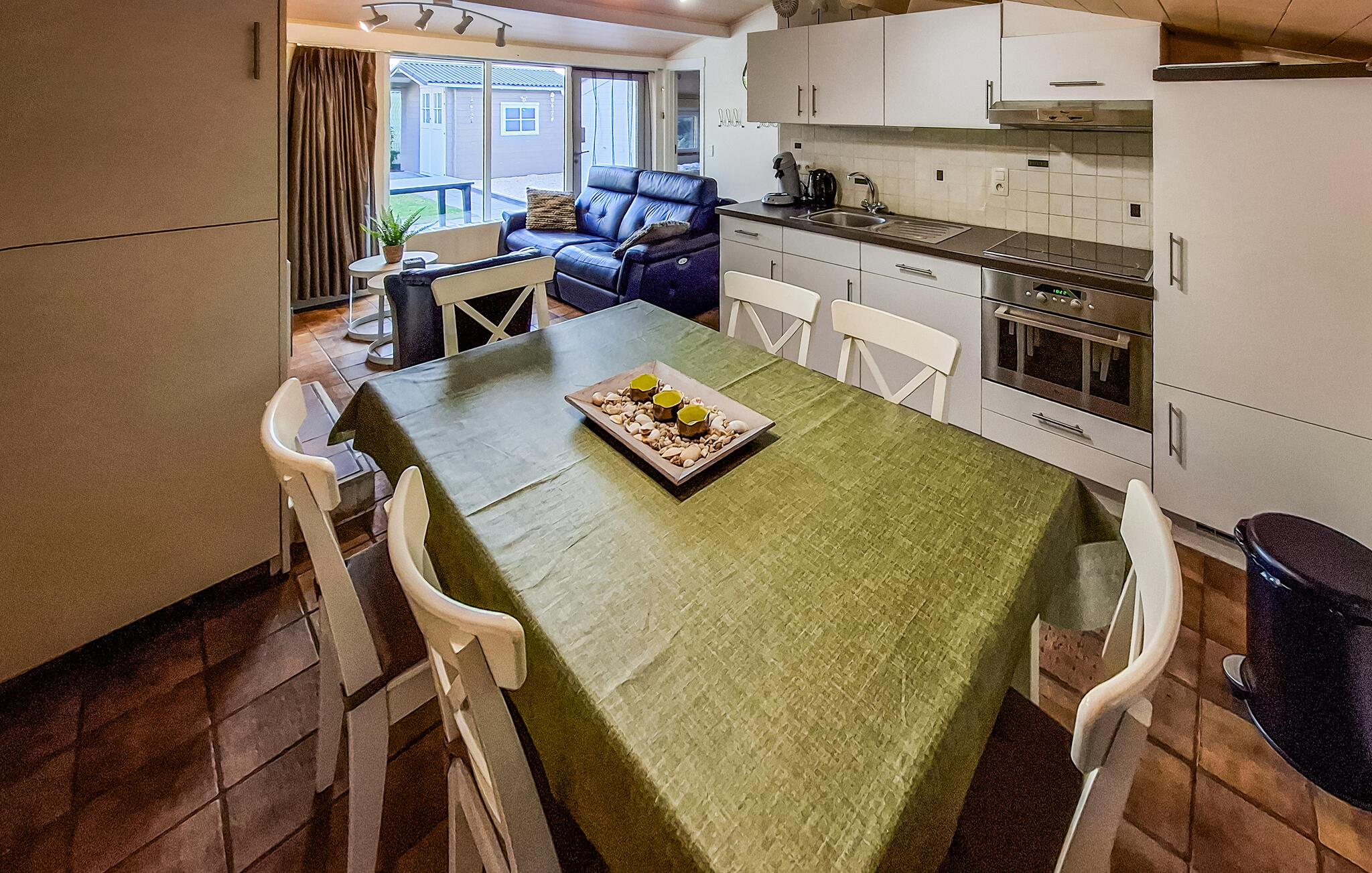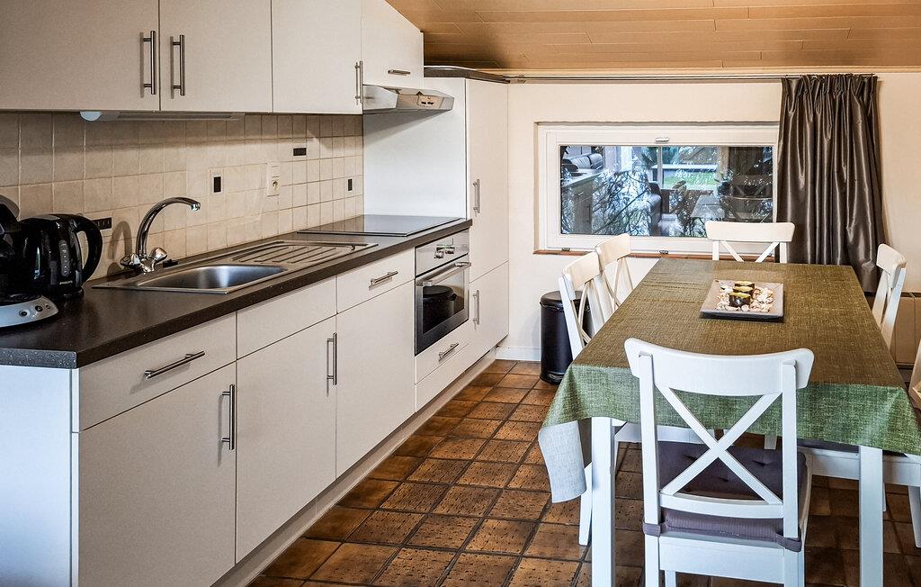 Huset er funktionelt indrettet med gode faciliteter og derfor en fin base. Det hyggelige spisekøkken har kig til den grønne have udenfor. Samme skønne udsigt har I fra stuen, hvor I kan slappe af efter en lang dag med spændende aktiviteter.