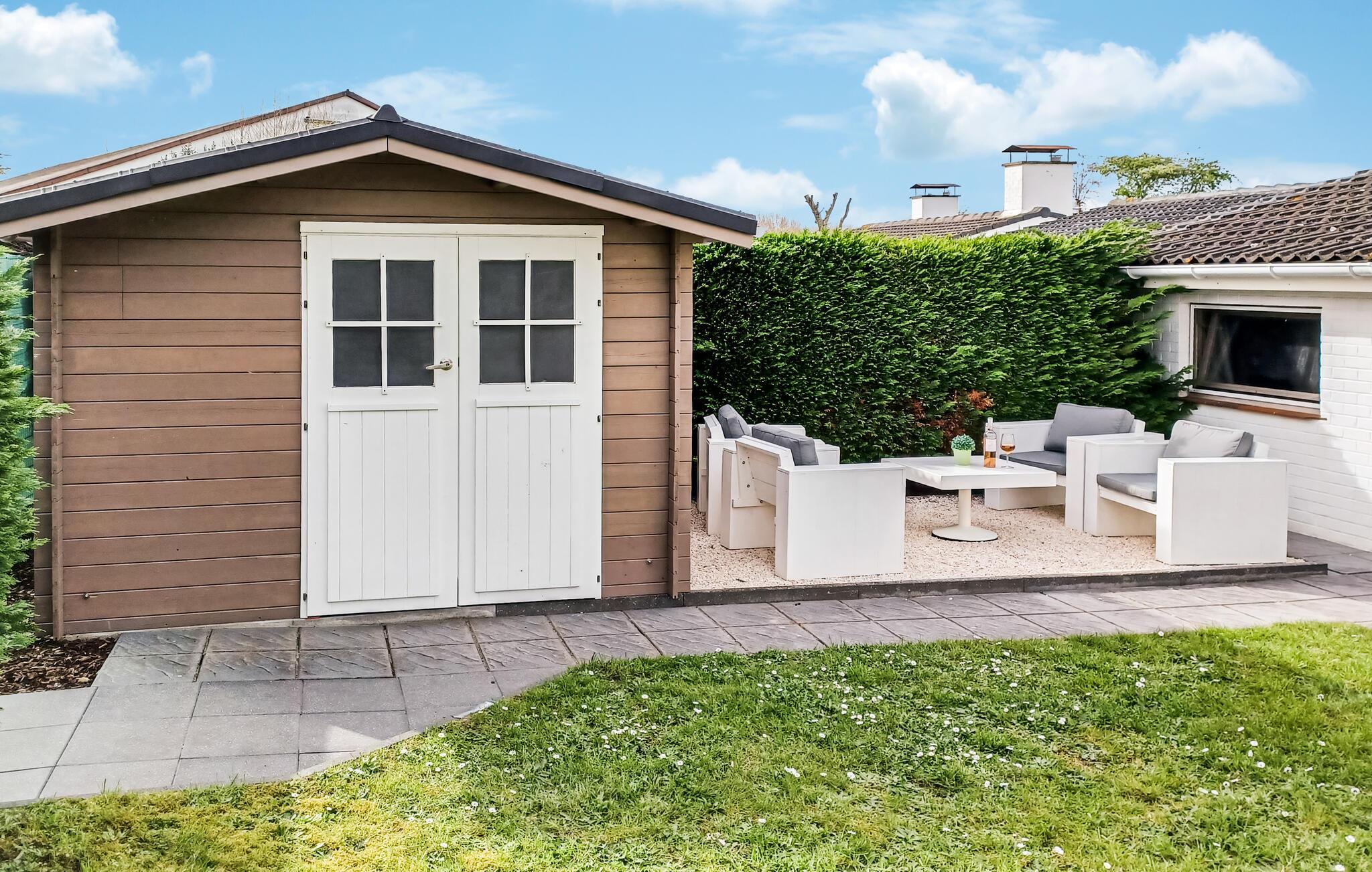 Sæt jer ud i haven, så snart solen er fremme og find en dejlig plet, hvor I kan sætte jer med kaffen. Børnene får god plads til at lege på græsplænen, og I har skønne rammer til at nyde sommeraftenerne.