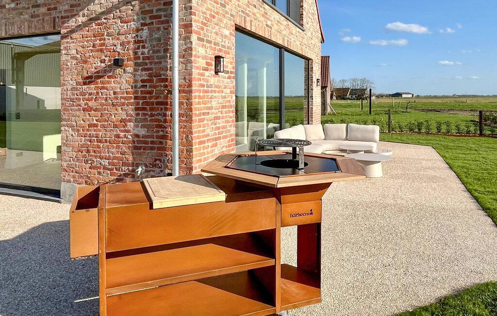 Træd ud på den rummelige terrasse og nyd den vidtstrakte udsigt. Slap af i loungeområdet eller brug udekøkkenet til spisning under åben himmel. Den velholdte græsplæne tilbyder masser af plads til aktiviteter og lægger op til at blive hængende. Børnene kan lege på legepladsen, mens I tilbringer afslappende timer på terrassen eller spiller et spil petanque sammen.