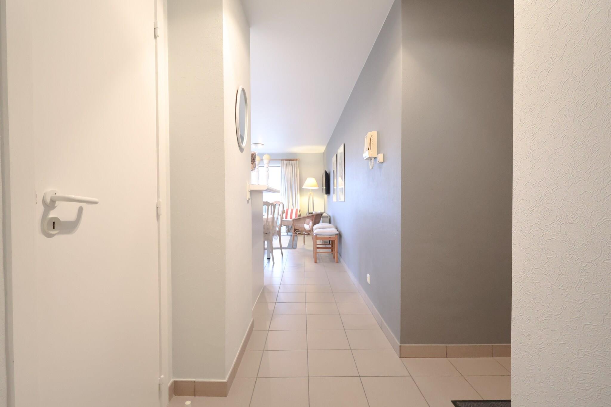 Denne smukt møblerede hjørnelejlighed byder på et lyst og moderne opholdssted med rummelig planløsning og solrig terrasse. Det er designet til op til fem gæster og har to komfortable soveværelser, der sikrer et afslappende ophold. Lejligheden er pænt vedligeholdt, hvilket skaber en indbydende atmosfære for familier eller små grupper. En hyggelig opholdsstue med fladskærms-tv giver den perfekte plads til at slappe af. Boligen tilbyder også privat parkering i bygningen, og gæsterne har adgang til et sikkert opbevaringsområde til cykler. Bemærk venligst, at kæledyr ikke er tilladt. Bekvemt beliggende nær forskellige attraktioner, er lejligheden ideel for dem, der ønsker at udforske det omkringliggende område. Gæsterne kan nyde nærliggende caféer, restauranter og lokale markeder med friske regionale produkter. Beliggenheden er perfekt til udendørs aktiviteter såsom cykling og gåture, så besøgende kan opleve charmen ved de kystnære omgivelser. Med butikker og underholdningsmuligheder inden for rækkevidde, er alt hvad du behøver for et afslappende ophold tæt på. Lejligheden har et moderne, fuldt udstyret køkken med højkvalitetsapparater, herunder en ovn, mikroovn og kaffemaskine, hvilket gør tilberedningen af måltider ubesværet. Et rummeligt badeværelse har badekar, håndvask og toilet, hvilket giver bekvemmelighed og komfort. Det lyse opholdsområde forbindes problemfrit med terrassen og tilbyder et indbydende sted at slappe af og nyde solen.