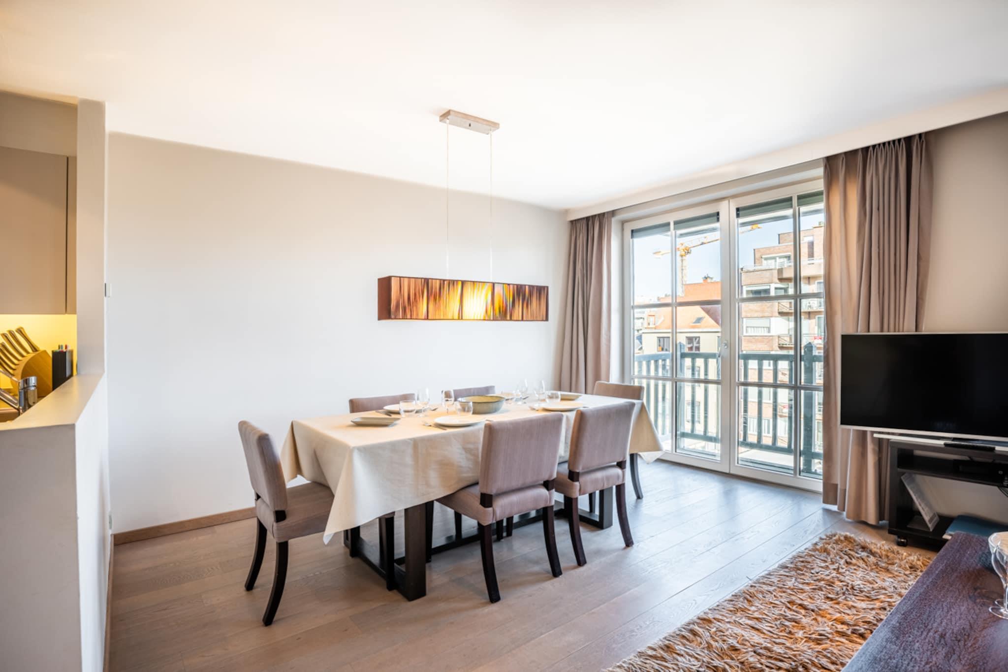 Oplev et stilfuldt og moderne kystnært fristed, der er perfekt til fire til fem gæster, der søger komfort og elegance. Denne gennemtænkte lejlighed har to hyggelige soveværelser, der tilbyder en fredfyldt tilflugtssted efter en dag ved havet. Den lyse stue går problemfrit over i et åbent køkken udstyret med luksuriøse apparater, hvilket skaber en rummelig og indbydende atmosfære. Et badeværelse og separat brusebad sikrer ekstra bekvemmelighed, mens den private garage med direkte adgang til lejligheden giver sikker parkering. Denne perle ligger på fjerde sal, kun en kort gåtur fra sandstranden og det glitrende hav, hvilket gør den ideel til en ferie ved havet. Fordyb dig i de livlige omgivelser fyldt med charmerende caféer, hyggelige restauranter og lokale markeder, der tilbyder friske fisk og skaldyr og regionale delikatesser. De maleriske kyststier indbyder til udforskning, enten til fods eller på cykel, mens nærliggende attraktioner og kulturelle seværdigheder lover underholdning for alle aldre. Denne lejlighed er designet til problemfri afslapning og kombinerer moderne faciliteter med en uovertruffen beliggenhed, hvilket gør den til det perfekte valg til din næste kystferie. )