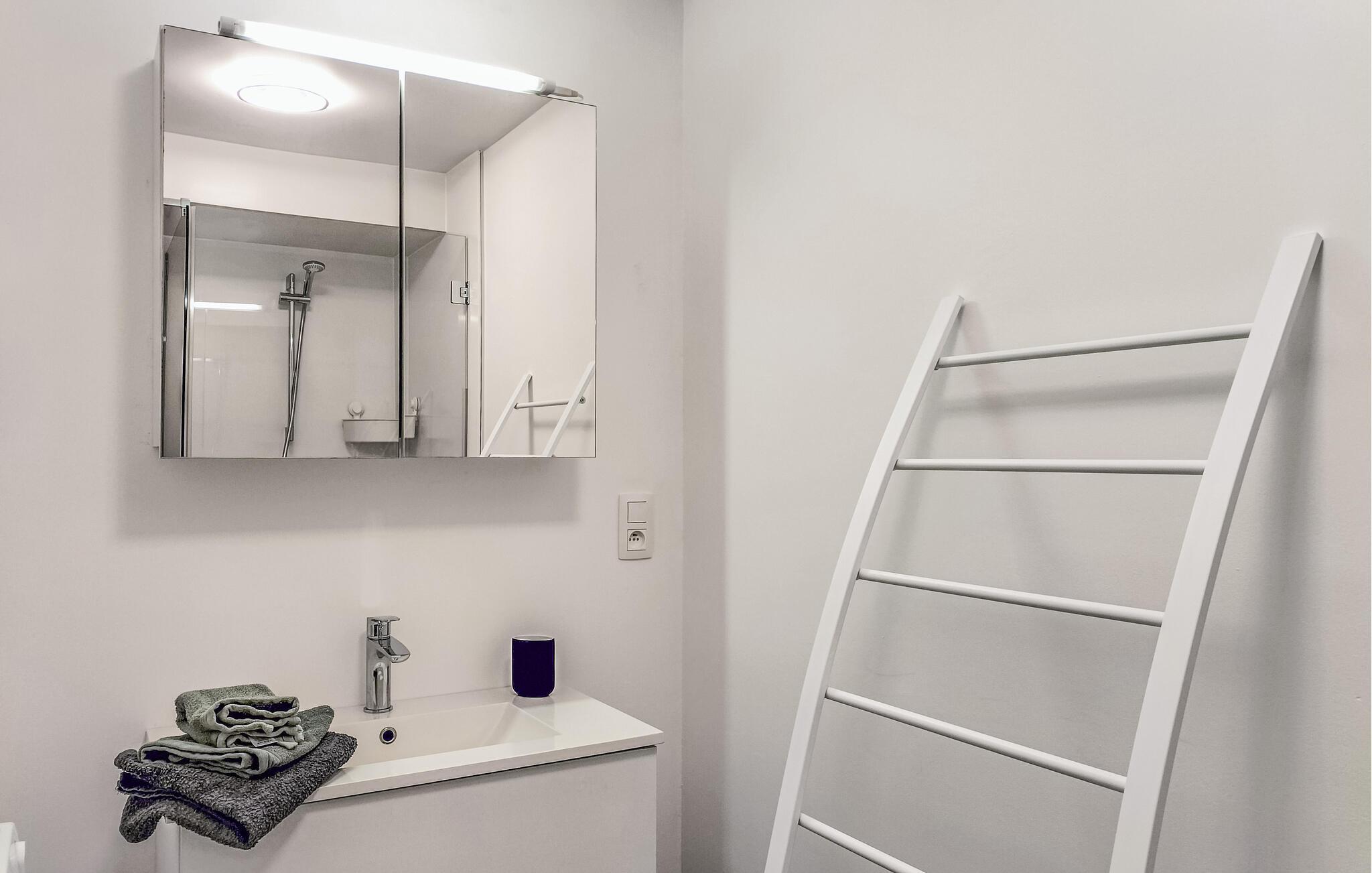 Velkommen til denne lyse ferielejlighed, som lægger op til glade dage med masser af vandsjov, og solbadning. Lejligheden er godt udstyret med moderne faciliteter. Mens I hygger jer med madlavningen i køkkenet, kan børnene læne sig tilbage i den store sofa. Tag en tur ned til stranden og mærk det bløde sand mellem tæerne.