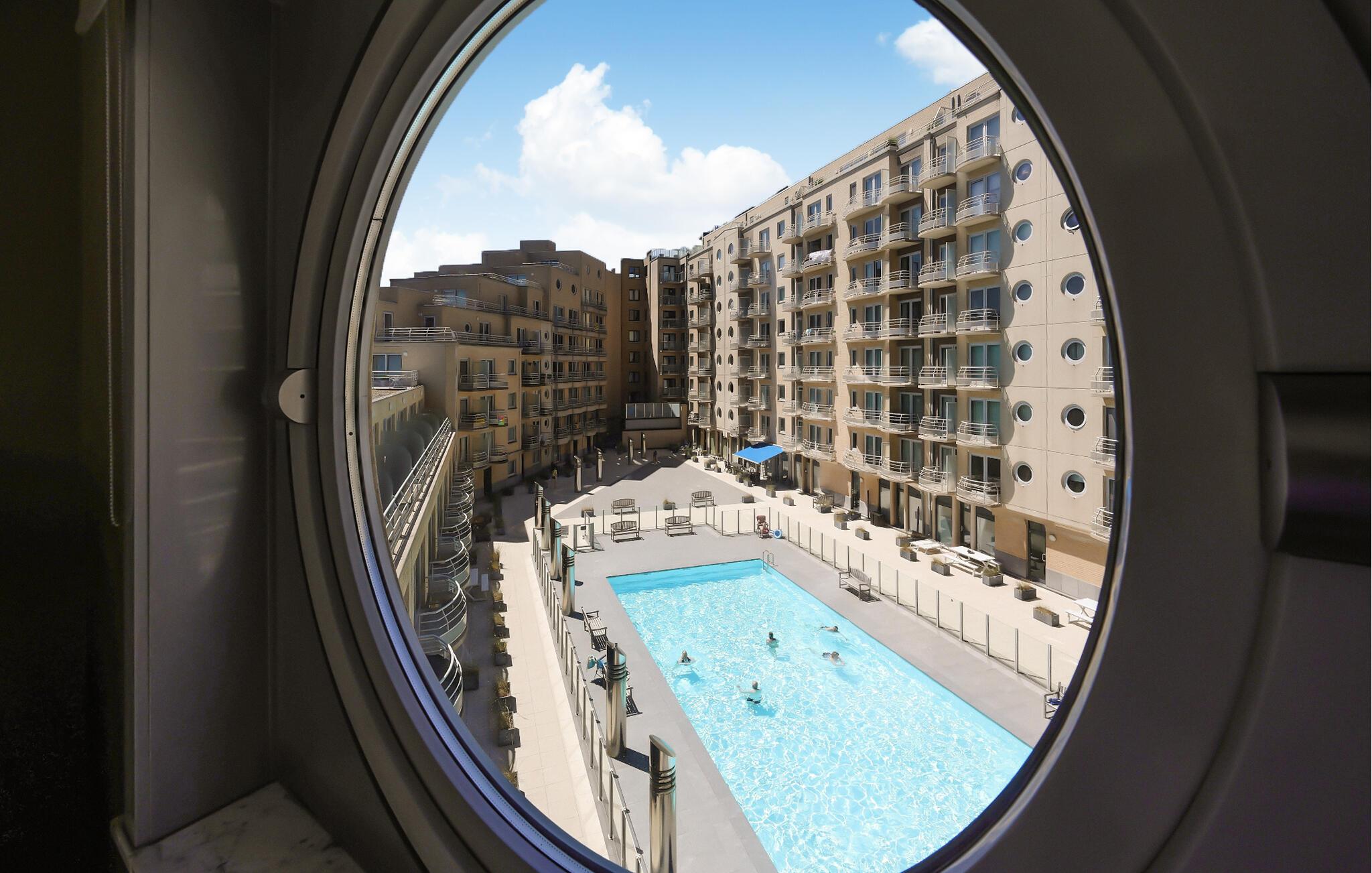 Fra lejligheden har I adgang til flere terrasser og jeres egen altan, hvor I kan nyde jeres morgenkaffe med udsigt til poolen, inden I begiver jer ned for dagens første dukkert.