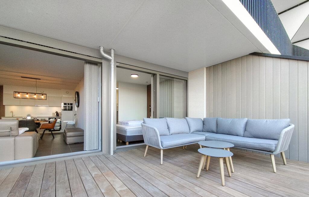 Denne luksuriøse ferielejlighed i et eksklusivt huskompleks tæt ved sandstranden lægger op til jer en uforglemmelig ferie. De lyse værelser er indrettet til en høj standard og giver jer en elegant, komfortabel atmosfære. Kom og føl jer straks hjemme, når I lægger fødderne op i sofaen eller tilbereder jeres måltider sammen. Især den rummelige terrasse lægger op til at nyde den friske havbrise med en kop kaffe. Den fælles pool giver jer et afslappende alternativ til havet, mens den stilfulde indretning gør hvert øjeblik i lejligheden til en fornøjelse.