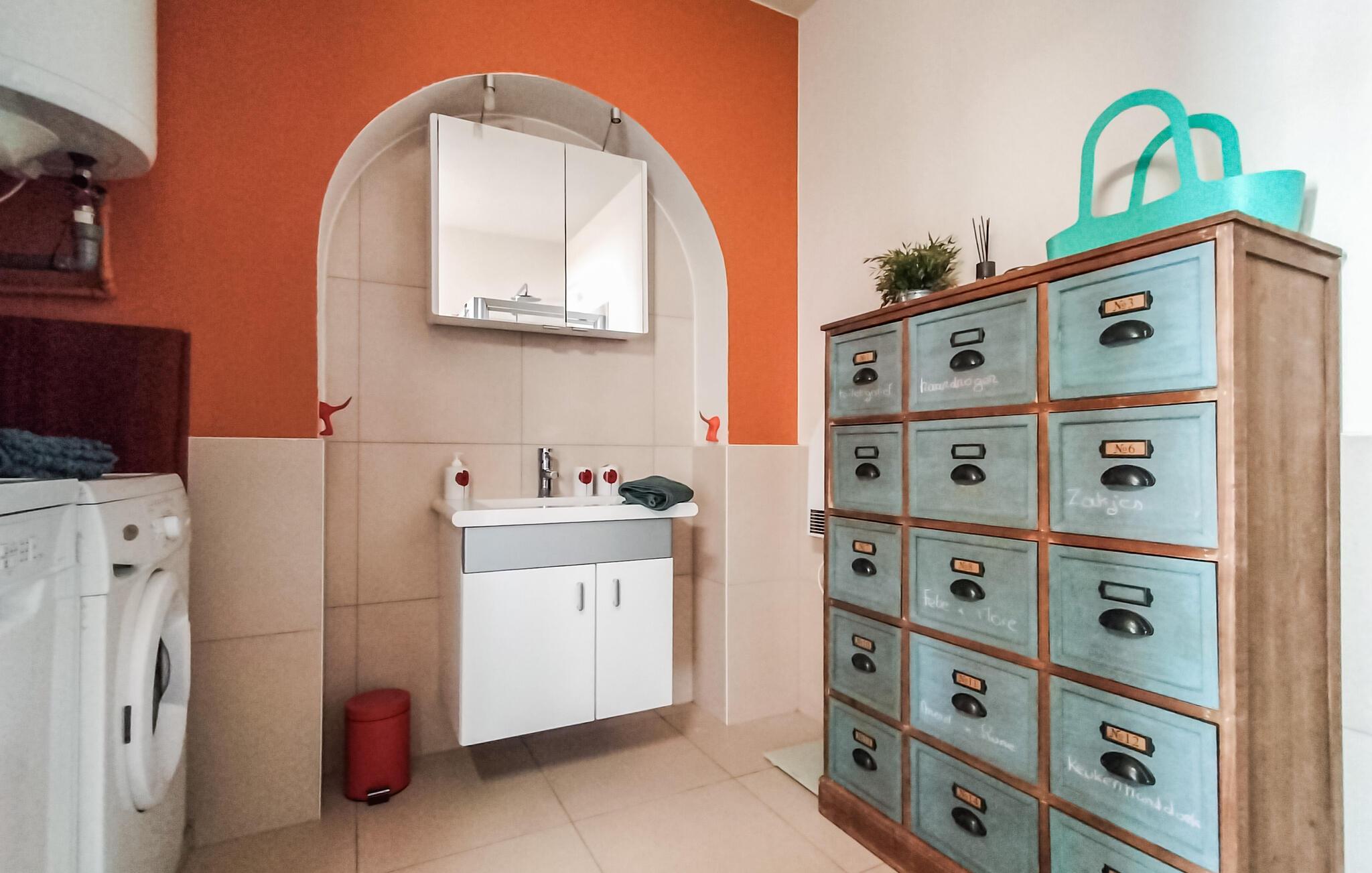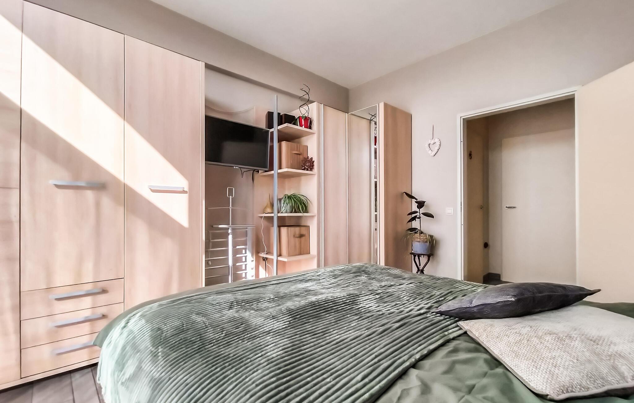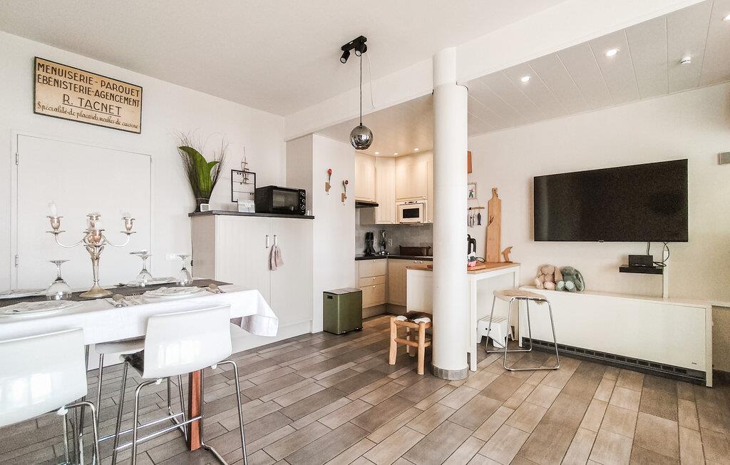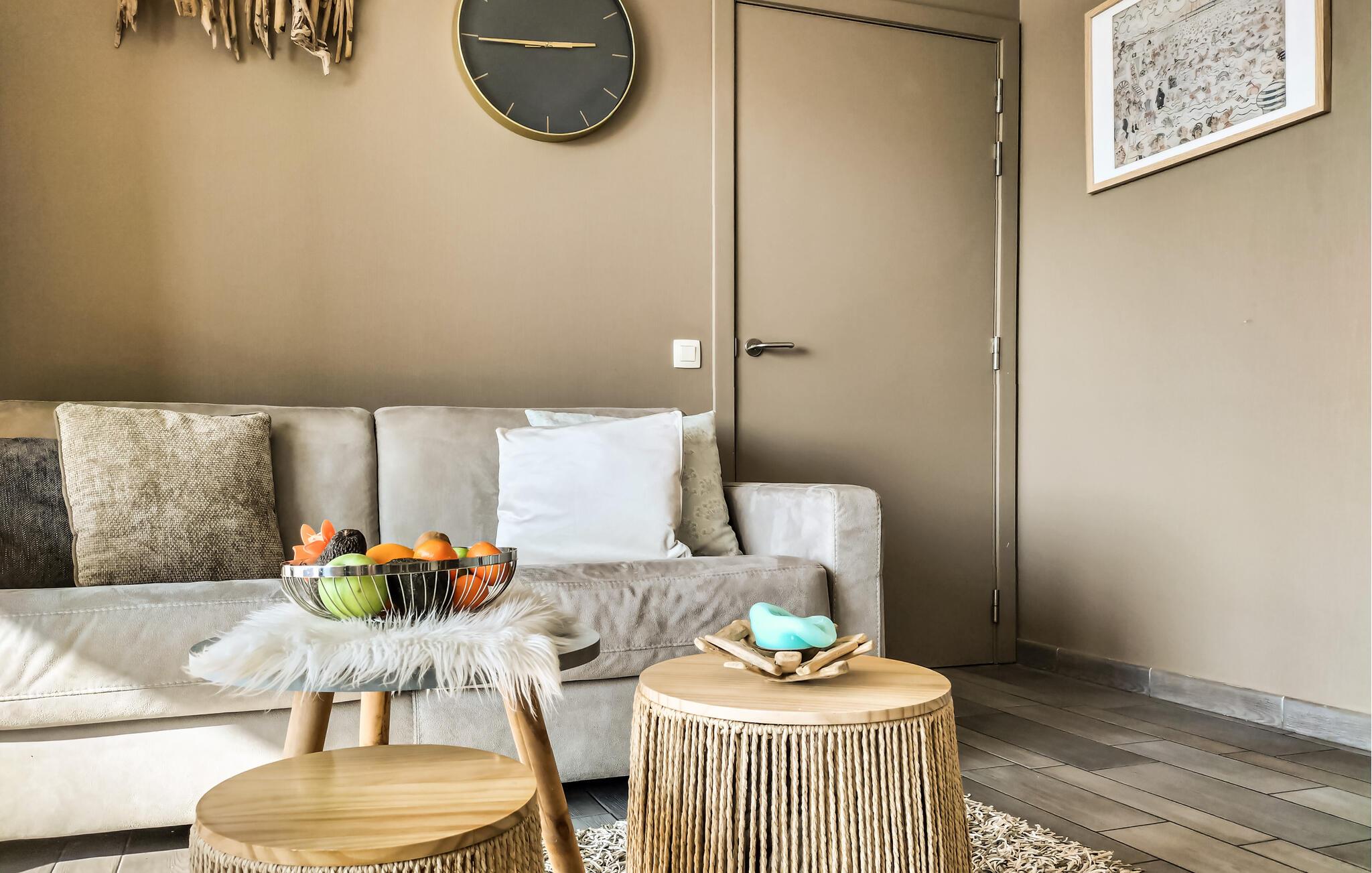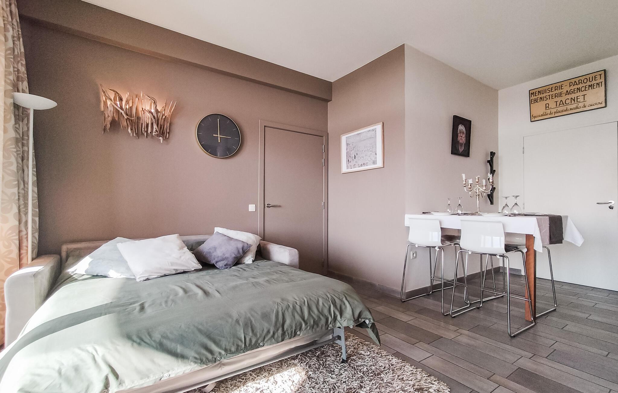 Denne ferielejlighed tilbyder jer et smukt tilflugtssted for en afslappende pause på den belgiske kyst. Takket være den førsteklasses beliggenhed er stranden, klitterne og de mange fritidsaktiviteter kun få skridt væk. I vil straks føle jer hjemme i den smagfulde lejlighed. Det åbne opholdsområde er noget særligt med sin lyse, venlige atmosfære og stilfulde indretning med naturlige farver og moderne accenter. Find jer godt til rette i den komfortable sofa eller nyd et hyggeligt måltid ved det indbydende spisebord.