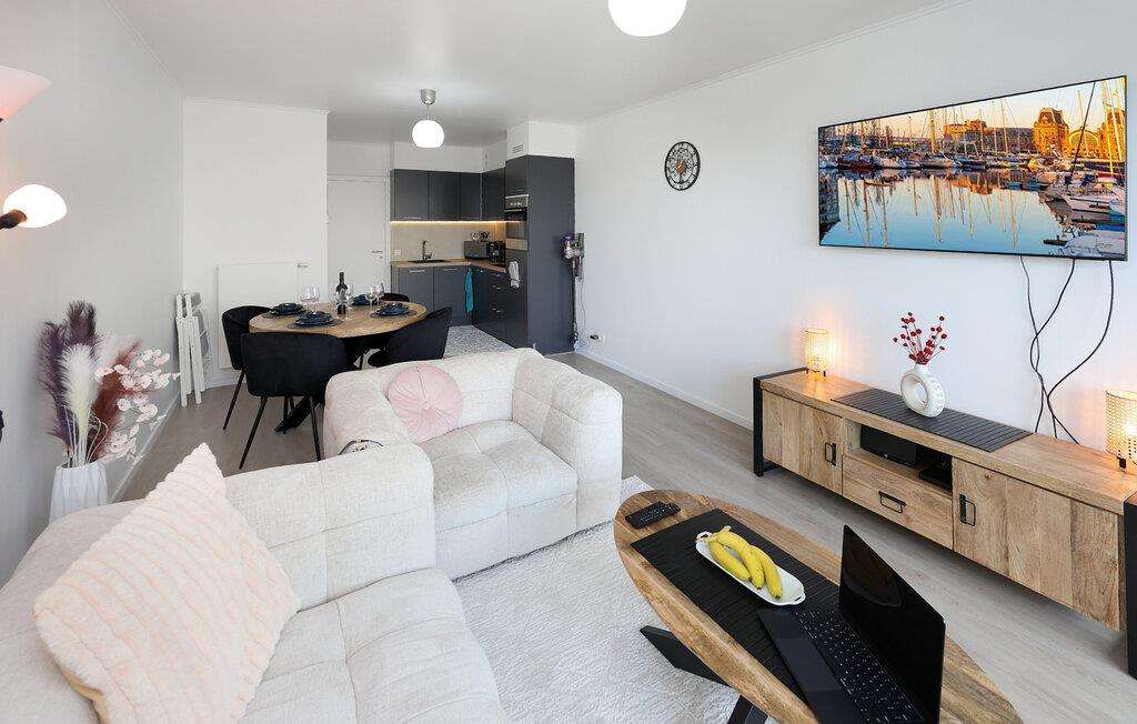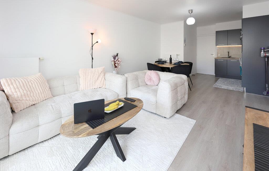Denne moderne ferielejlighed tilbyder jer det ideelle sted for afslappende dage ved havet. Beliggende direkte på sandstranden inviterer det jer til at slappe af og have det godt. Start jeres dag med et hop i det forfriskende vand og nyd de første solstråler på jeres hud. Lejligheden er noget særligt med lyse, moderne møbler og tilbyder alt hvad I behøver for et behageligt ophold.