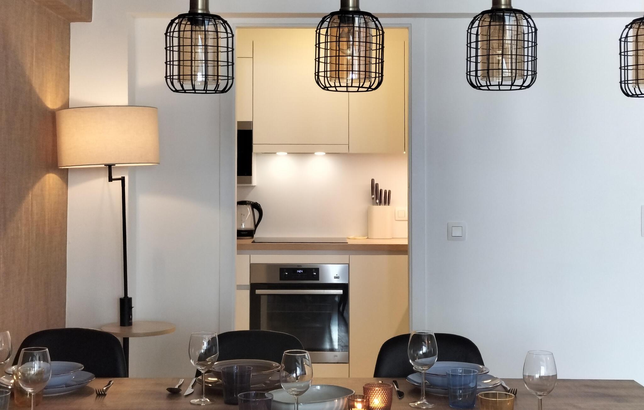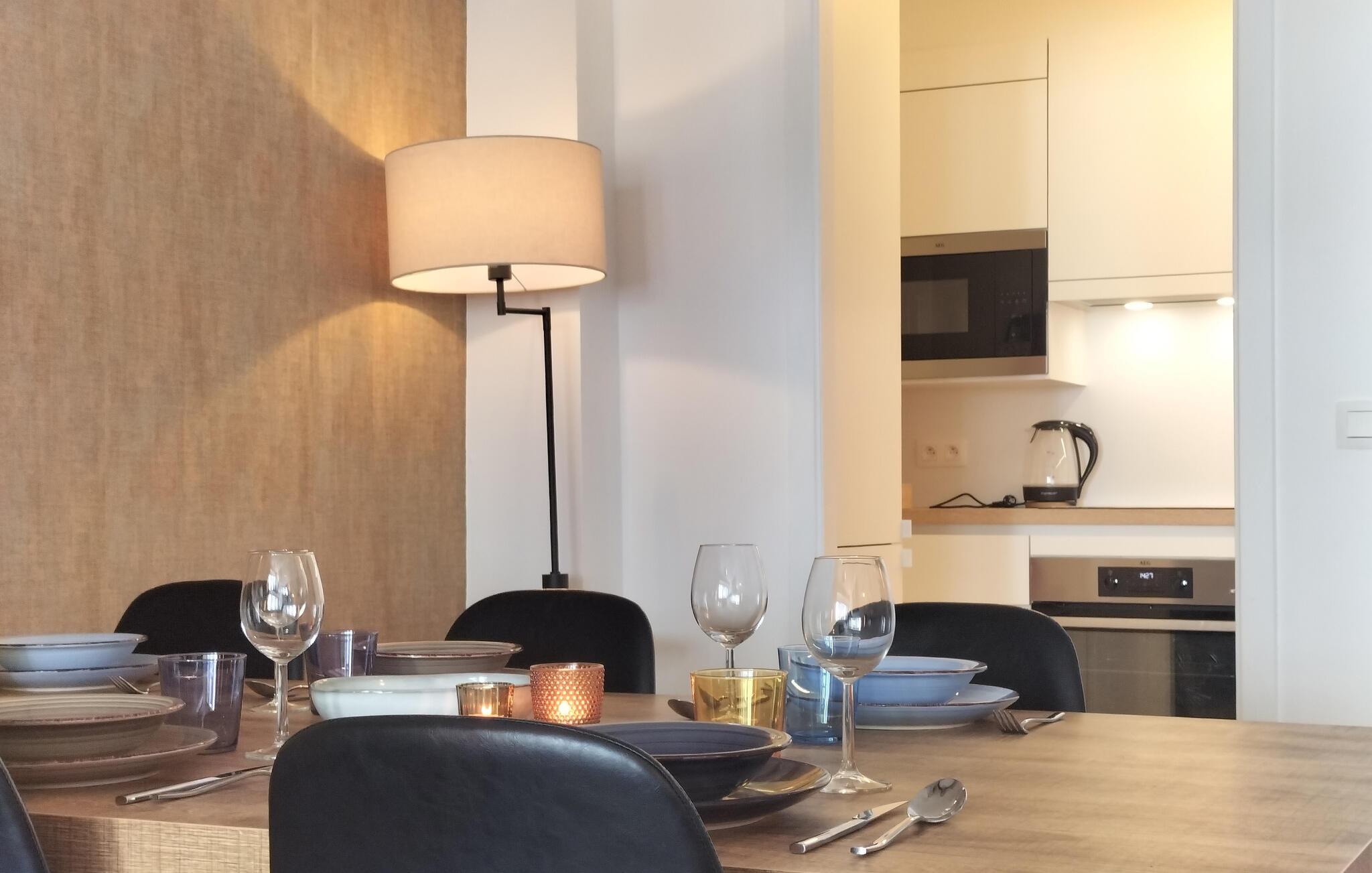 Denne elegante ferielejlighed kombinerer byliv med en afslappet ferieatmosfære. I befinder jer kun få skridt fra havnen og stranden, i umiddelbar nærhed af butikker, restauranter og togstationen.