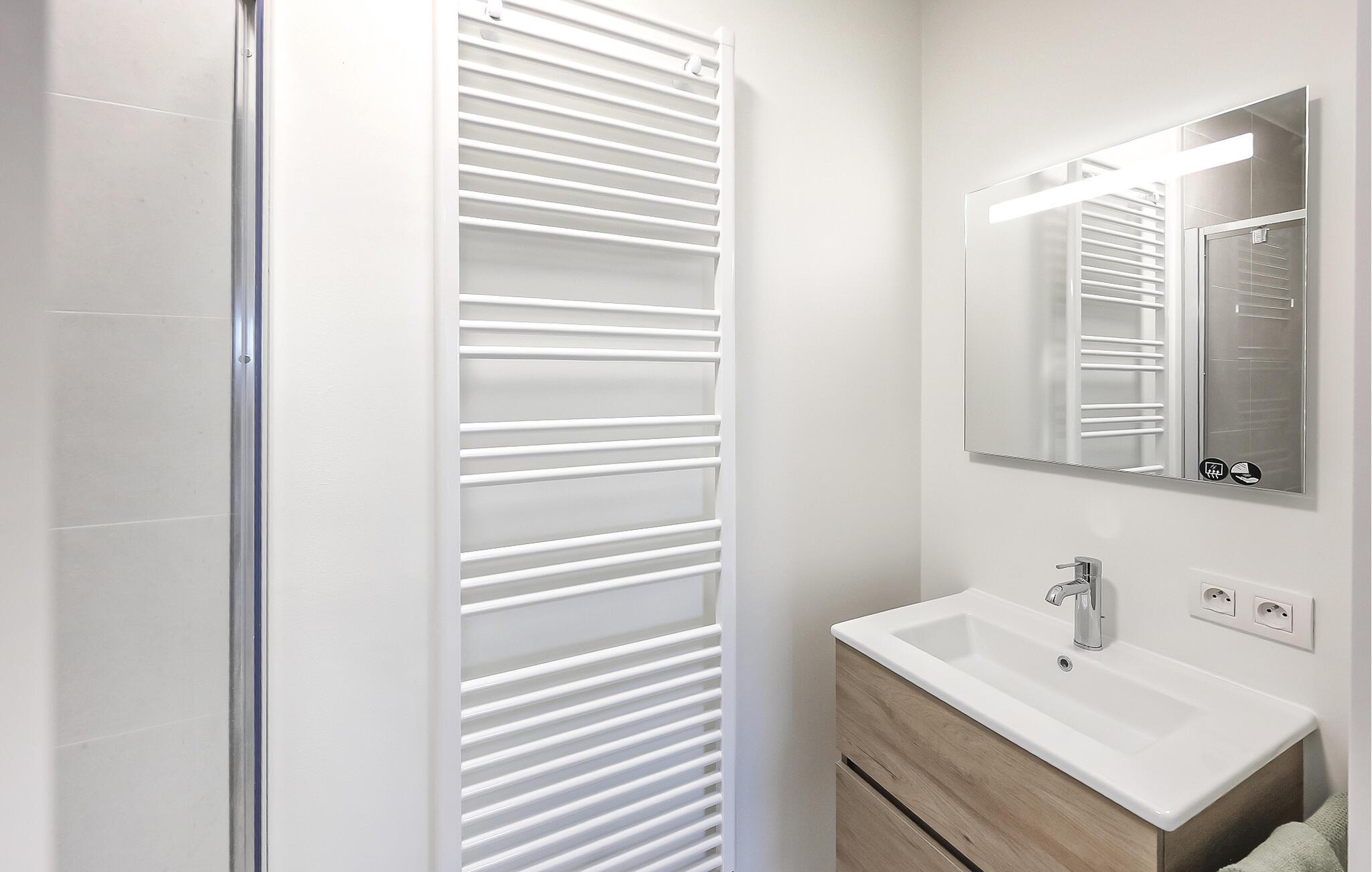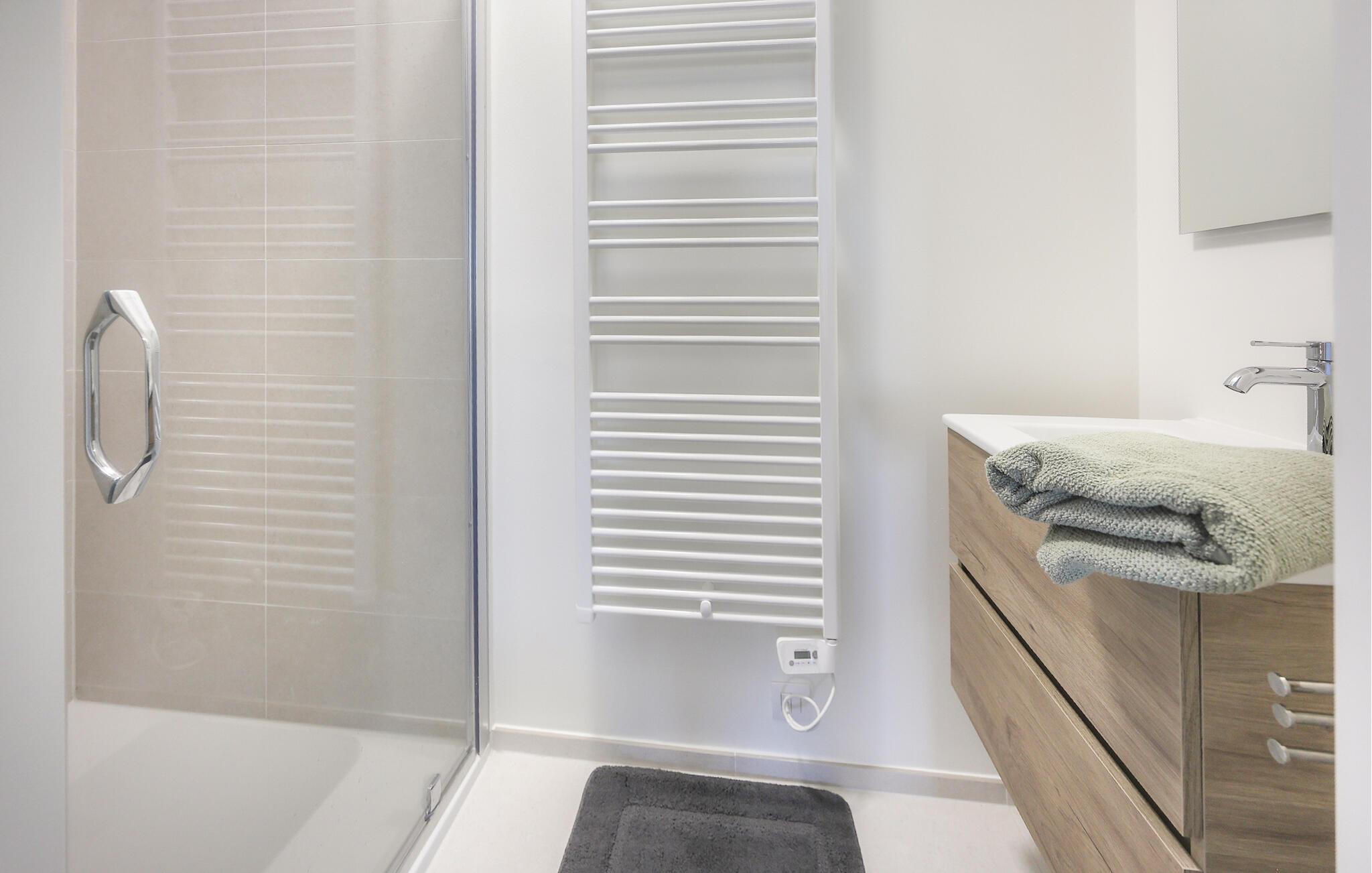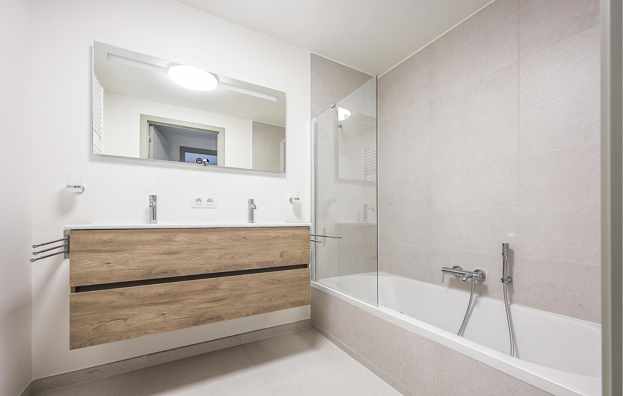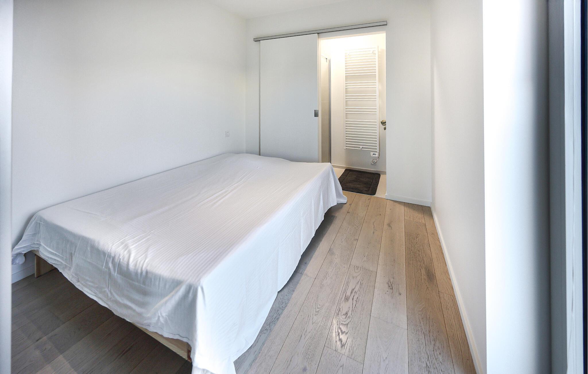 Denne stilfulde lejlighed er noget særligt med sit lyse, moderne design og åbne opholdsrum, der straks formidler en følelse af rummelighed og lethed. Store vinduer lukker masser af naturligt lys ind og tilbyder en smuk udsigt over omgivelserne, mens varme trætoner og elegante møbler skaber en behagelig og hjemlig atmosfære. Det moderne køkken med morgenmadsbar lægger op til at nyde øjeblikke med fornøjelse – ideelt til at starte dagen på en afslappet måde eller afslutte aftenen med et glas vin.