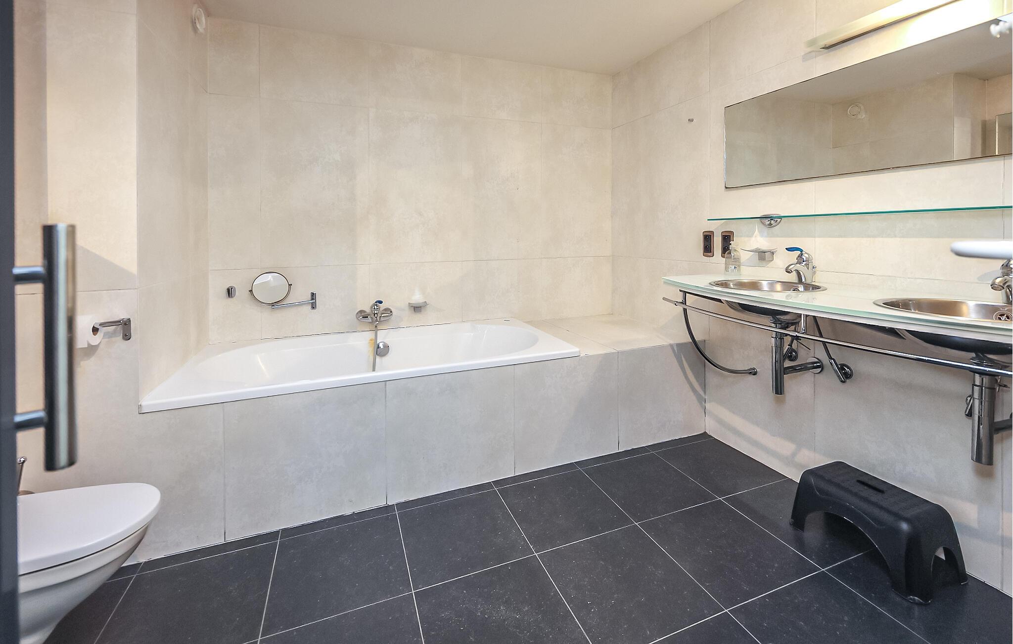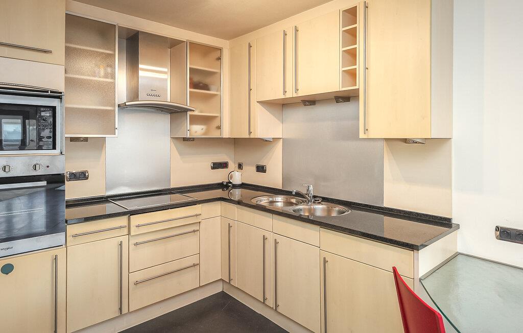 Den rummelige lejlighed er noget særligt med sit overflod af lys og åbne planløsning, der skaber en følelse af frihed og komfort. Nyd afslappende aftener med baggrundsmusik, spil kort sammen eller stream en god serie i den stilfulde opholdsstue. Det åbne køkken og den store spiseplads lægger op til at lave mad sammen og afslutte dagen med et glas vin.