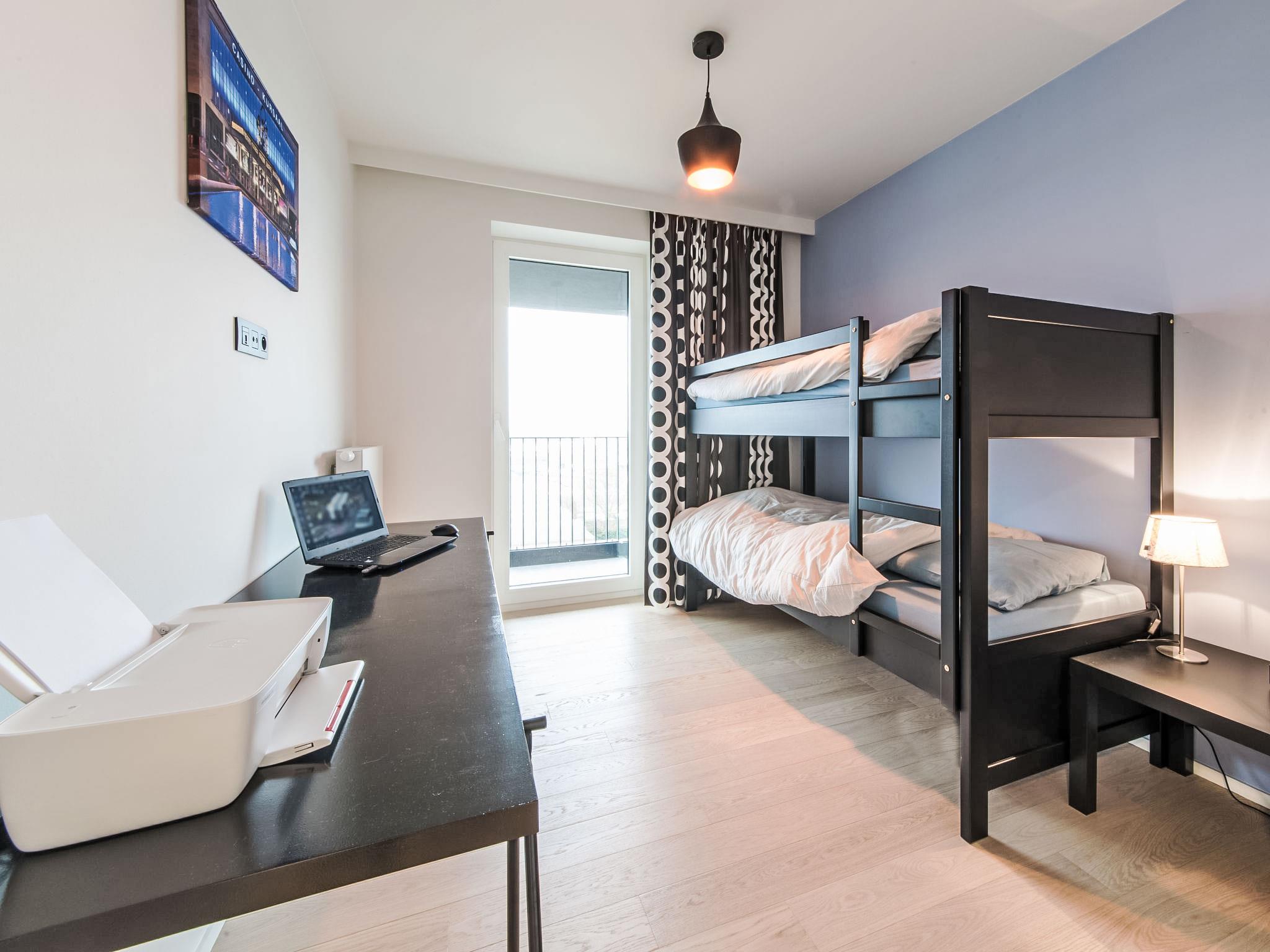 "Havenzicht with parking", 3-room apartment 125 m2 on 6th floor. Modern furnishings: entrance hall with separate WC and gas heating. Living/dining room with dining table, TV, digital TV, international TV channels and hi-fi system. Exit to the terrace. 1 room with 1 x 2 bunk beds (90 cm, length 200 cm). 1 double bedroom with 1 double bed (180 cm, length 200 cm), TV. Open kitchen (dishwasher, 4 ceramic glass hob hotplates, electric coffee machine, combination microwave). Shower, double hand-basin. Large terrace 60 m2. Terrace furniture, sitting area, box-room. Panoramic view of the sea, the port and the city. Facilities: washing machine, hair dryer. Internet (WiFi, free). Garage space n 10 on the property. Please note: non-smoking house. Smoke alarm, fire extinguisher. Project in full development. Be one of the first guests to enjoy this unique location at a low price! LD383191