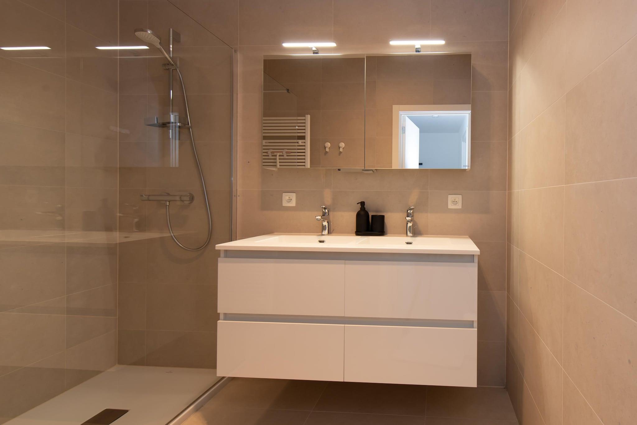Denne moderne 2-værelses lejlighed tilbyder et komfortabelt og stilfuldt ophold for op til fire gæster. Det første soveværelse har en dobbeltseng med en dyne til to, mens det andet soveværelse er udstyret med 2 enkeltsenge, perfekt til børn eller ekstra gæster. Lejligheden er røgfri og kæledyrsfri, hvilket sikrer et rent og fredeligt miljø. Med en rummelig elevator vil gæsterne finde det nemt at komme og gå. Et cykelskur med to pladser er til rådighed for dem, der ønsker at udforske området på to hjul. Lejligheden er beliggende nær stationen i Oostende og Mercator dok og giver nem adgang til offentlig transport og forskellige attraktioner. Nyd en afslappet spadseretur langs diget og nyd havudsigten. Gæsterne kan også besøge nærliggende caféer, restauranter og butikker, alle inden for gåafstand. Lejlighedens sydvendte beliggenhed og terrasse gør den til et ideelt sted at slappe af, mens du nyder solskin, med en fredfyldt udsigt over gården. Det veludstyrede køkken giver gæsterne mulighed for nemt at tilberede måltider med moderne apparater såsom en kombiovn, køleskab og opvaskemaskine. Badeværelset har en brusekabine og en enkelt håndvask, mens et separat toilet tilføjer ekstra bekvemmelighed. Uanset om du slapper af i stuen med havudsigt eller nyder den friske luft på terrassen, tilbyder denne lejlighed alle hjemmets bekvemmeligheder.