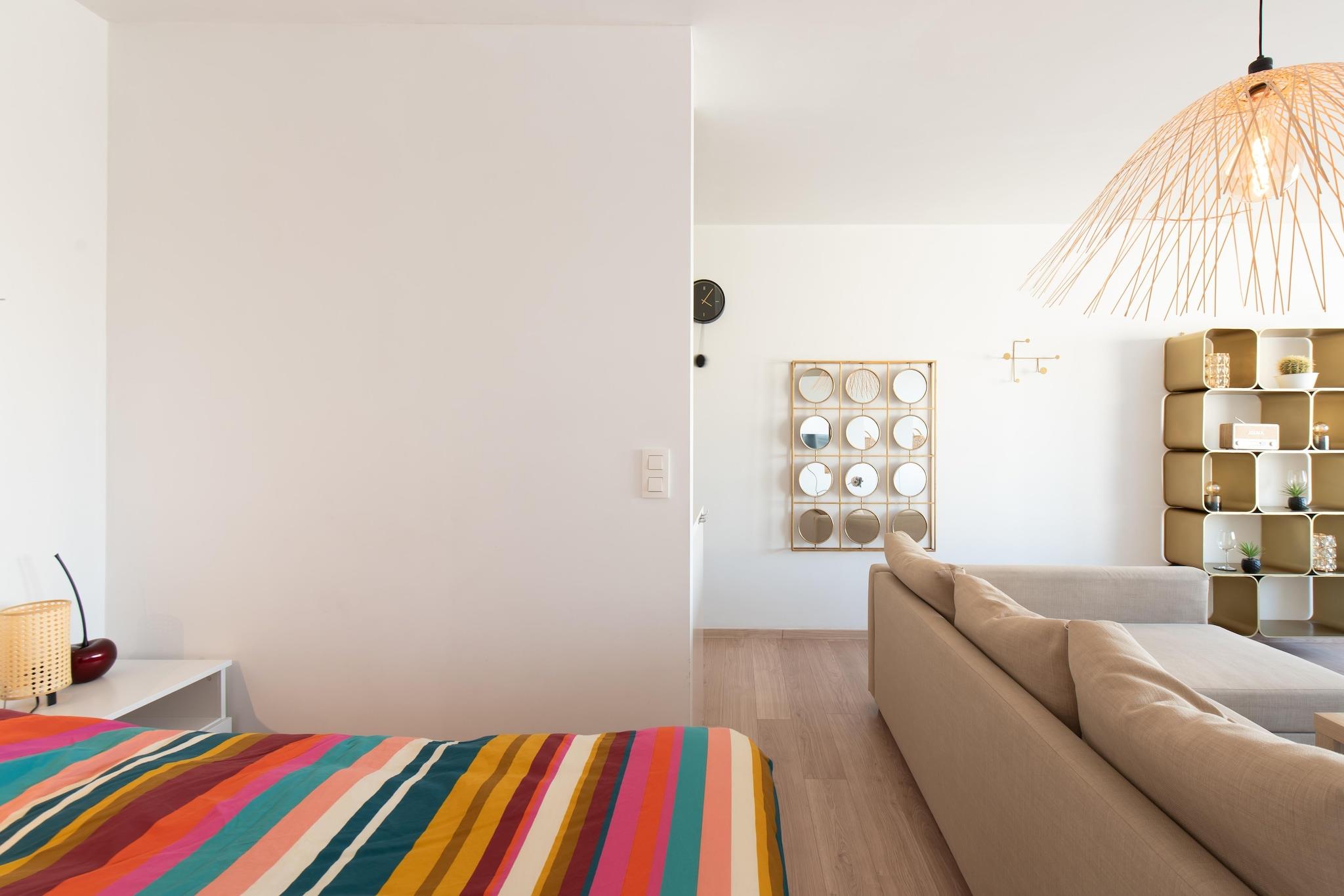 Studiet har en dobbeltseng med dyne til to gæster i soveområdet og en sovesofa i stuen med plads til to ekstra gæster. Studiet er røgfrit, kæledyrsfrit og designet uden tæpper for at give et renere og allergivenligt miljø. For ekstra bekvemmelighed er bygningen tilgængelig for kørestolsbrugere og har en rummelig elevator med plads til fire gæster. Gæsterne kan nyde digital underholdning med et digitalt tv og en optager og holde sig forbundet med Wi-Fi i hele studiet. Studioet tilbyder delvis havudsigt fra stuen, hvilket skaber fredelige og maleriske omgivelser. Området omkring ejendommen er roligt og tilbyder rolige omgivelser, hvor gæsterne kan slappe af. Gæsterne kan nyde de nærliggende strande eller udforske lokalområdet med nem adgang til offentlige transportmuligheder såsom busser og tog. Studiets beliggenhed sikrer bekvemmelighed for dem, der ønsker at udforske regionen, samtidig med at det tilbyder et fredeligt tilflugtssted. For dem, der rejser i bil, er der parkering i nærheden, hvilket gør det nemt for gæsterne at komme ind og ud. Studioet har et fuldt udstyret åbent køkken med kombiovn, elkedel, brødrister, blender, køleskab, fryser, opvaskemaskine og induktionskogeplade til at tilberede måltider. For kaffeelskere er der en Nespresso-maskine til den perfekte brygning. Badeværelset er moderne og har bruseniche, toilet og enkelt håndvask for ekstra bekvemmelighed. Studiets layout maksimerer pladsen med et rent, enkelt design og praktiske funktioner, der gør det ideelt til et behageligt ophold.
