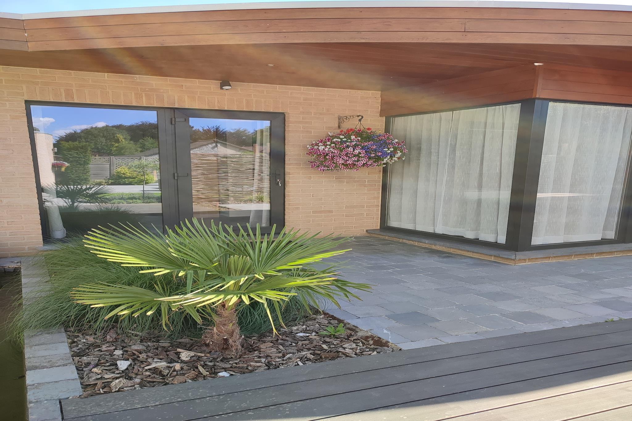 Stueetage: (Stue(Fjernsyn, spisebord, sofahjørne), Køkken(komfur, kaffemaskine, ovn, mikrobølgeovn), soveværelse(dobbeltseng), soveværelse(dobbeltseng), badeværelse(bruser, håndvask)) terrasse, grill, parkering