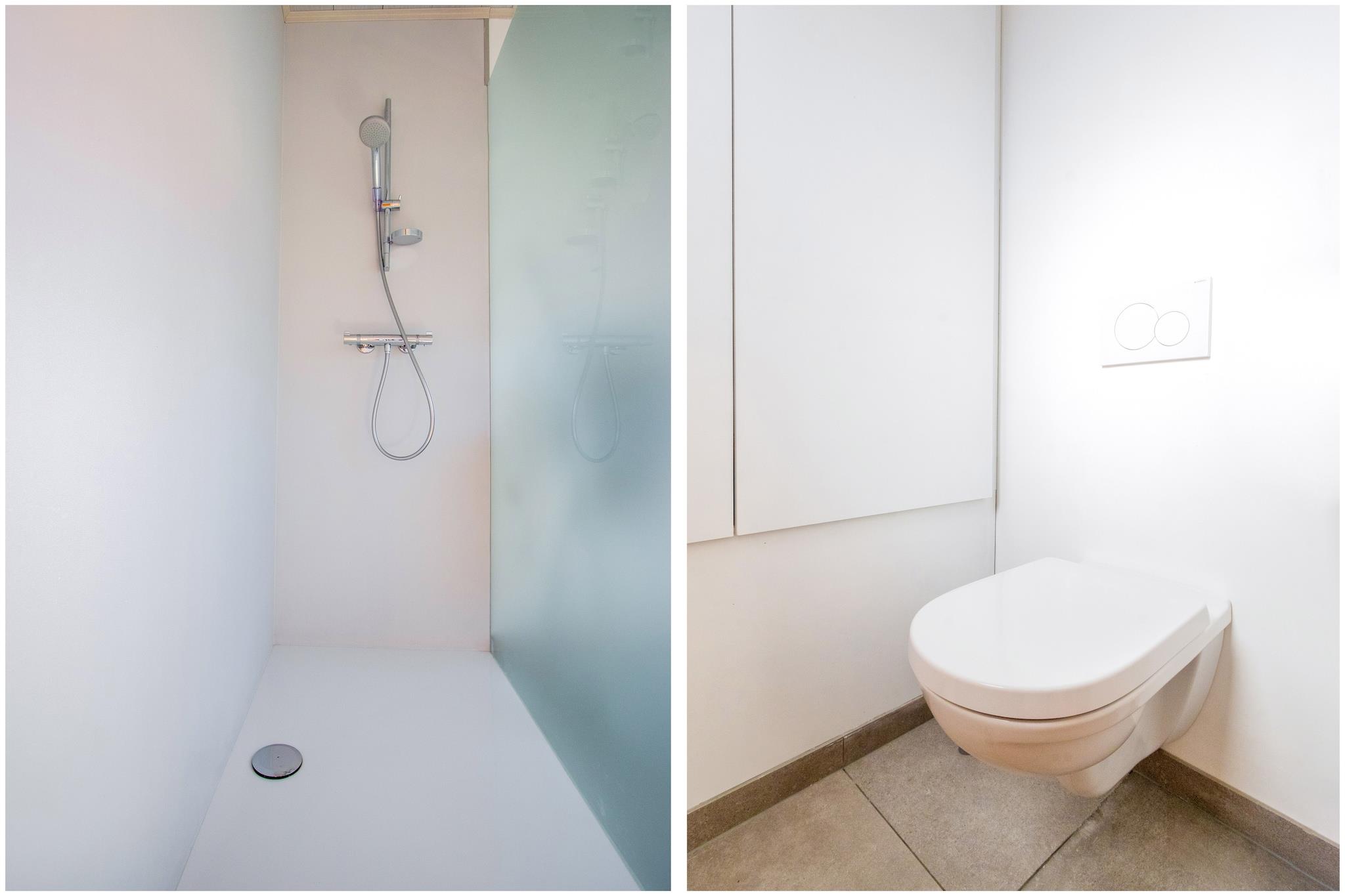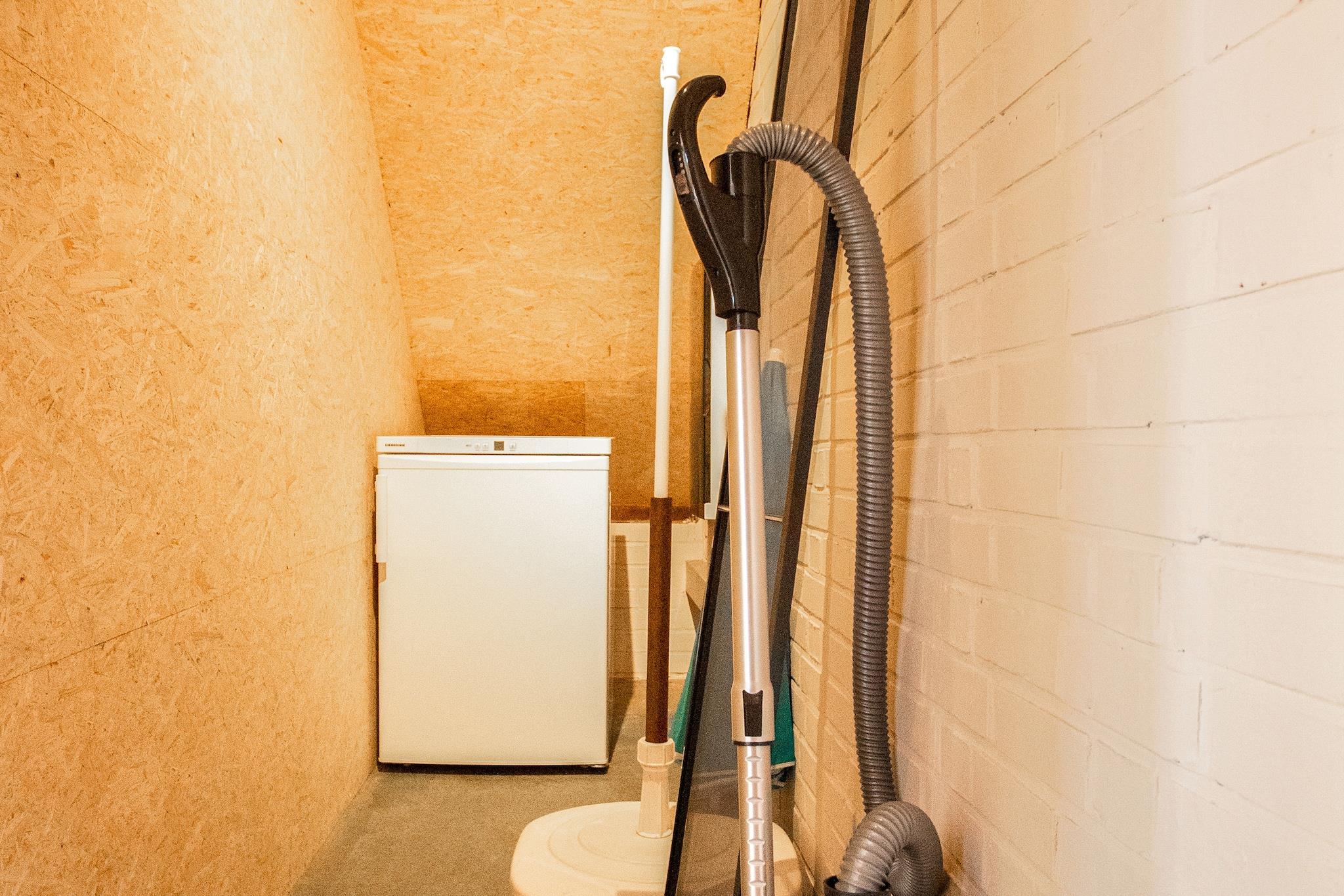 På 1. etage: (gang(toilet), åbent køkken(elkedel, kaffemaskine(kaffepude), ovn, mikrobølgeovn, opvaskemaskine ), stue / spisestue(Fjernsyn, spisebord, sofahjørne, radio), soveværelse(2x enkeltseng), badeværelse(bruser, håndvask), pulterkammer) tagterrasse, cykelopbevaring, havemøbler