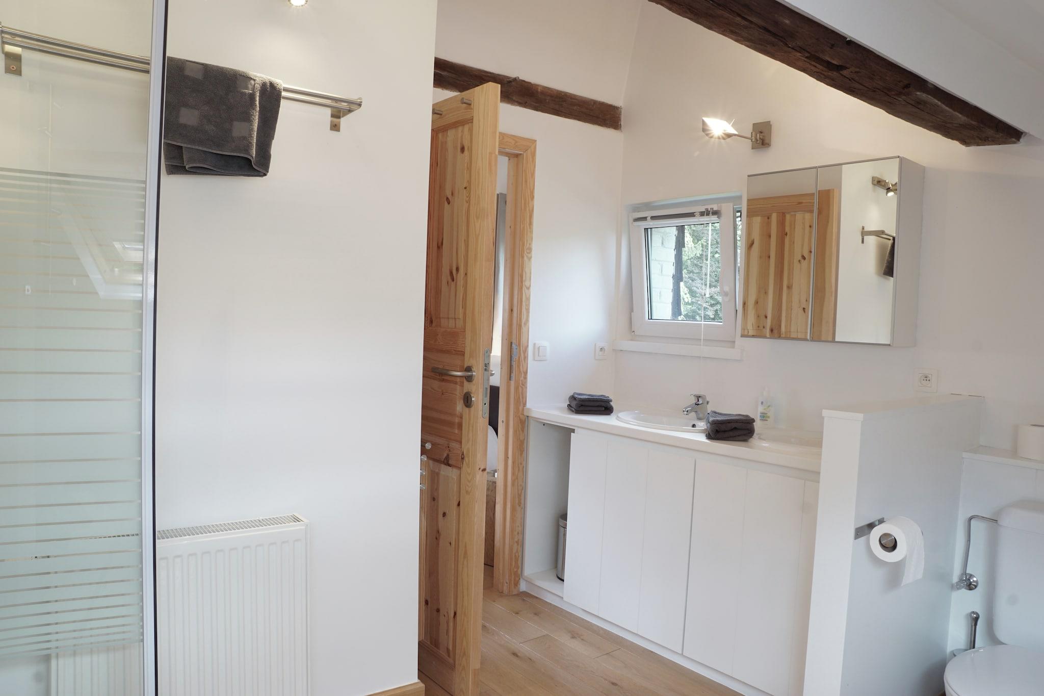 Beliggende mellem skov og flod tilbyder denne storslåede Ardenner-residens et fredeligt tilflugtssted for op til 14 gæster. Med syv rummelige soveværelser blander huset historisk karakter med moderne luksus. Ejeren har bevaret en rig familiearv gennem blød belysning og hyggelige detaljer. For større grupper kan ejendommen kombineres med et tilstødende sommerhus, hvilket gør det perfekt til sammenkomster eller retræter. Denne fleksibilitet sikrer en eksklusiv oplevelse, der forbliver intim og giver en unik atmosfære af varme og naturlig inspiration gennem hele opholdet. Stueetagen fungerer som det sociale hjerte med en stor stue, formel spisestue og et dedikeret billardrum. En hyggelig tv-stue tilbyder en rolig krog, mens det fuldt udstyrede køkken håndterer alle cateringbehov. Soveværelserne er fordelt på de øverste etager, hvor værelser som "The Orchard" og "The Forest" tilbyder private brusebadeværelser. "Valley"-suiten har en privat balkon, mens øverste etage huser "Meadow"- og "Stream"-suiterne. Denne indretning sikrer, at alle gæster nyder moderne bekvemmeligheder med eget badeværelse, samtidig med at charmen ved en traditionel landejendom bevares. Udenfor tilbyder en 24 hektar stor indhegnet have total afsondrethed. En blid bæk og dam skaber et naturligt lydspor for ejendommen. Gæsterne kan nyde den private petanquebane eller spise på den overdækkede terrasse uanset vejret. Med parkering til seks biler er ejendommen perfekt indrettet til store grupper. Uanset om du vandrer på lokale stier eller slapper af ved vandet, repræsenterer dette hjem det bedste af Ardennernes gæstfrihed, hvor skovens skønhed møder raffineret komfort i virkelig rolige omgivelser.