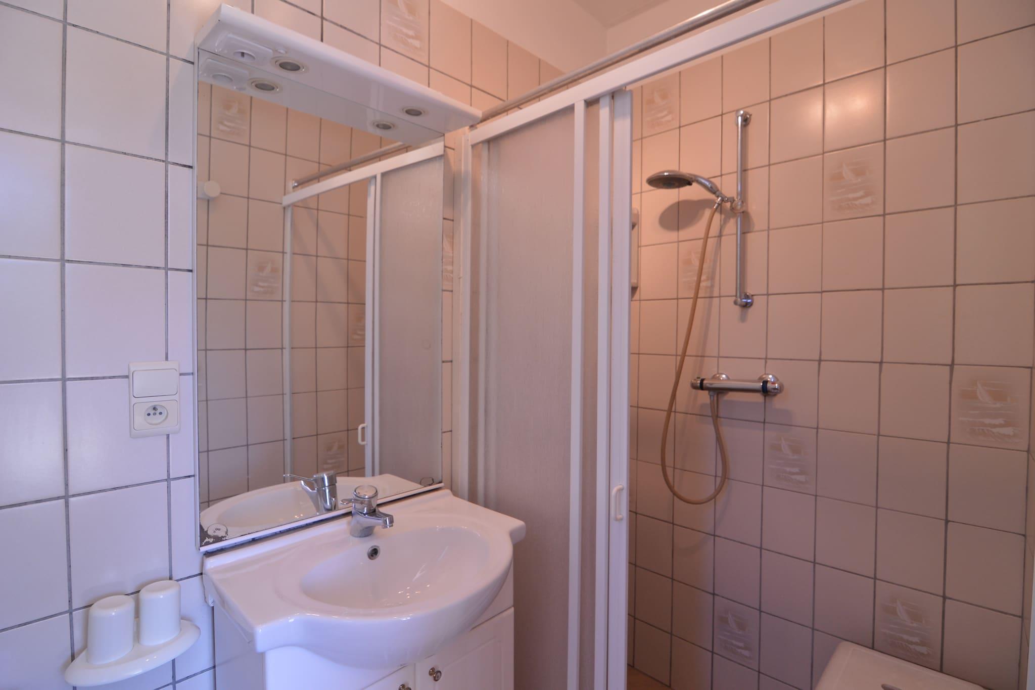 De ruimte is een stuk kleiner dan de fotos doen lijken, maar plek genoeg voor 2. Helaas geen zetel aanwezig, wel een tv.