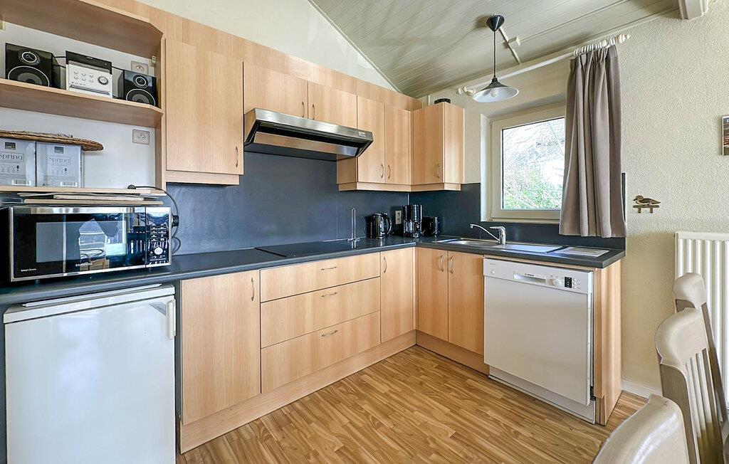 Lad blikket vandre gennem de store vinduer over regionens bølgende bakker. Den lyse, åbne opholdsstue byder på masser af plads til at slappe af sammen. Sæt jer godt til rette i sofaerne og nyd udsigten eller saml jer omkring spisebordet for at planlægge jeres næste eventyr. Det tilstødende køkken er funktionelt udstyret og tilbyder rigelig plads til at tilberede måltider og starte eller afslutte dagen sammen. Brug den behagelige atmosfære som en skøn oase efter jeres udflugter i regionen.