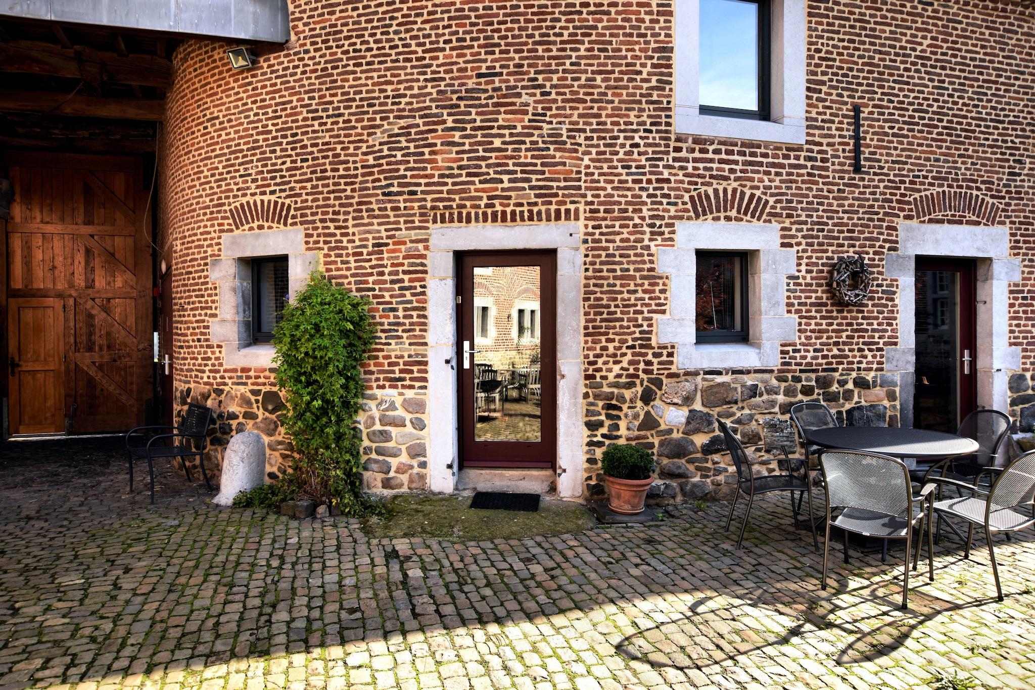 Domstolen i Aachen, hvis ældste dele dateres fra 1671, er blevet restaureret, og interiøret er omdannet til en række ferieboliger. Retten er beliggende i den idylliske landsby Richelle, lige over den belgiske grænse ved floden Meuse. Ud over selve Retten i Aachen, hvor du vil bo, har Richelle mange andre attraktioner, herunder slotte og kirker. I Richelle og de andre omkringliggende landsbyer er tegn på religion ikke svært at finde. Ardennerne og Voer-regionen er nemme at nå, hvor du finder masser af vidunderlige vandreruter. Er du mere en kulturel person? Intet problem. Udover det faktum, at Richelle kun er 15 km syd for Maastricht, er også byerne Liège og Aachen i nærheden. Liège har været kendt af industrien, men i dag er det blevet en af de mest fashionable byer i Europa. Hver søndag aften, ved bredden af Meuse, finder den berømte Marché de la Batte sted. Det er det største marked i Europa. Også Montagne de Bueren er et besøg værd, fordi det er en af Liege's mest bemærkelsesværdige gader. Det er en trappe fra 1881 og danner en forbindelse mellem citadellet og den gamle bydel. Det tæller 374 trin.