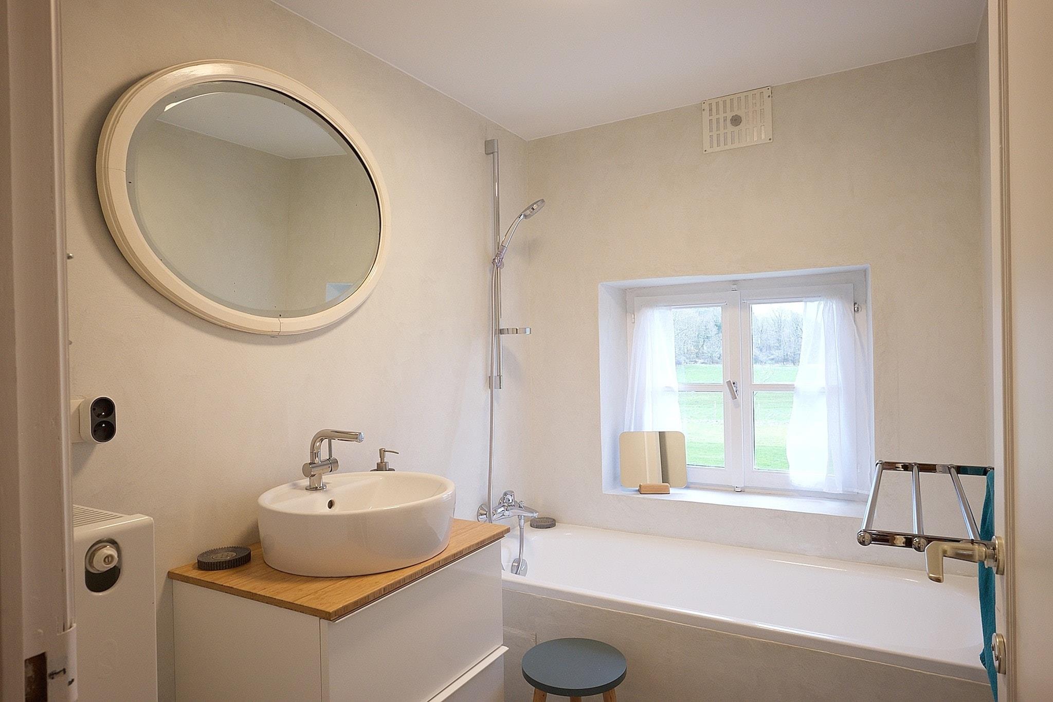 Duft til roserne og slap af i dette charmerende feriehus i Rochefort. Med tre overdækkede terrasser og en indhegnet have, byder den på masser af fredfyldte steder at slappe af og nyde naturen. Bemærk venligst, aktiviteter såsom fester, høj musik eller fyrværkeri er ikke tilladt, dette er et tilflugtssted for dem, der søger fred og ro ved floden og skovklædte omgivelser. Udforsk nærliggende attraktioner såsom det historiske slot Bouillon, med dets fangehuller og naturskønne udsigter, og den imponerende Abbaye d'Orval, der ligger nær grænsen mellem Belgien og Frankrig. Naturelskere vil også sætte pris på hulen Lorette-Rochefort og de berømte Grottes de Han, begge inden for 10 km. Den nærmeste restaurant ligger kun 1,6 km væk, og et supermarked er kun en kort køretur. Besøg det nærliggende slot Ciergnon, hjemsted for Belgiens kongelige familie, for at få et glimt af kongelige. Indenfor er boligen designet til komfort og varme, med terrasser med smuk udsigt, der inviterer dig til at nyde den fredelige atmosfære.