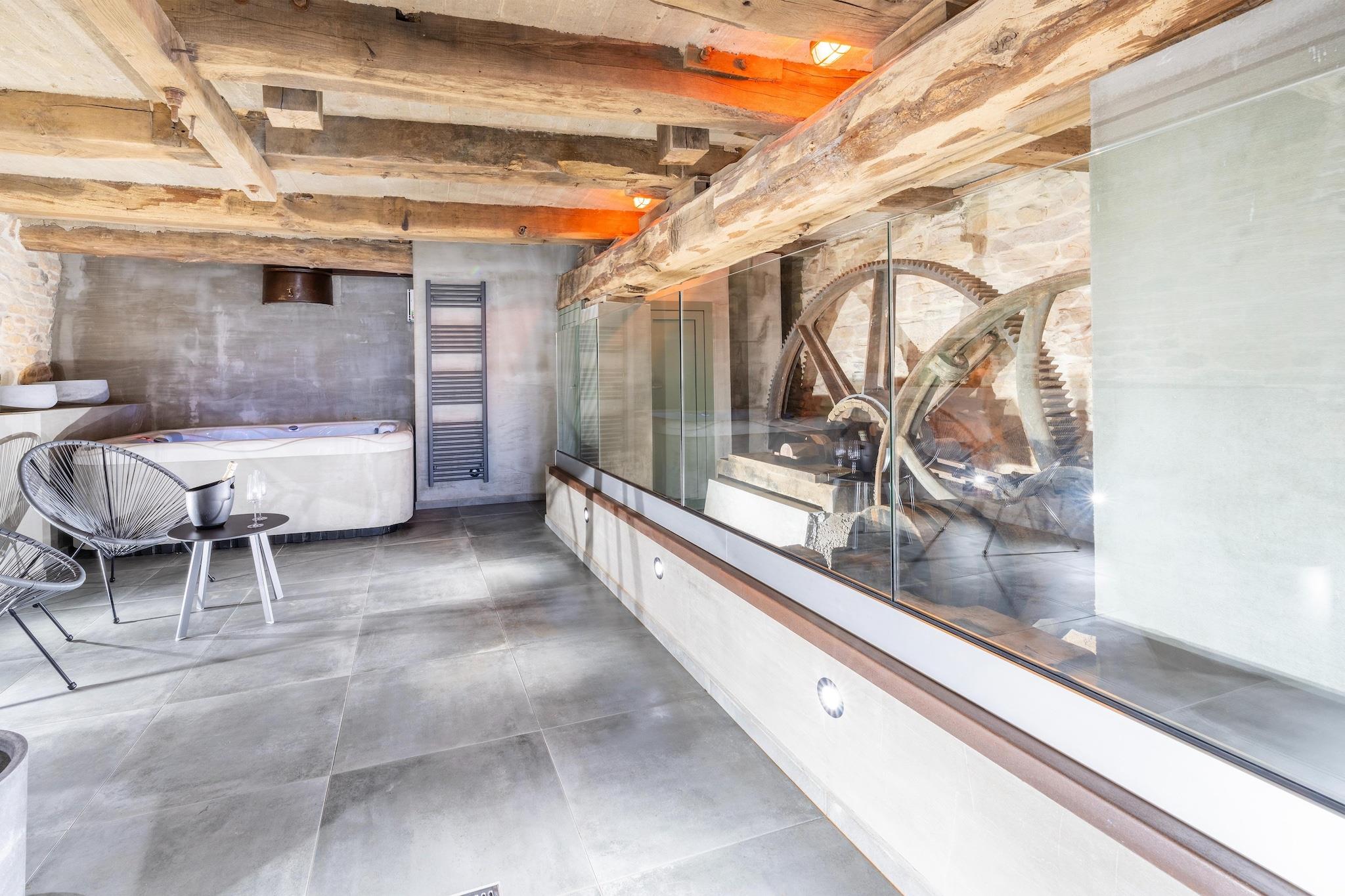 Velkommen til din oase af fred i hjertet af Sainte-Cécile, et smukt renoveret feriehus, der perfekt kombinerer moderne komfort og tidløs charme. Denne omhyggeligt renoverede ejendom tilbyder en varm og indbydende atmosfære, ideel til par, der søger en fredelig ferie med et strejf af luksus. Gå ned ad trappen og oplev din oase af velvære. Slap af i den private sauna eller smelt stress væk i det luksuriøse boblebad, perfekt til at lindre trætte muskler efter en dag med gåture eller sightseeing. I stueetagen finder du en hyggelig stue med et komfortabelt siddeområde, ideelt til at slappe af efter en dag med udforskning. Tekøkkenet er udstyret med en vask, køleskab og mikrobølgeovn. Det rummelige soveværelse har en blød dobbeltseng (180 x 200 cm, dobbeltdyner) og et badekar til et øjebliks intim afslapning. Et moderne badeværelse med en stilfuld bruseniche fuldender stueetagen og tilbyder alle hjemmets bekvemmeligheder i elegante omgivelser. Huset kombinerer ro og bekvemmelighed i en af regionens mest maleriske landsbyer. Uanset om du er her for at slappe af eller udforske, er dette smukke hjem i Sainte-Cécile din perfekte feriedestination.