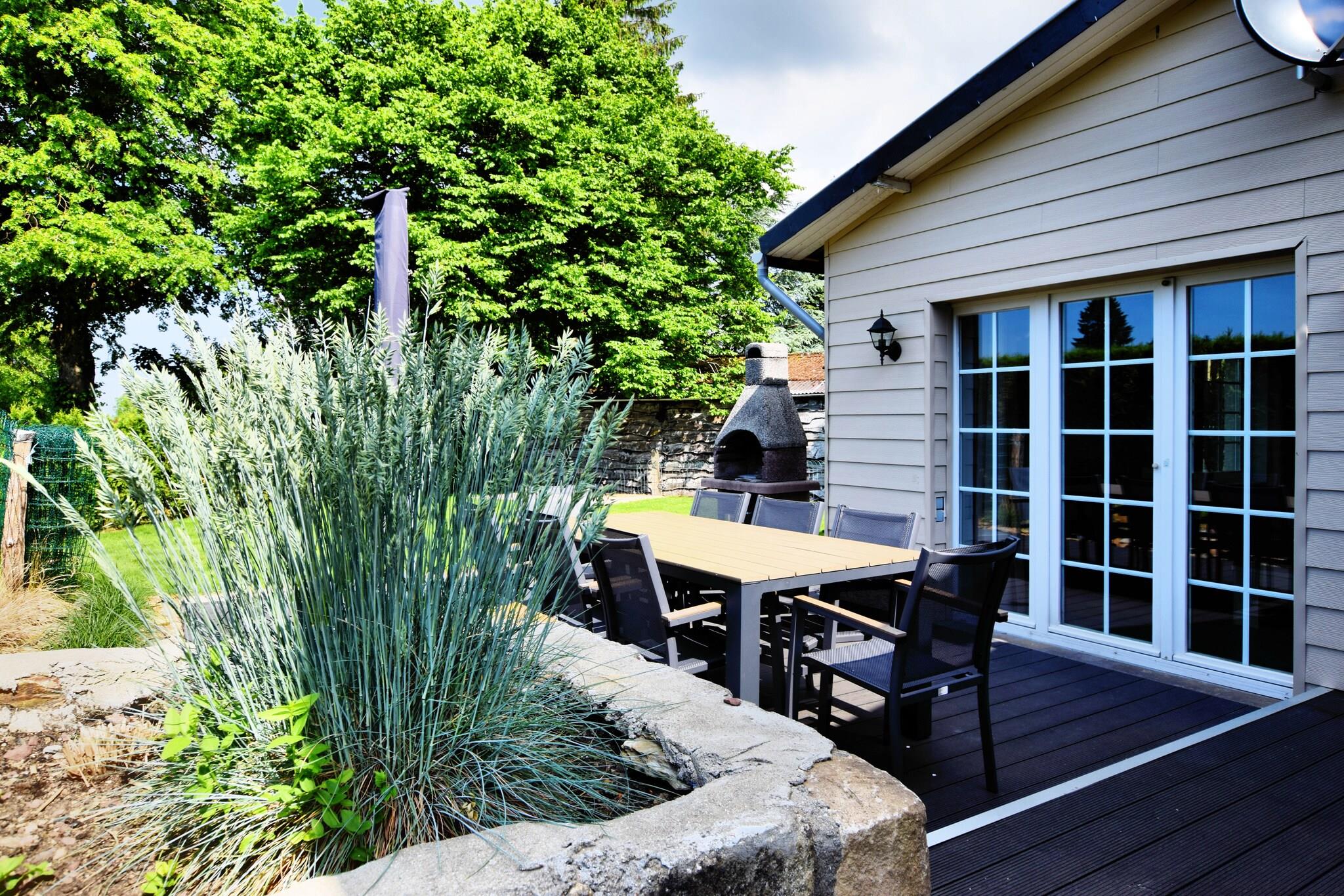 Denne indbydende villa i Samrée, La Roche-en-Ardenne tilbyder en fredfyldt flugt for familier eller små grupper. Beliggende i hjertet af Ardennerne, kun få skridt fra skovstier og tæt på Hauts Marais de Bellemeuse, en naturvandring gennem tørvemoser og skove. Gæster kan også udforske Château Féodal de La Roche, sejle i kajak ved Barrage de Nisramont eller vandre den panoramiske Celtic Trail of Berismenil, alt inden for rækkevidde. Villaen har fire soveværelser, herunder to med en-suite badeværelser, og en rummelig stue/spisestue med tv og komfortable siddepladser. Det åbne køkken er fuldt udstyret med gaskomfur, ovn, mikroovn og opvaskemaskine. Et dedikeret afslapningsområde omfatter et boblebad, dampbruser, infrarød sauna og traditionel sauna for ultimativ komfort. Udendørs kan du nyde en privat terrasse, indhegnet have, grill og havemøbler, perfekt til at slappe af efter en dag med eventyr. Nærliggende spisemuligheder omfatter L'Asphodèle, kun 1 km væk, kendt for sit raffinerede belgiske køkken, og La Fourchette Paysanne
