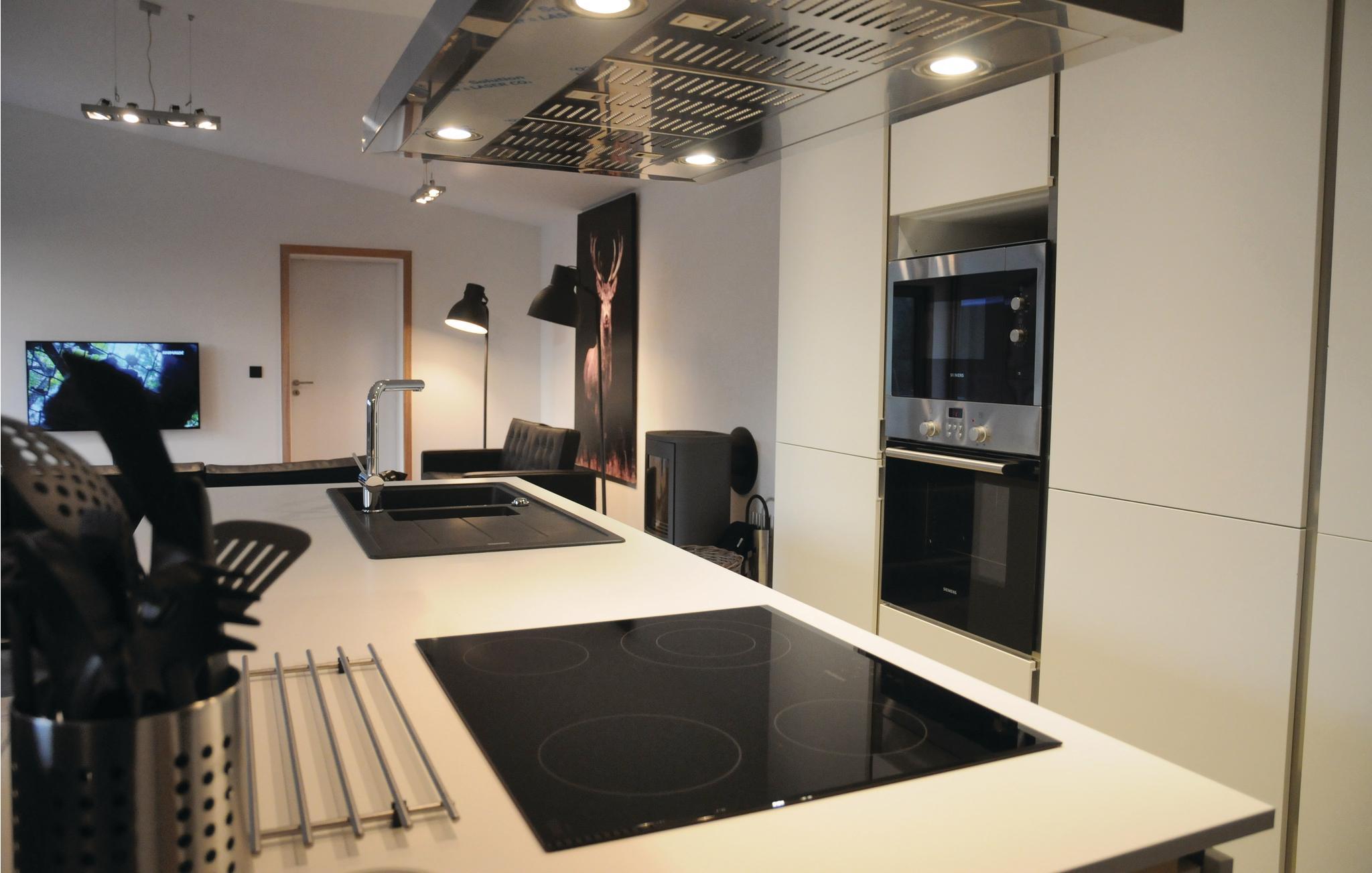 Møblerne er komfortable og moderne. Når I ankommer, vil I blive imponeret over de designede havemøbler og gasgrillen samt stuen med brændeovn, hjemmebiograf og elegante møbler. Det åbne køkken med kogeøen er udstyret med alle husholdningsapparater. Soveværelserne til højre er smagfuldt indrettet med senge (1,60 m brede). Det fjerde værelse er indrettet med en køjeseng og en enkeltseng (2,00 m og 0,90 m bred). Højdepunktet i dette smukke hus er den indendørs pool med bad, toilet og sauna.