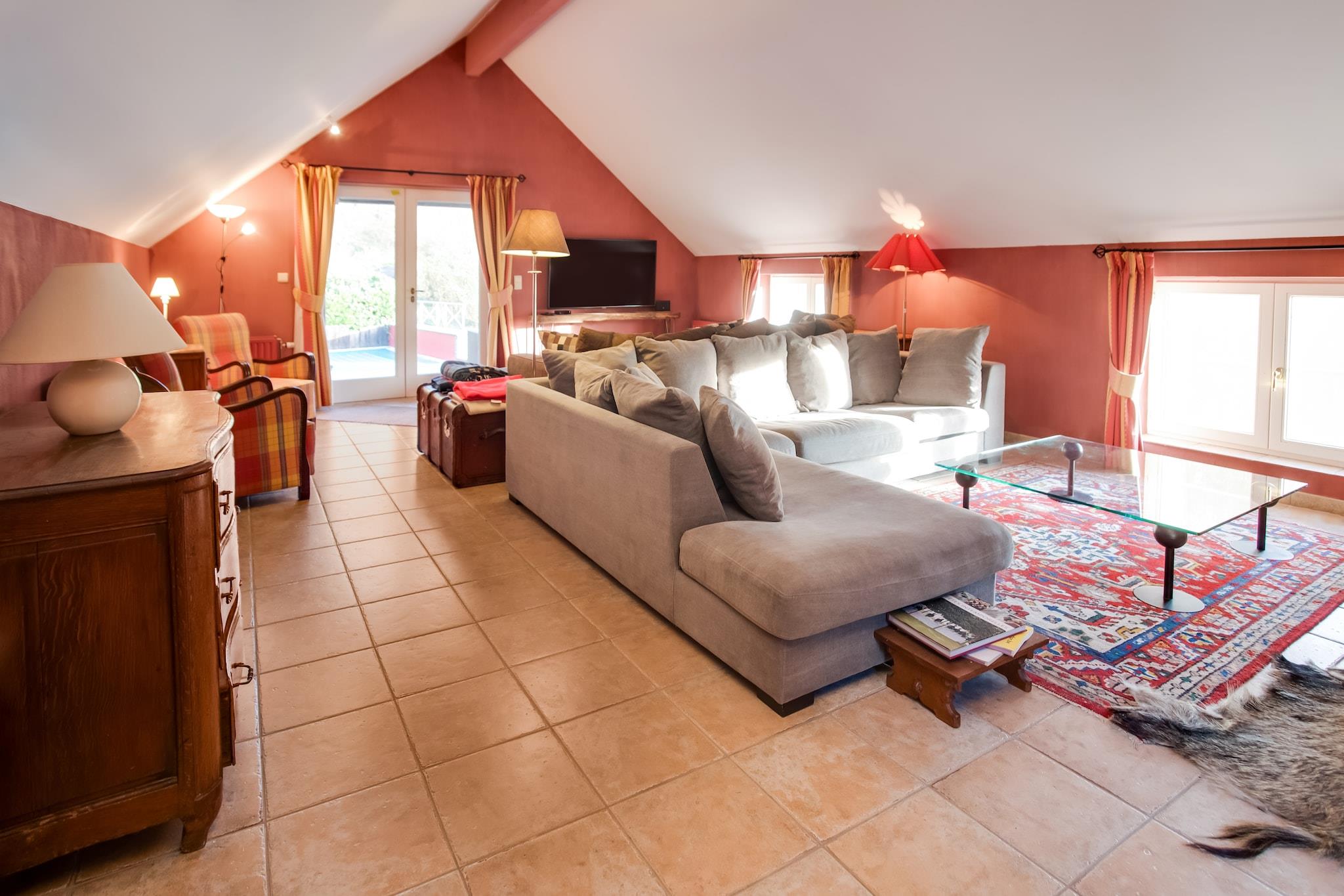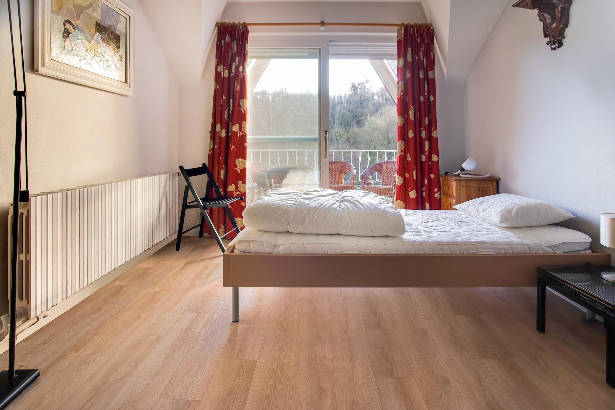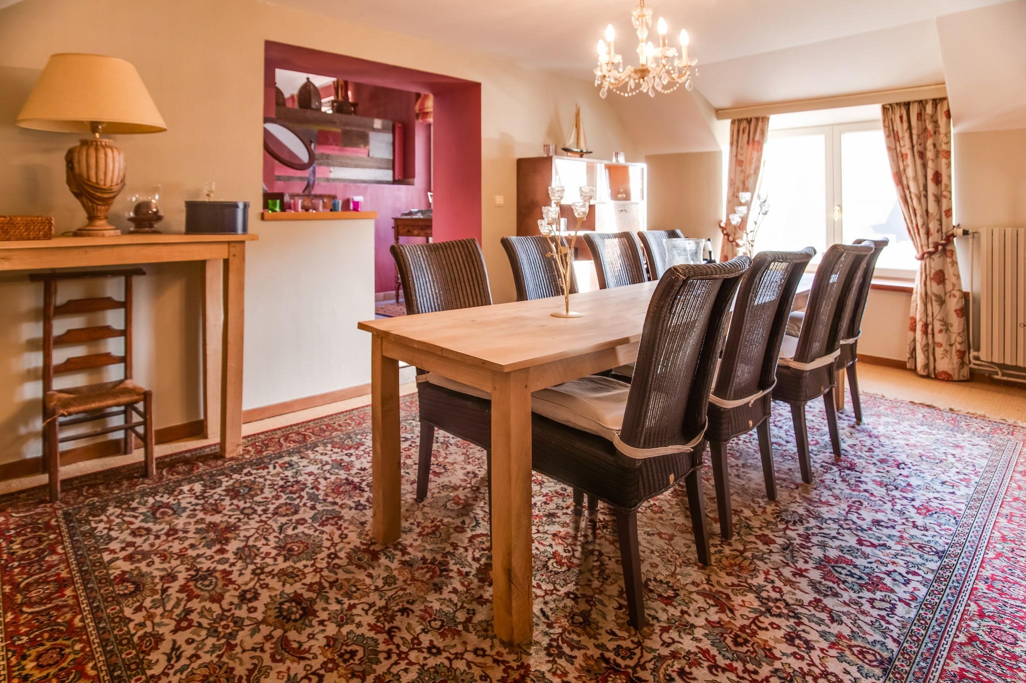 Beliggende i hjertet af Vallée de la Molignée, er dette 5-værelses feriehus i Sosoye (Anhée) perfekt til familier eller grupper på op til 14 gæster. Nyd en privat opvarmet swimmingpool, infrarød sauna og møbleret have med loungesæt og grill, ideel til at slappe af efter en dag med udforskning. Kun 30 m fra La Molignée-floden og 50 m fra skoven er boligen omgivet af natur. Restauranter er inden for gåafstand, og Mettet (13 km) og Anhée (9 km) tilbyder butikker og service. For dagsture, besøg Dinant, Profondeville, eller nyd vandsport og vandreture i nærheden. Indvendigt har boligen et modulært køkken, pejs og et opholdsrum med airhockey. Der er også en barneseng, høj stol og rigelig parkering. Bemærk venligst: ingen grupper under 21 år, ingen studenter- eller polterabend, og der gælder stilletider. Et stilfuldt og fredfyldt Ardennerne-retræte.