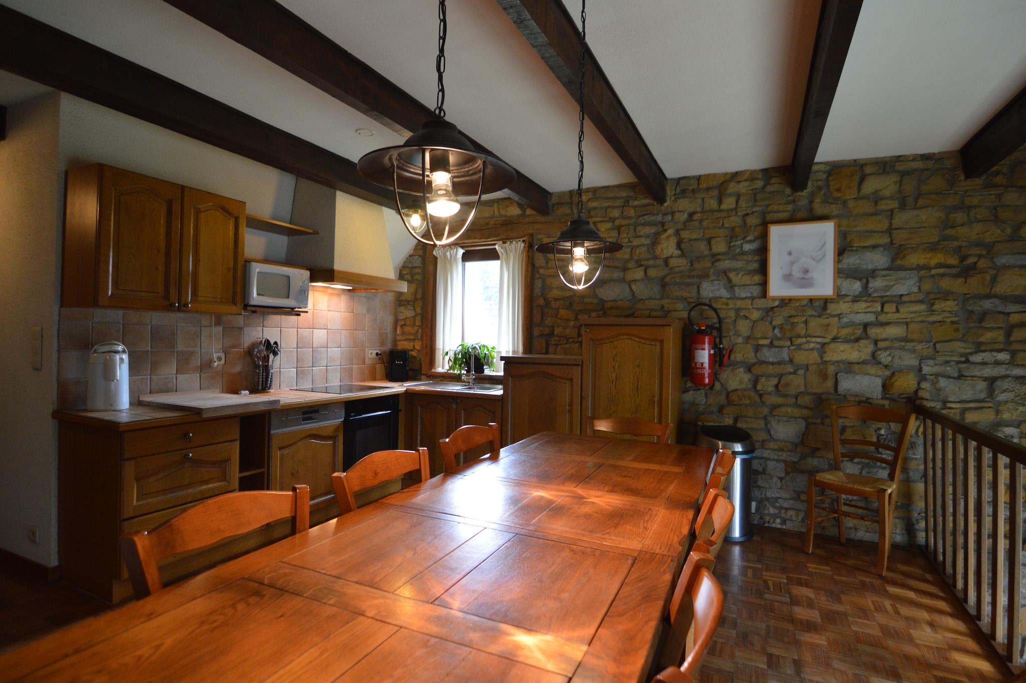 Dette ekspansive feriehus i Sprimont-Ogné er perfekt til store familier eller grupper, der søger komfort og plads i hjertet af Belgiens Liège-region. Kun 1 km fra byens centrum og omgivet af frodigt landskab, tilbyder det nem adgang til kulturelle vartegn som det middelalderlige Château de Franchimont og den fascinerende Grotte de Comblain. Naturelskere vil nyde vandreture i nærliggende skove eller besøge dyreparken Le Monde Sauvage i Aywaille. Fordelt på tre etager har hjemmet ti soveværelser, fem badeværelser og flere opholds- og spiseområder. De to køkkener er fuldt udstyret med ovne, grill, mikrobølgeovne og opvaskemaskiner - ideel til gruppemåltider. Underholdningen er dækket af kabel-tv, dvd-afspillere og stereoanlæg, mens centralvarme og private terrasser sikrer komfort året rundt. Udendørs kan gæsterne nyde en indhegnet have, grill, dam og legeredskaber, med rigelig parkering til rådighed. Sprimont tilbyder fremragende spisning inden for gåafstand. Nyd raffineret belgisk køkken på Il Calice, rustik charme på La Marelle eller italienske smagsoplevelser på Il Mulino. Uanset om du udforsker grotter, tager tee på Golf de Gomzé-Andoumont eller slapper af på terrassen, er denne ejendom en perfekt base for dit Ardenn-eventyr.