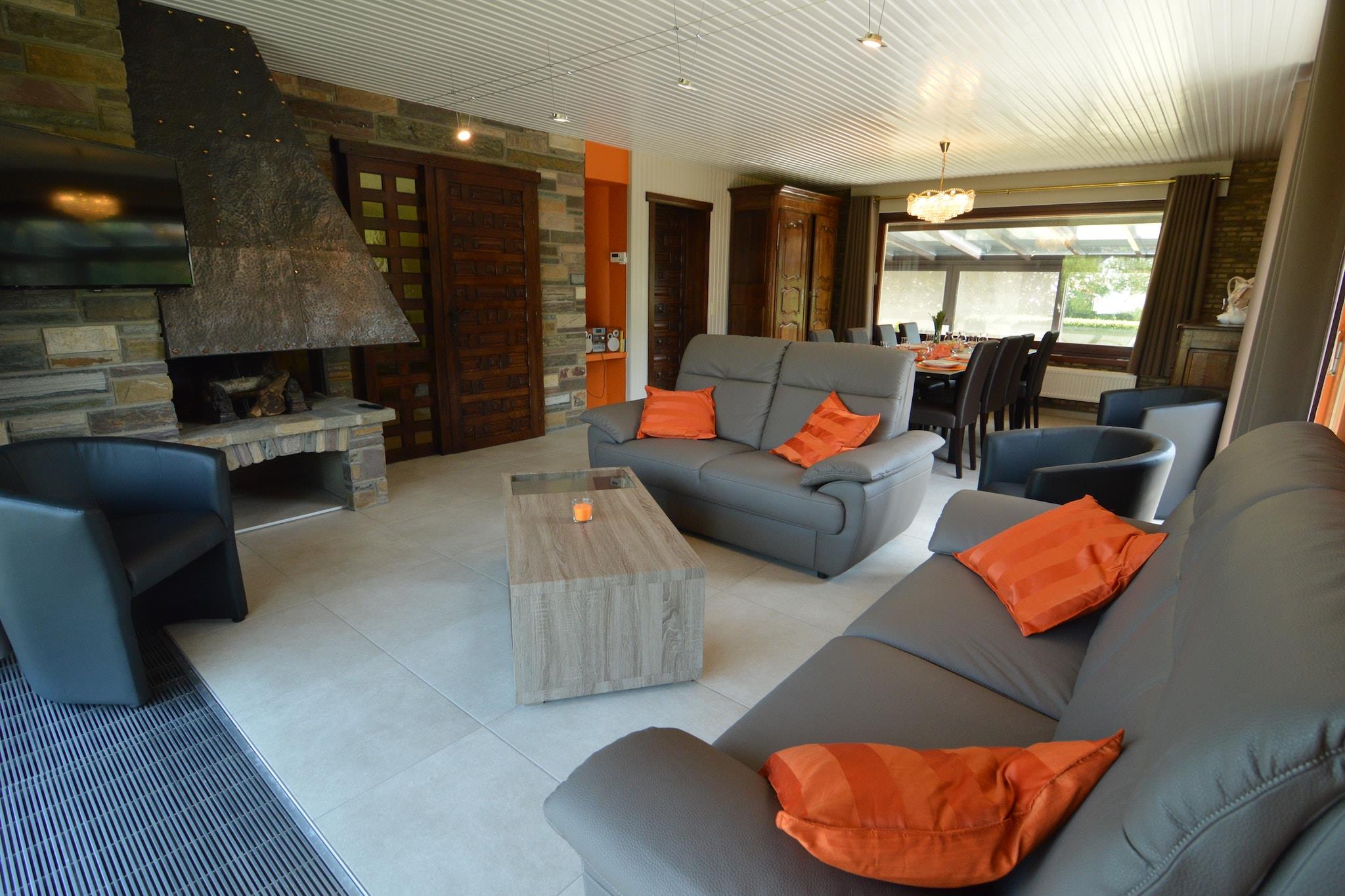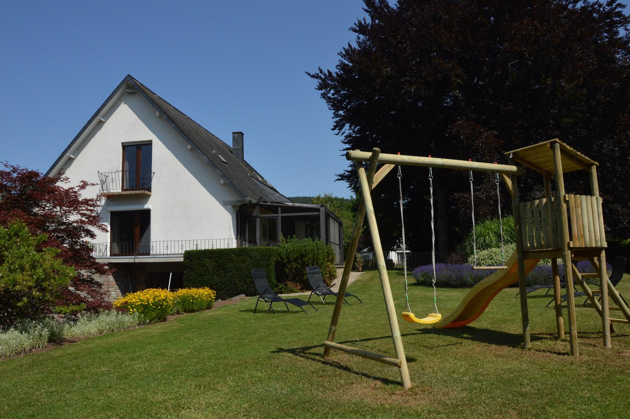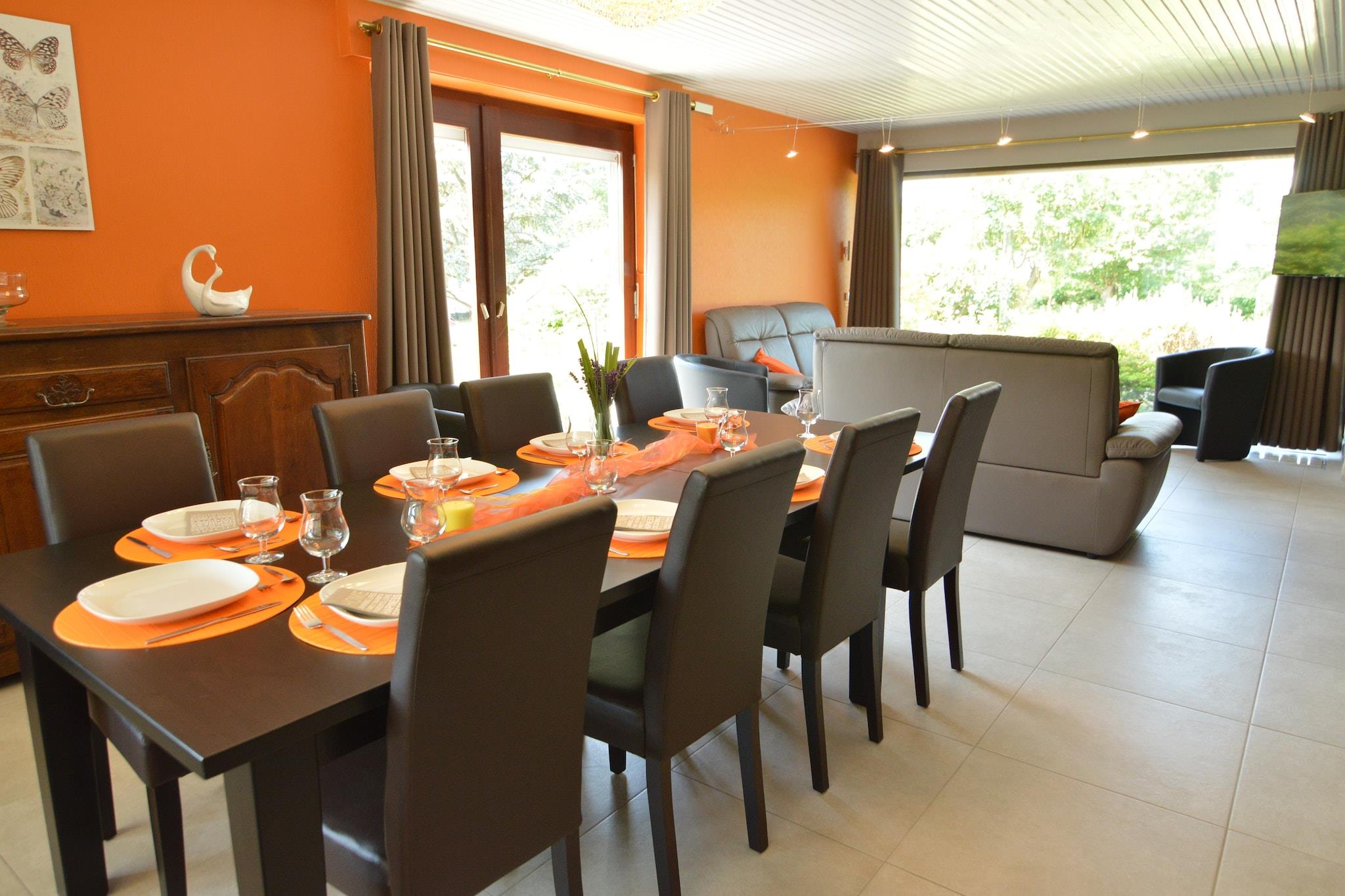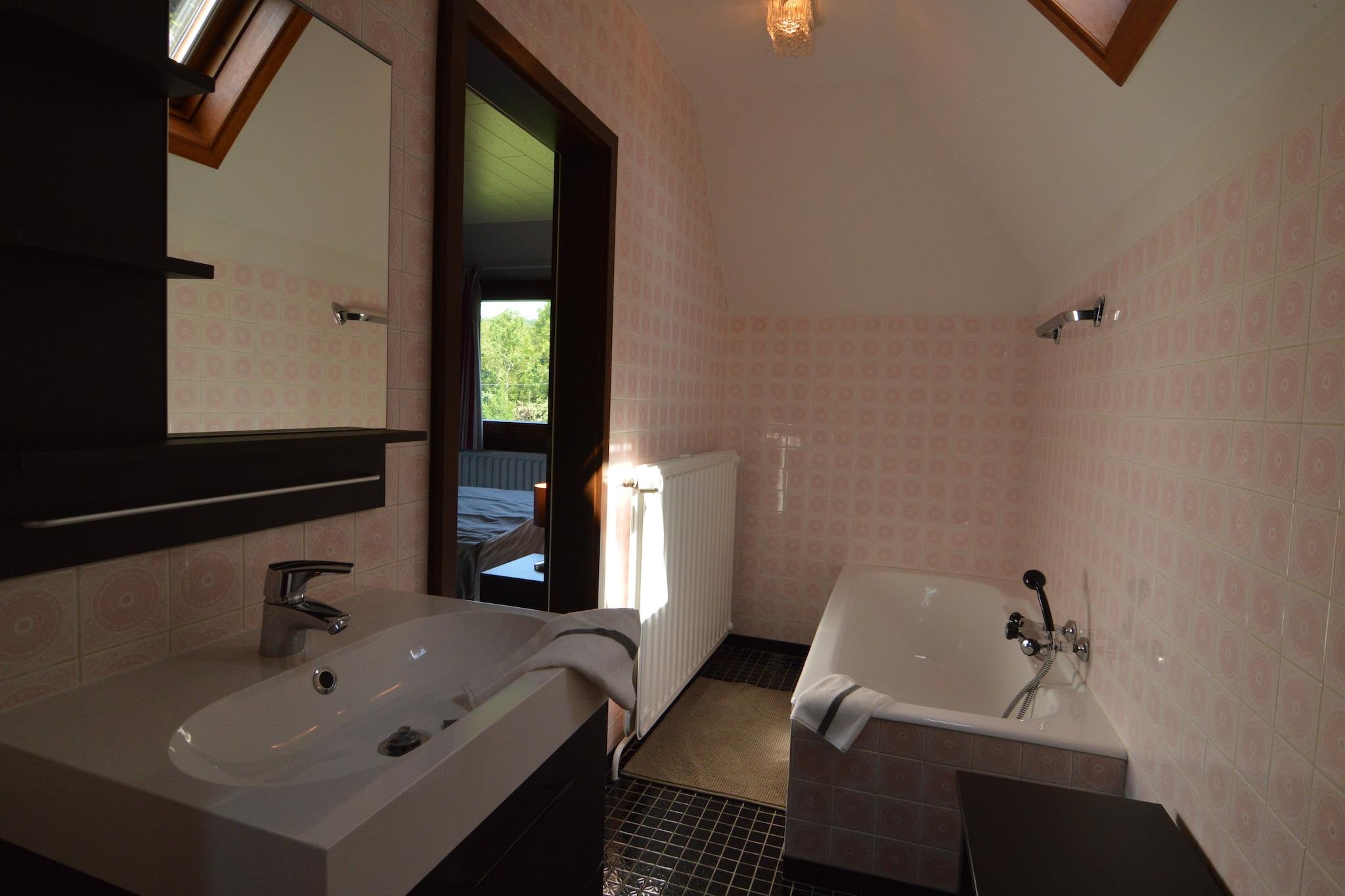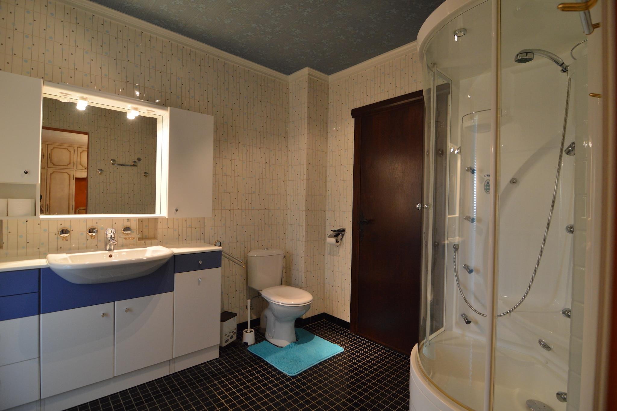 Beliggende i Stavelot, denne villa med 4 soveværelser er perfekt til op til 9 gæster, og tilbyder et fredeligt familietilflugtssted i hjertet af de belgiske Ardennerne. Hjemmet har en privat have, overdækket terrasse, infrarød sauna og fitnessrum. Et legerum med bordfodbold, gratis WiFi og moderne faciliteter såsom en vaskemaskine sikrer et behageligt ophold. Villaen ligger kun 1 km fra byens centrum og restauranter og 2 km fra lokale butikker. Nærliggende attraktioner omfatter Plopsa Coo, Spa-Francorchamps-kredsløbet og byen Malmedy. En cykelsti kun 400 m væk fører gennem det naturskønne landskab hele vejen til Tyskland. Om vinteren er skiløjperne kun få kilometer væk. Boligen er ikke tilgængelig for ungdomsgrupper eller fester, hvilket sikrer en rolig atmosfære. Parkering er tilgængelig. Et -prisbelønnet ophold for 2021-2024, denne villa blander komfort, natur og familievenlig charme.
