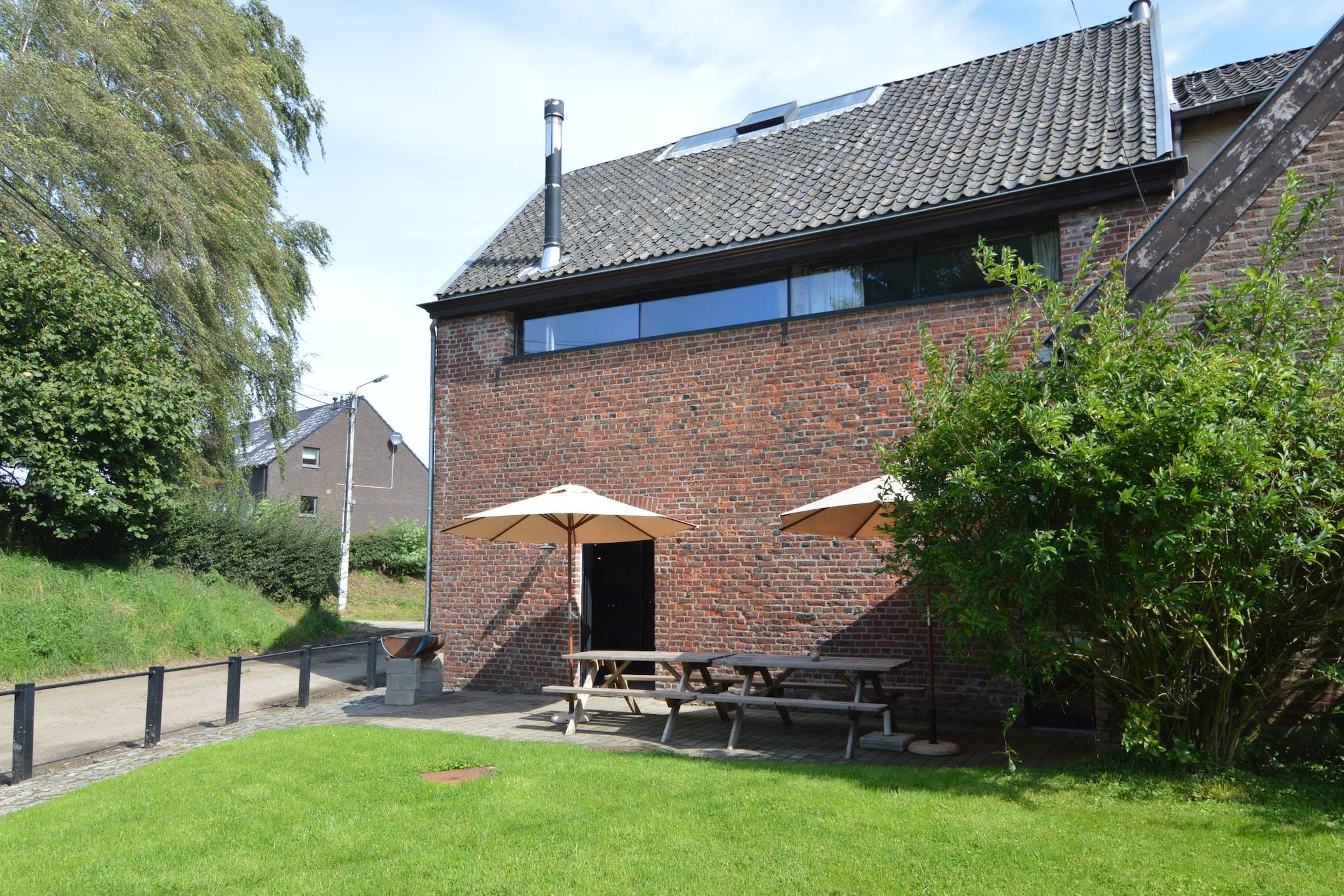 Denne bondegård med 9 soveværelser ligger i Teuvens bukoliske landskab og tilbyder et varmt og rustikt tilflugtssted for op til 24 gæster. Ideel til store familier, genforeninger eller grupperejser, er hjemmet beliggende på en fungerende gård med kalve og heste og har en stor gårdhave, privat terrasse og fælles have med grill og legeredskaber. Indenfor finder du to fuldt udstyrede køkkener, en vinterhave og flere opholds- og spiseområder. Underholdning omfatter WiFi, tv'er, lydsystemer, et klaver og et bordtennisbord. Hjemmet er børnevenligt og tillader op til 2 kæledyr (8EURO/kæledyr/nat). Udforsk nærliggende byer som Liège, Maastricht og Aachen, alle inden for 30 minutters kørsel. Den hollandske grænse ligger kun 20 minutters gang, og Farmersgolf på Green Valley Farms er en sjov lokal aktivitet. Ekstra: – Gratis parkering, Havemøbler & grill, Fredelige landlige omgivelser – Ikke egnet til studenter- eller polterabend