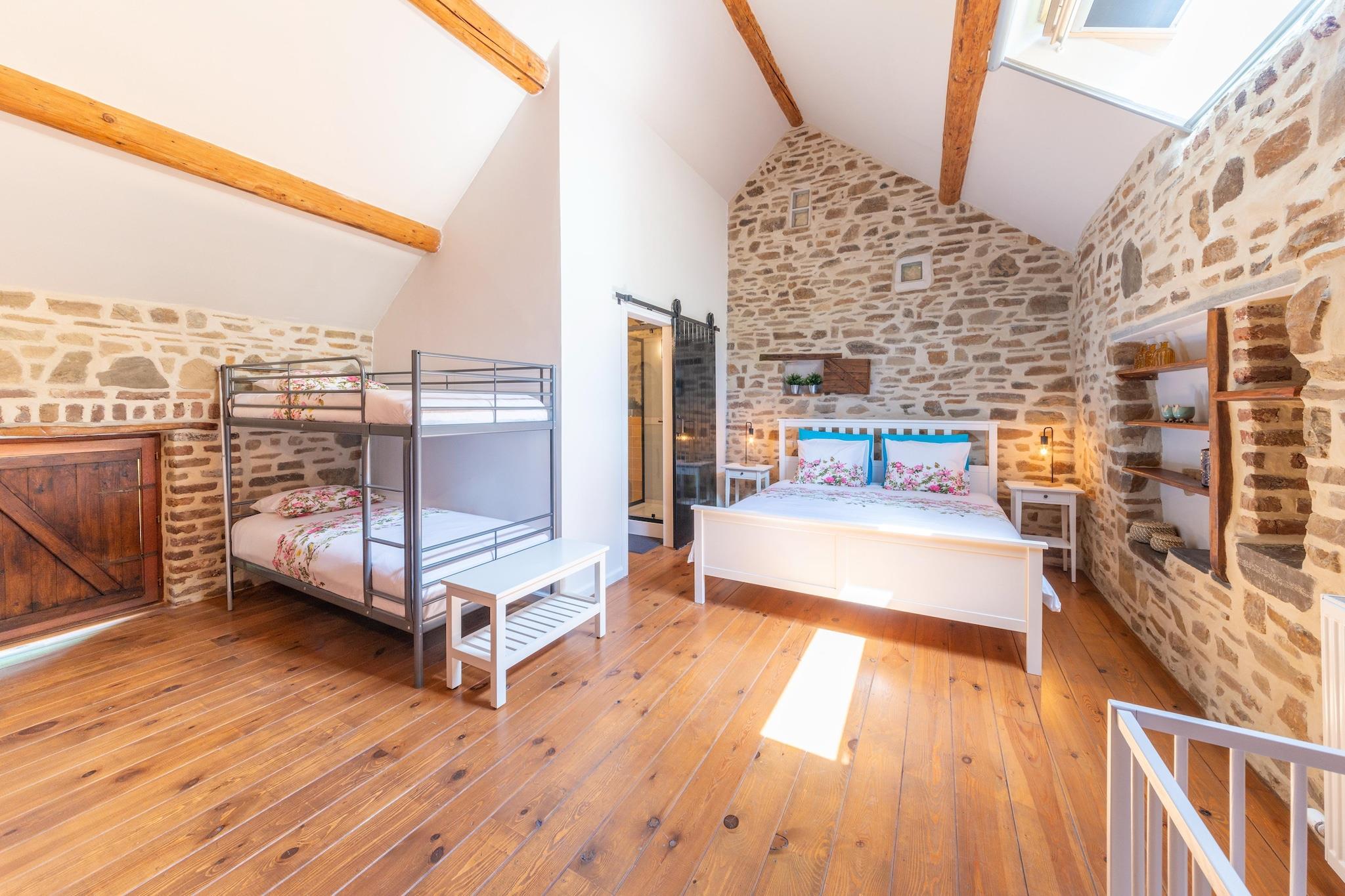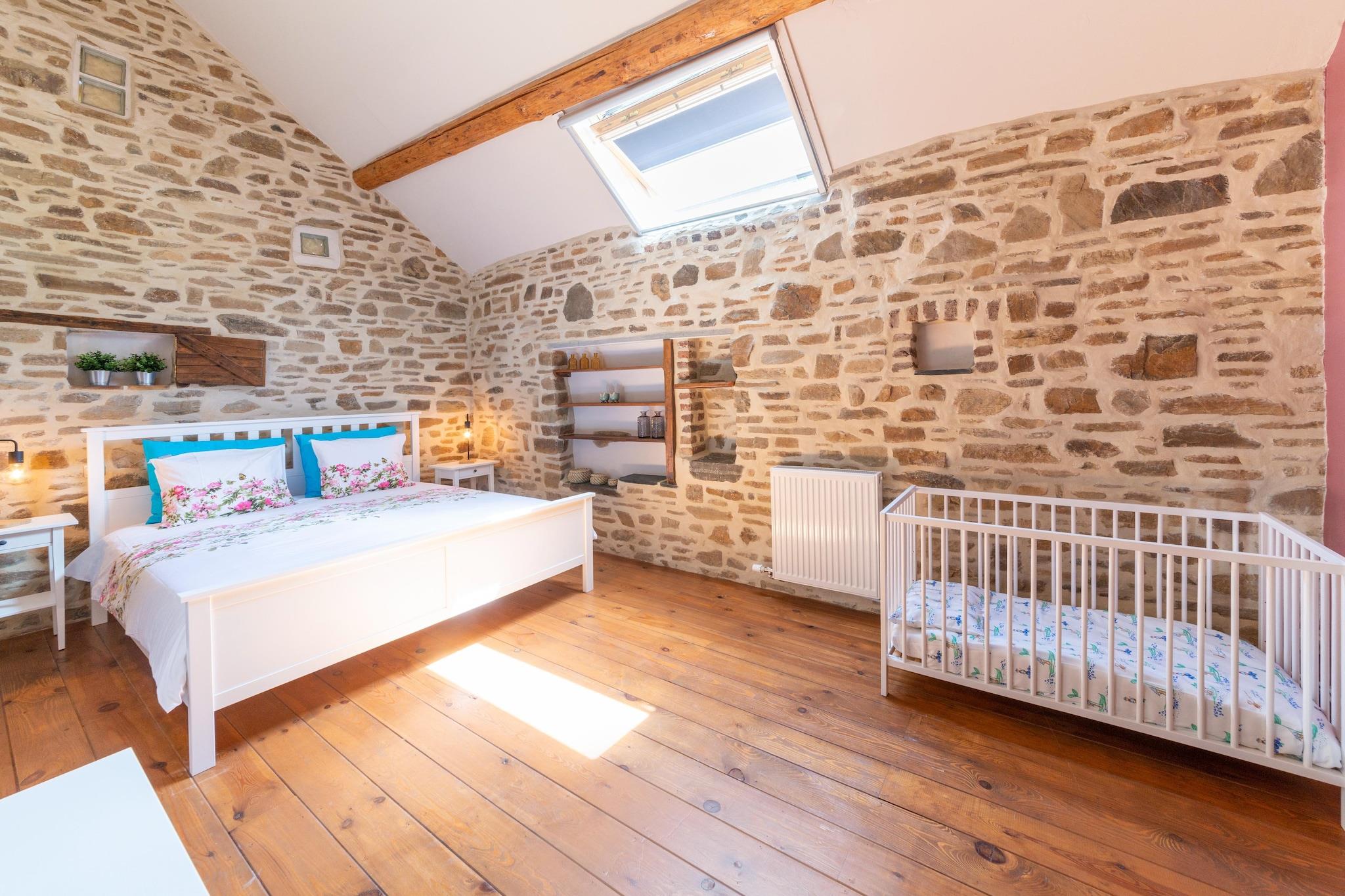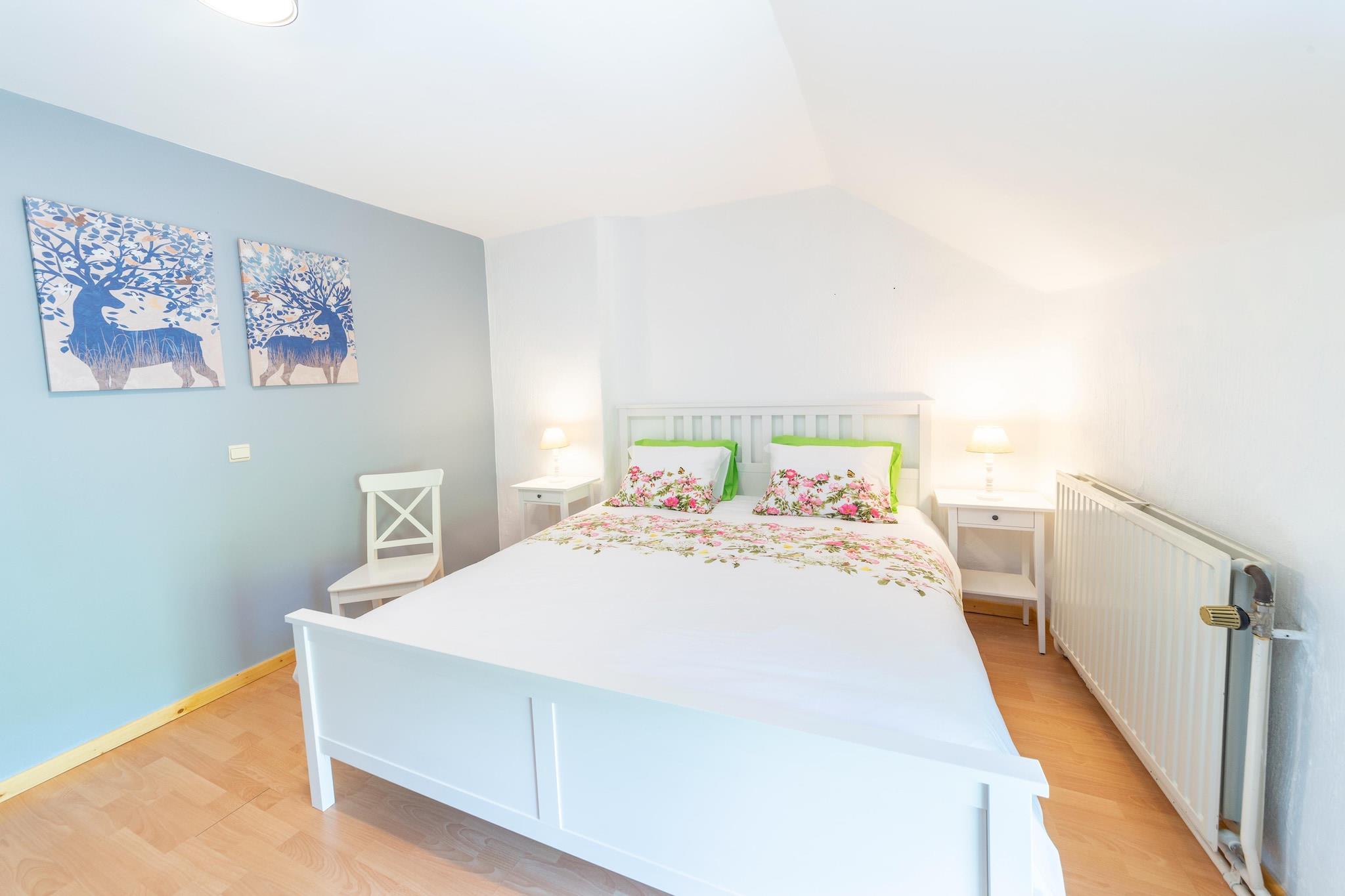 Beliggende i det fredelige landskab nær Spa, dette 3-værelses bondehus i Theux tilbyder et hyggeligt og familievenligt tilflugtssted for op til 9 gæster. Med en privat indhegnet have, gyngestativ og terrasse er den ideel til familier med børn eller enhver, der søger en afslappende flugt i naturen. Indvendigt byder boligen på en varm stue med pejs, et veludstyret køkken og to badeværelser for ekstra komfort. Første sal rummer komfortable soveværelser, mens stueetagen er perfekt til at samles og lave mad. En lille dam tilføjer charmen ved det udendørs rum, og der er gratis parkering på stedet. Udforsk nærliggende attraktioner som Spa (8 km), Pepinster (4 km), Golf du Haras (7 km), Forestia (4 km), Monde Sauvage (10 km) og Skydive Spa (12 km). Bemærk: - Grill og åben ild er ikke tilladt i naturreservatet - Ideel til familier og kun rekreative ophold