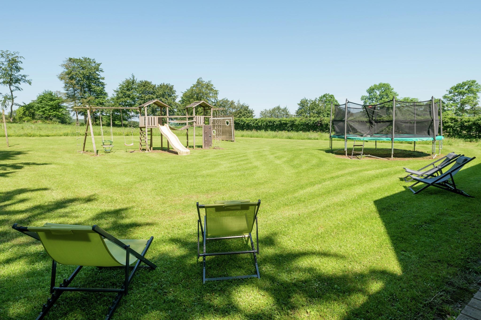 På en fabelagtig grøn beliggenhed på skovets kant finder du dette luksuriøse sommerhus mellem Waimes og Malmédy. Du kan nyde din aperitif eller grill i den rummelige have, mens børnene går vildt på trampolinen, spillerammer eller volleyballbanen. Om vinteren kan du med glæde sidde rundt om ilden. Hvis du vil have ro, kan du slappe af pænt i den varme sauna. Sportige mennesker vil nyde bordtennis, børnenes billard og bordfodboldet. Ved siden af huset går en fitness rute over skoven, og der er skiltet adskillige vandre- og mountainbike stier. Hvorfor ikke besøge Bellevaux bryggeriet med sine lækre øl. Fagnes, det smukkeste naturområde i Belgien, ligger kun 15 minutters kørsel derfra.
