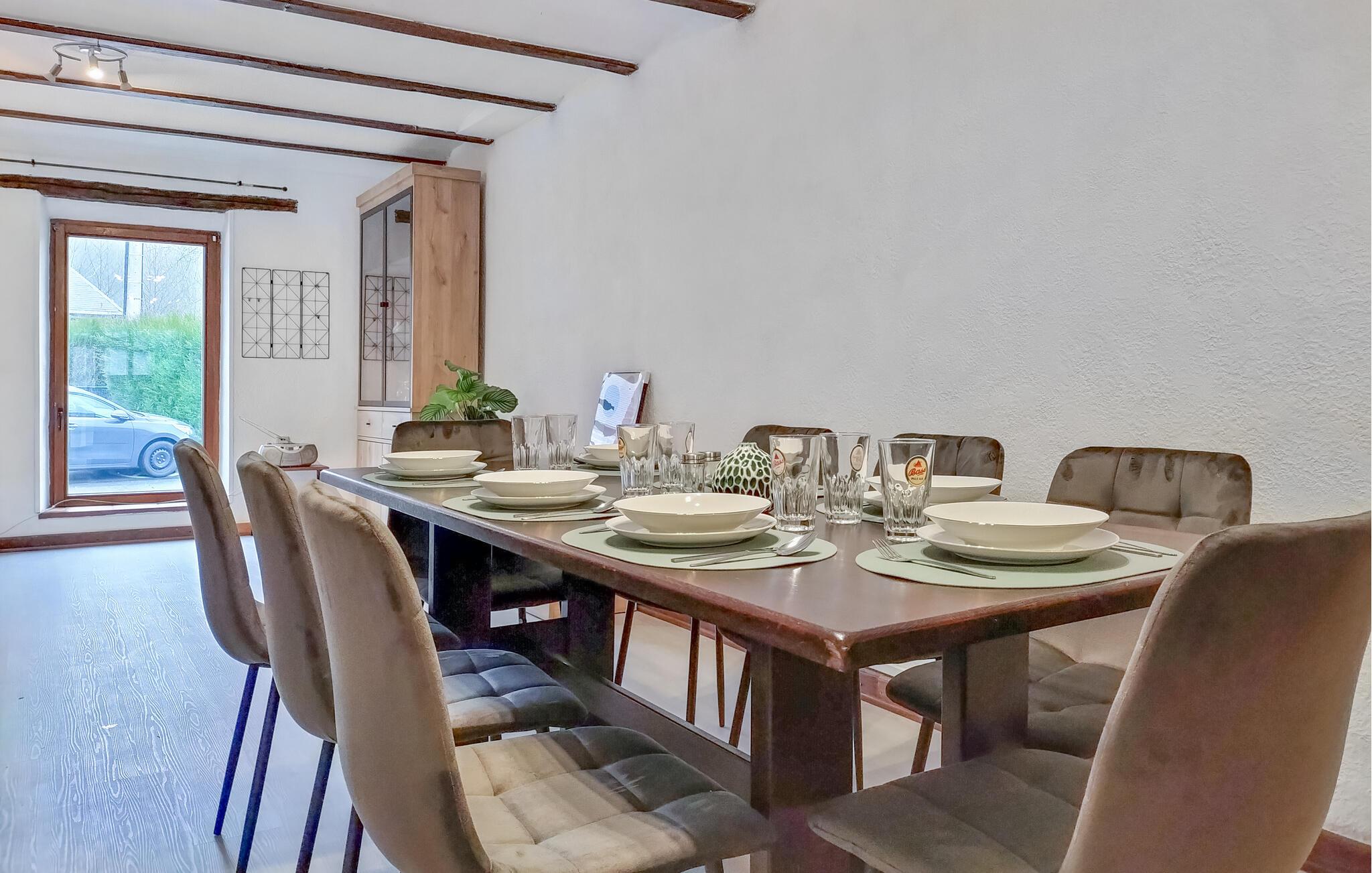 Nyd jeres ferie i dette smukke feriehus i centrum af Treignes, en charmerende by med ikke færre end fem museer. Den hyggelige stue med hvælvet loft og en muret køkkenbord skaber en indbydende atmosfære. Sæt fødderne op på sofaen, nyd den frie ferietid med familien og spis sammen ved det smukke spisebord. Øverste etage er et børneparadis med et stort legerum for de yngste gæster samt et separat aktivitetsrum med bordfodbold for hele familien.
