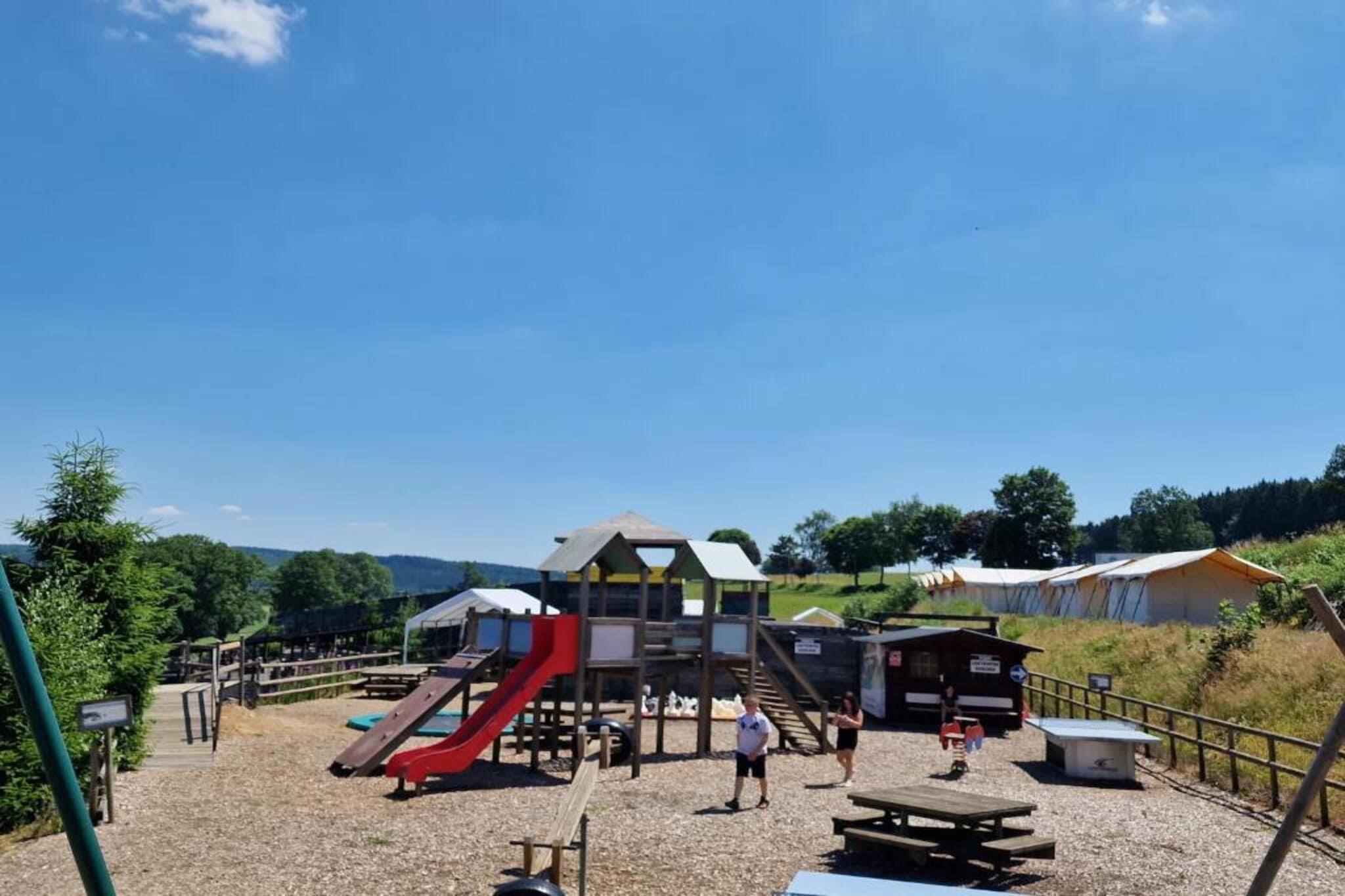 Beliggende i de fredelige skove i Trois-Ponts tilbyder dette campingtelt en naturoplevelse med det grundlæggende omhyggeligt på plads. Gæsterne sover i robuste køjesenge, bruger en fælles sanitærblok (2 brusere og 2 toiletter delt mellem 9 telte, maks. 36 personer) og laver mad i et enkelt åbent tekøkken med komfur, køleskab og service - perfekt til problemfri campingkomfort. Bemærk venligst: Der er ikke privat badeværelse eller minibar, men vores restaurant med panoramaterrasse tilbyder god mad og drikkevarer med udsigt. Selvom der ikke er WiFi tilgængeligt i teltet, kan gæsterne frit oprette forbindelse i det hyggelige spillerum under terrassen. Udenfor inviterer et privat haveområde dig til at slappe af, og en bålkurv er tilgængelig til brug - medbring blot dit eget brænde. Dette er en enkel, veldrevet campingplads, der er ideel til dem, der nyder naturen og fællesskabsånden. Vi stræber efter klarhed, så du ankommer med præcis, hvad du kan forvente. For dem, der søger action, inkluderer vores puslespilpakke (14 EURO pr. person pr. ophold) tubing, Belgiens største trælabyrint, farmers golf, beachvolley, udendørs bowling, bordtennis, hoppeborg, trampolin og meget mere. Ekstra spænding inkluderer mountainbiking, bueskydning, pilekamp, tømmerflådebygning, downhill stepping og gokart. Udforsk nærliggende seværdigheder som Coo-vandfaldene (6 km), Plopsa Coo (8 km) eller Stavelot Abbey (5 km). Dette er natur, sjov og ærligt eventyr – uden dikkedarer, men fuld af oplevelser.