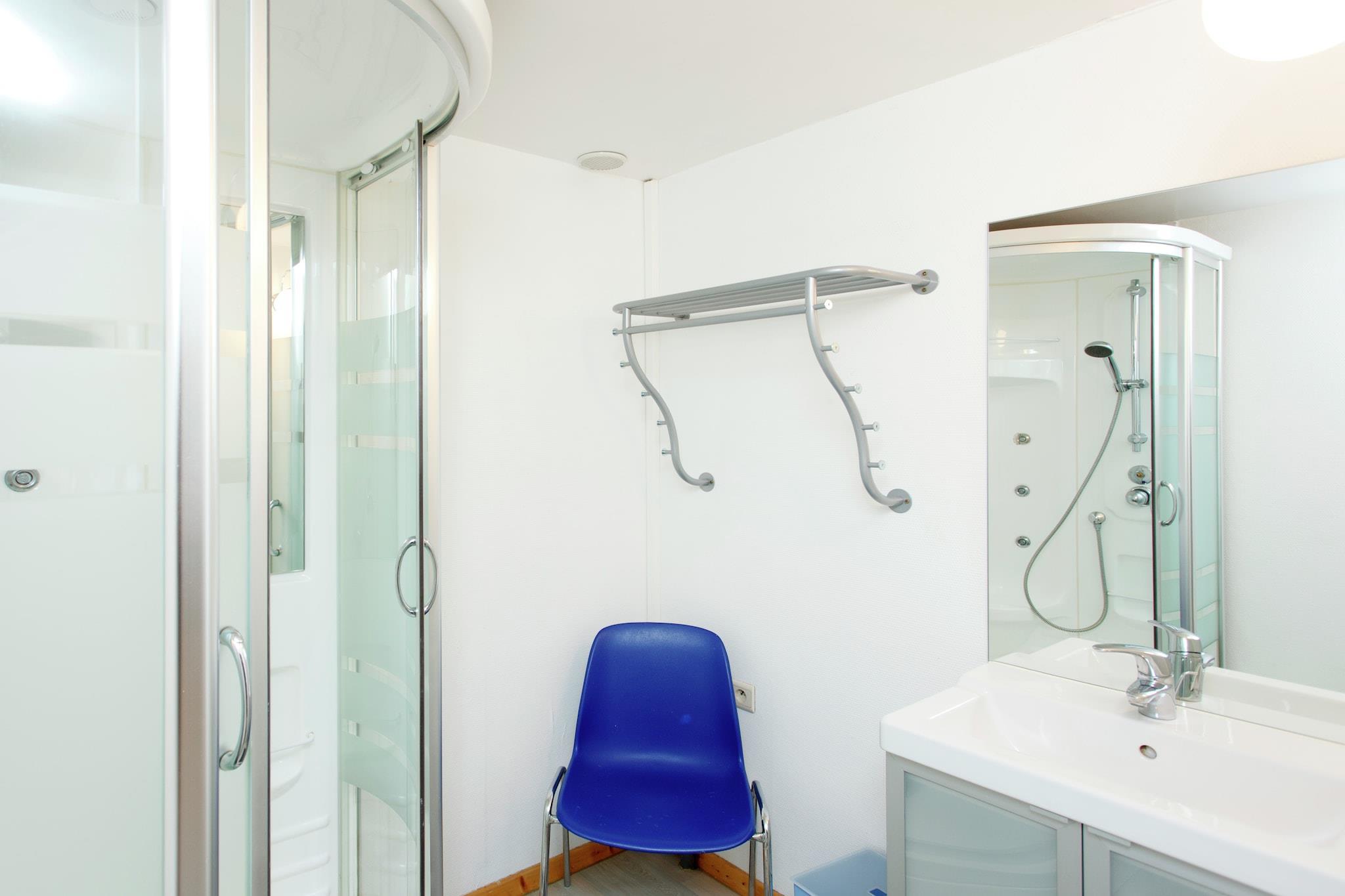 Stueetage: (entre(adgang via udendørs trappe)) På 1. etage: (sofastue(Fjernsyn(kabel)), spisestue, Køkken(ovn, combi-mikroovn, mikrobølgeovn, opvaskemaskine ), kaffemaskine) På 2. etage: (soveværelse(enkeltseng, dobbeltseng), soveværelse(enkeltseng, køjeseng), soveværelse(enkeltseng, dobbeltseng), soveværelse(dobbeltseng, køjeseng), soveværelse(3x enkeltseng), soveværelse(3x enkeltseng), soveværelse(2x enkeltseng), badeværelse(bruser, håndvask), badeværelse(badekar, håndvask), badeværelse(badekar, håndvask), toilet, toilet, toilet) terrasse, have(privat), havemøbler, grill, legeredskaber