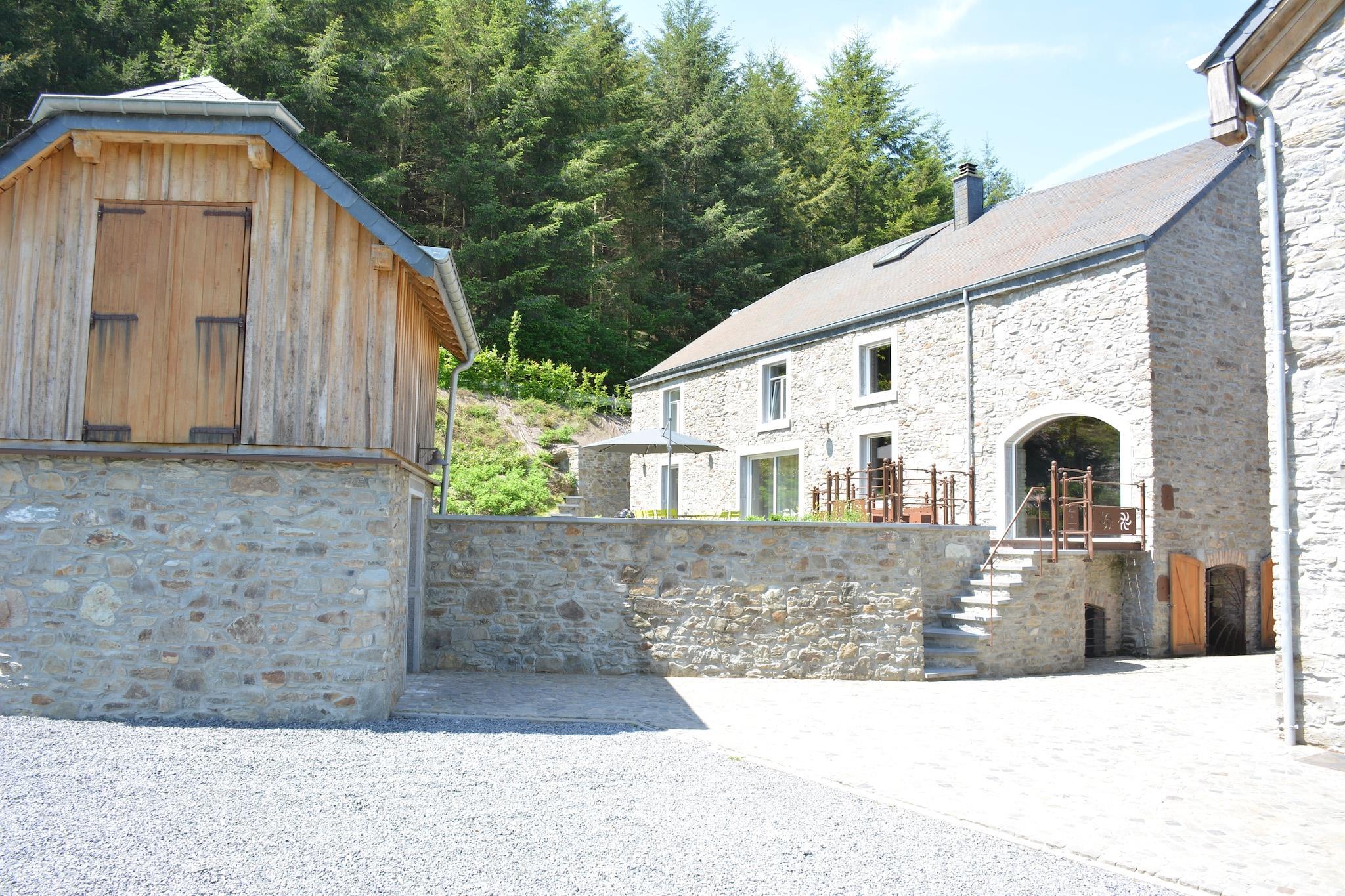 Denne fredfyldte, renoverede mølle i Gedinne tilbyder en fredelig skovflugt for op til 8 gæster. Ideel til familier, det har 4 soveværelser, antikke møbler, centralvarme og en hyggelig stue/spisestue med brændeovn. En møbleret have med en dam, en terrasse og en grillplads inviterer dig til at slappe af i naturen. Beliggende kun 200 m fra skoven og 7 km fra Gedinne bymidte er området perfekt til vandre- og cykelture. Besøg Lavaux Ste Anne Castle (16 km), Beauraing (8 km), eller nyd langrend (10 km). Børn har en høj stol og børneseng; gratis trådløs internetadgang og parkering på stedet er inkluderet. Til større forsamlinger kan du booke Espace du Meunier: en rummelig hal med pejs, udsigt over floden, køkken, projektor, bordfodbold og elevator. Ideel til familiesammenkomster eller forretningsbegivenheder. Weekendudlejning inkl. skat (forsyning og rengøring inkluderet; køkken skal rengøres ved afrejse).