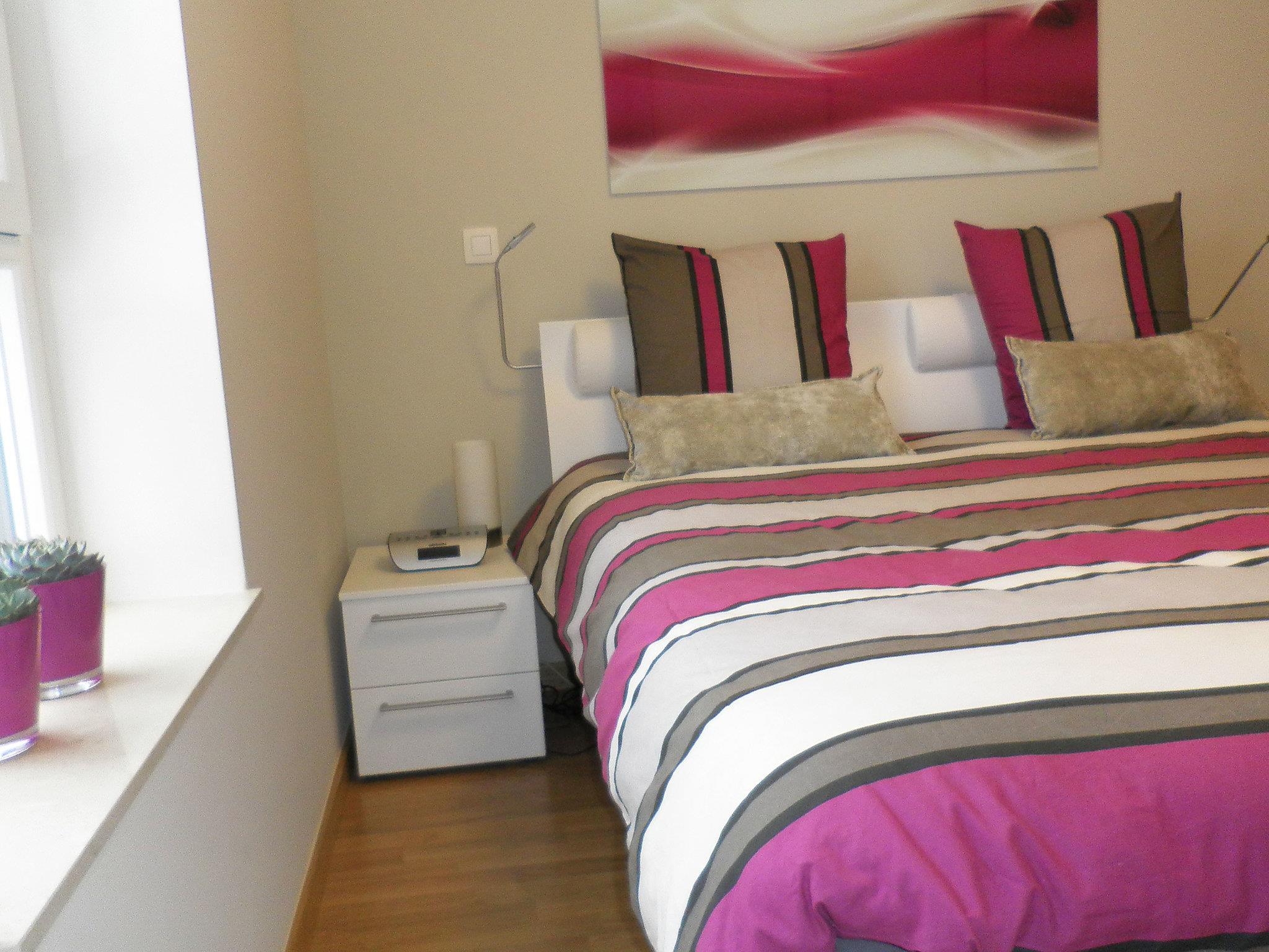 3-room apartment 100 m2, on the ground floor, west facing position. Spacious and bright, comfortable and tasteful furnishings: entrance hall with separate WC. Large living/dining room with sliding door with dining table and cable TV (flat screen), DVD. Exit to the balcony. 1 room with 2 beds (100 cm, length 200 cm). 1 room with 1 double bed (160 cm, length 200 cm). Open kitchen (4 hot plates, oven, dishwasher, electric coffee machine, combination microwave). Bath/shower, hydro massage shower. Floor heating. Balcony 15 m2, west facing position. Balcony furniture, deck chairs. Very beautiful panoramic view of the lake. Facilities: washing machine, dryer, children's high chair, baby cot, hair dryer. Internet (WiFi, free). Please note: non-smoking house. 1 small pet/ dog allowed. Smoke alarm.