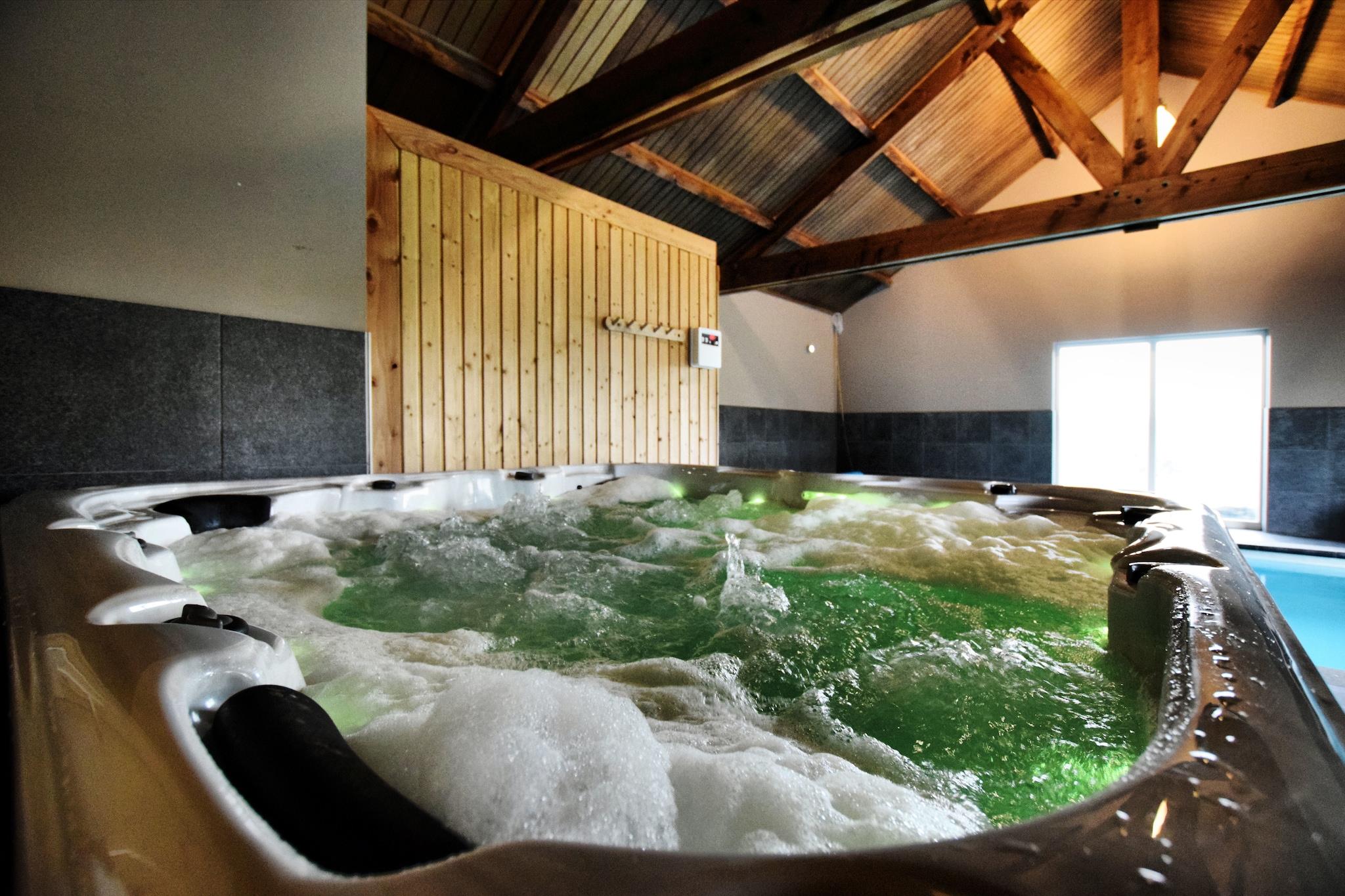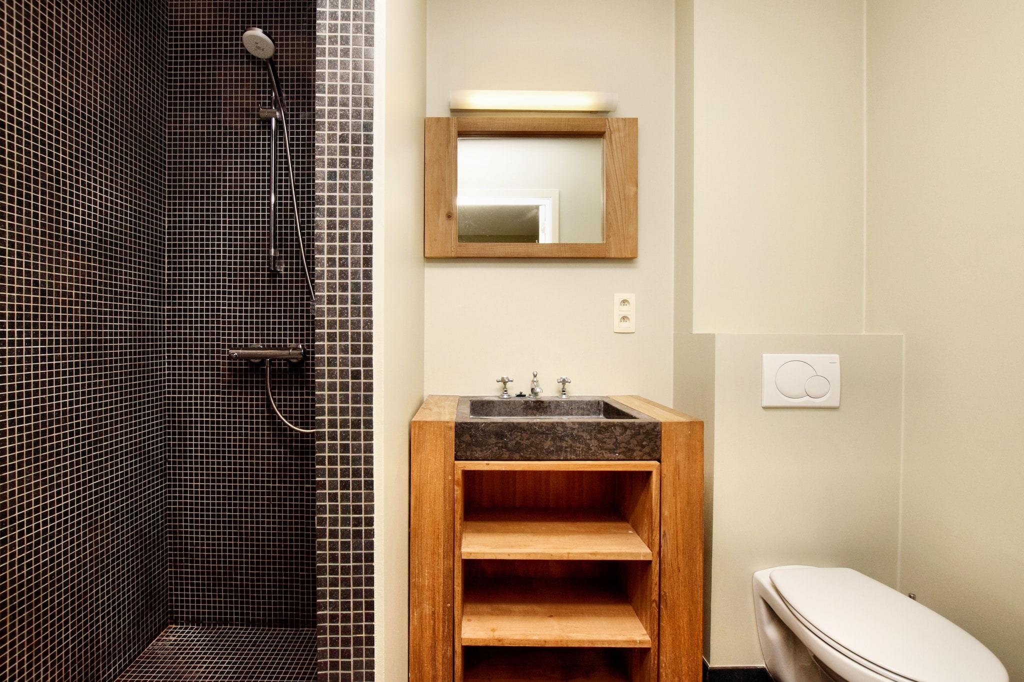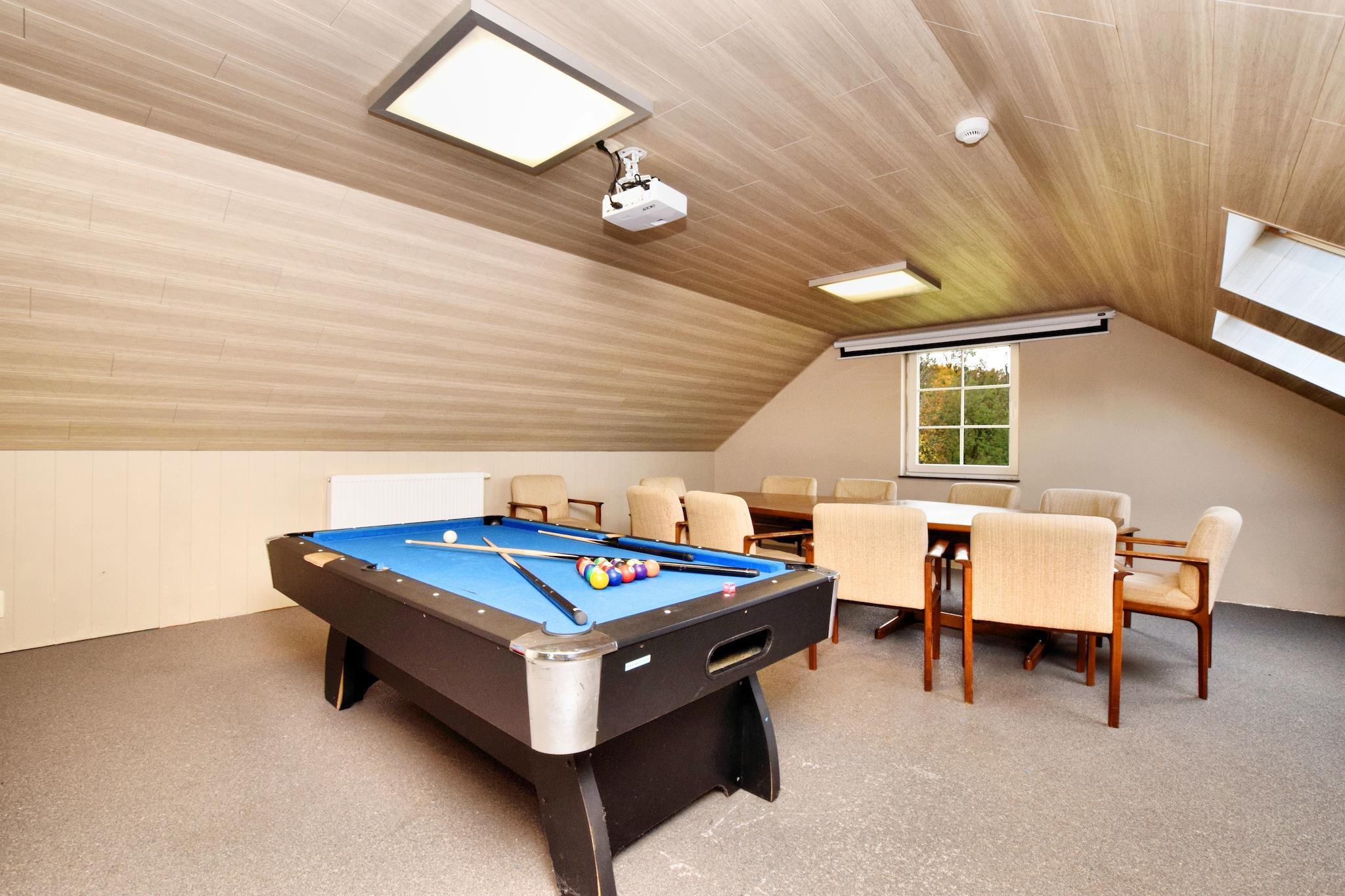 Denne elegante 6-værelses villa ligger i de naturskønne bakker i Durbuy og tilbyder et luksuriøst og rummeligt tilflugtssted for op til 14 gæster. Med panoramaudsigt, en privat opvarmet swimmingpool, sauna og boblebad, er det den perfekte destination for familiesammenkomster eller grupperejser i Ardennerne. Villaen har et moderne åbent køkken, hyggelig stue med pejs og ensuite badeværelser i hvert soveværelse. Nyd fritiden i rekreationsrummet med airhockey, billard og et projektionslærred til filmaftener. Udenfor kan du slappe af på den solrige terrasse, holde en grillfest i den store have eller slentre direkte ind i den tilstødende skov. Der tilbydes parkering, og der er gratis WiFi overalt på ejendommen. Villaen ligger kun 300 m fra byens centrum og 400 m fra restauranter og supermarkeder, en kort gåtur fra Durbuys charmerende gader. Udforsk den mindste by i verden, nyd cykel- og vandrestier, eller besøg nærliggende attraktioner som La Roche-en-Ardenne og Spa-Francorchamps-kredsløbet. Togstationen ligger 6 km derfra. Bemærk venligst: ungdomsgrupper og fester er ikke tilladt af hensyn til roen2.
